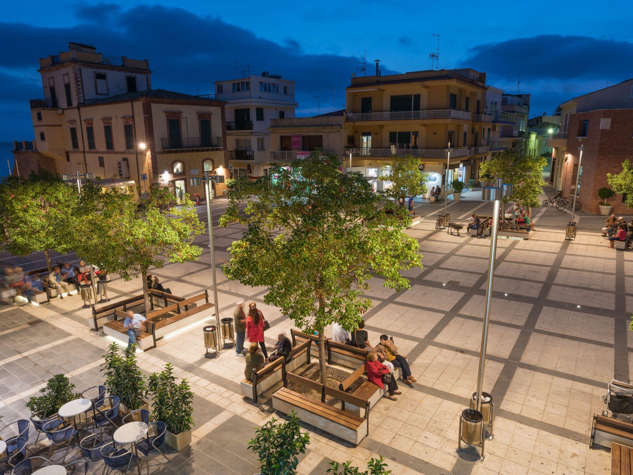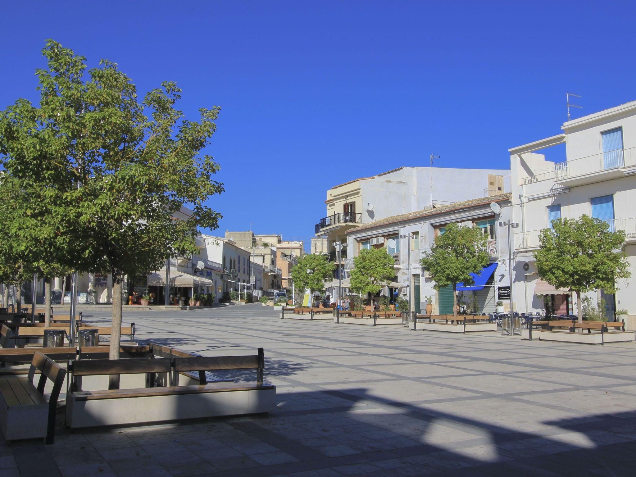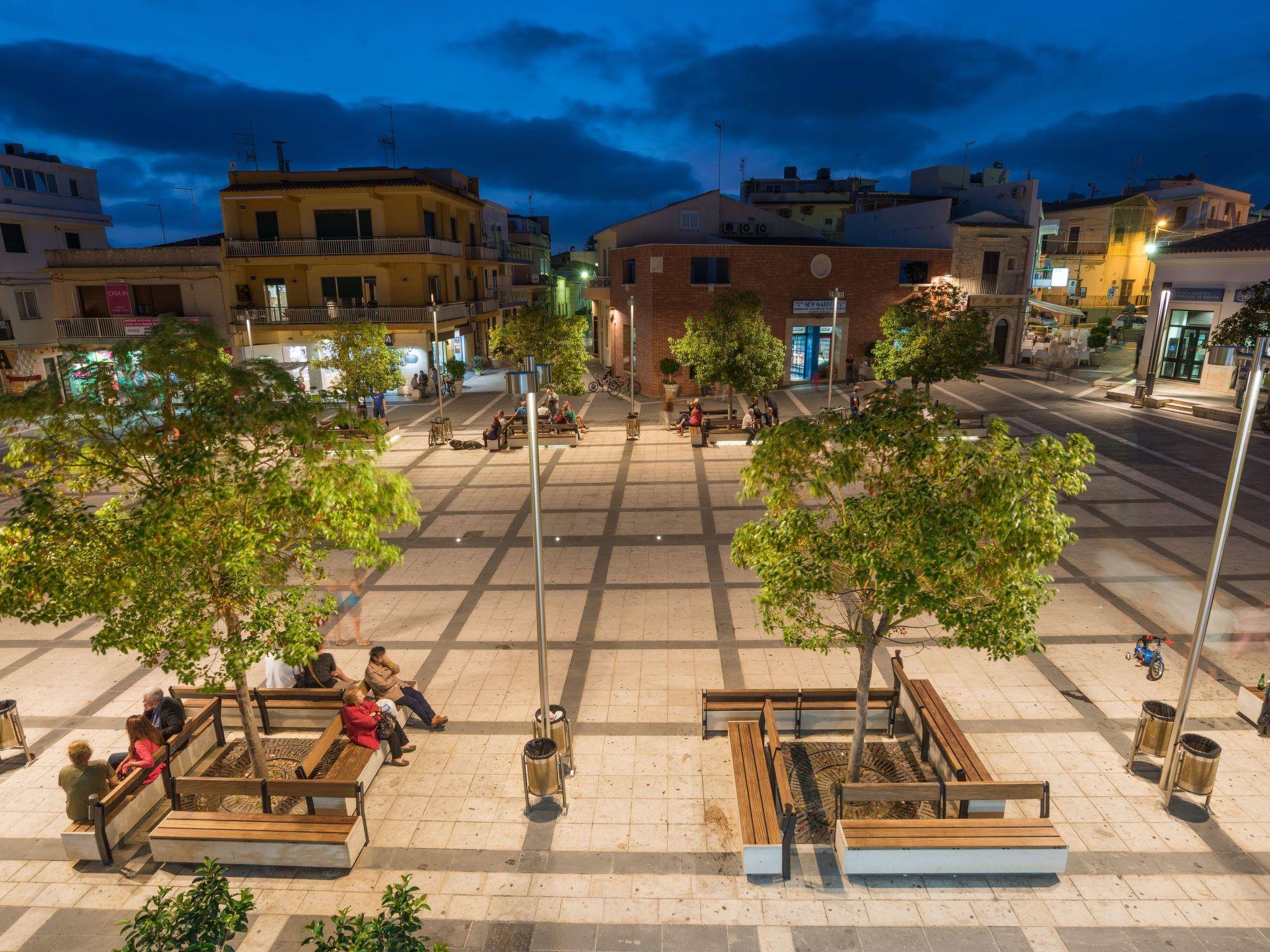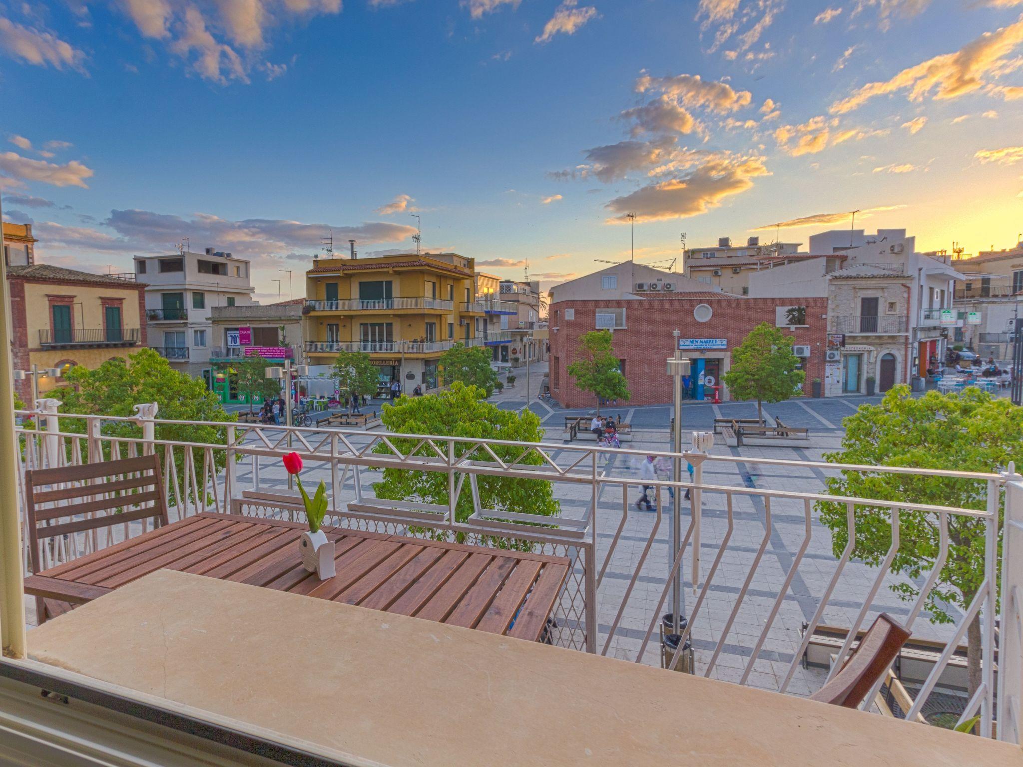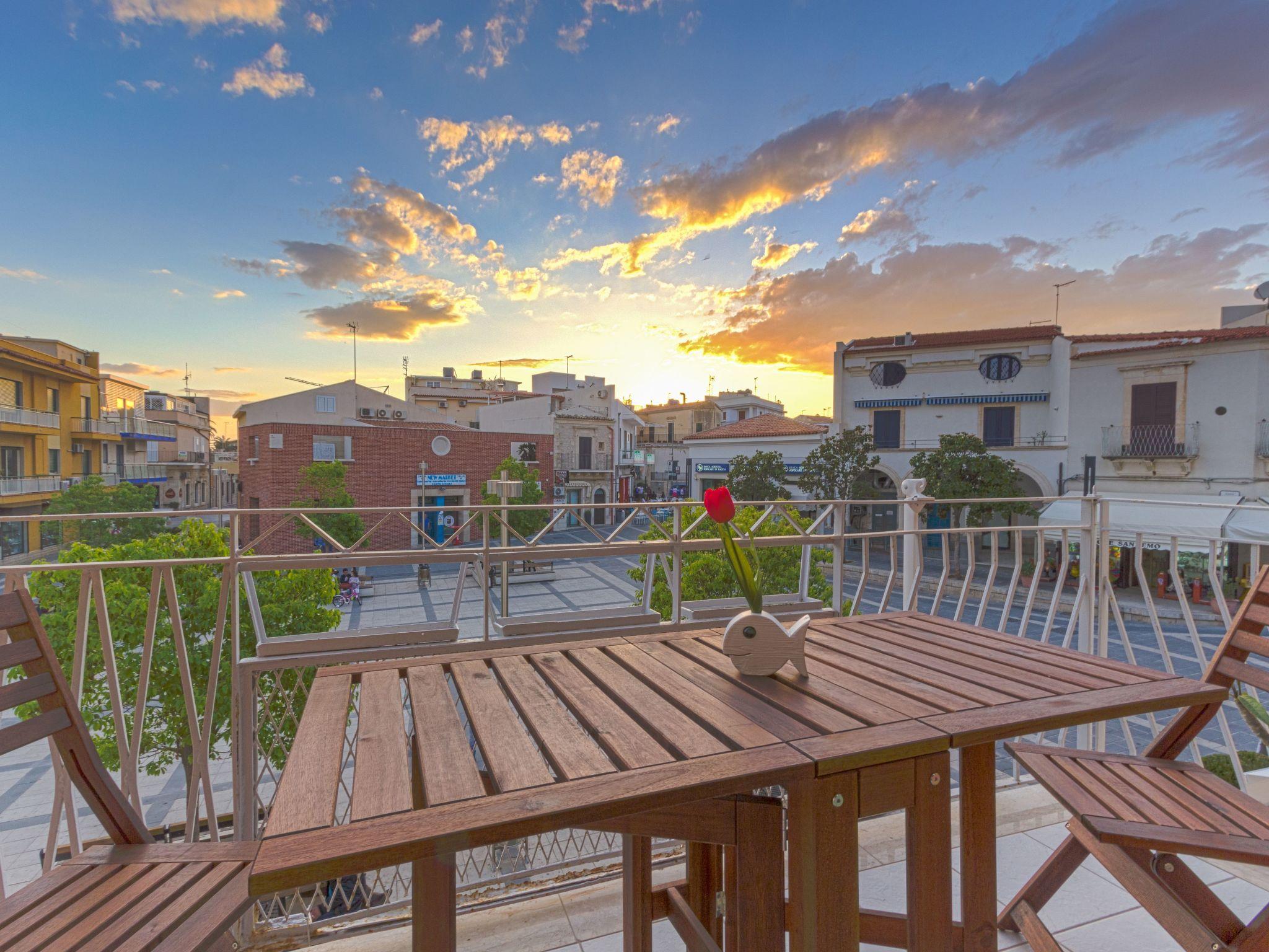 The apartment is on the first floor and enjoys a wide balcony with view over the main square and the lively centre of Marina di Ragusa, and offers a back furnished terrace ideal to have alfresco lunch and dinner.