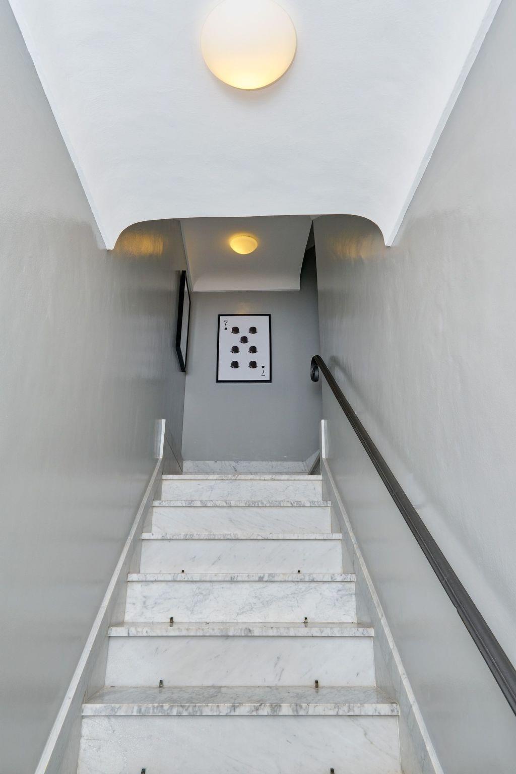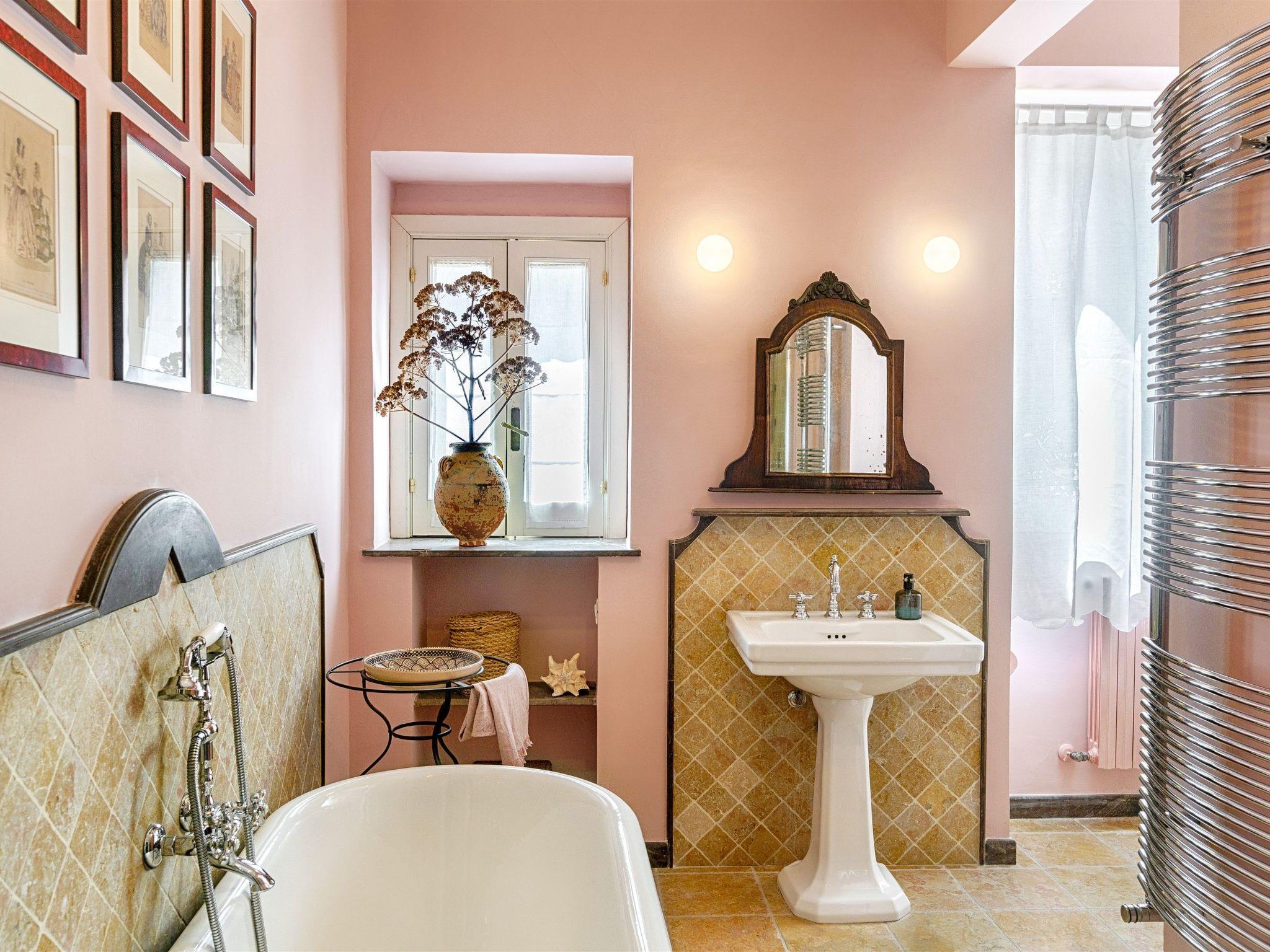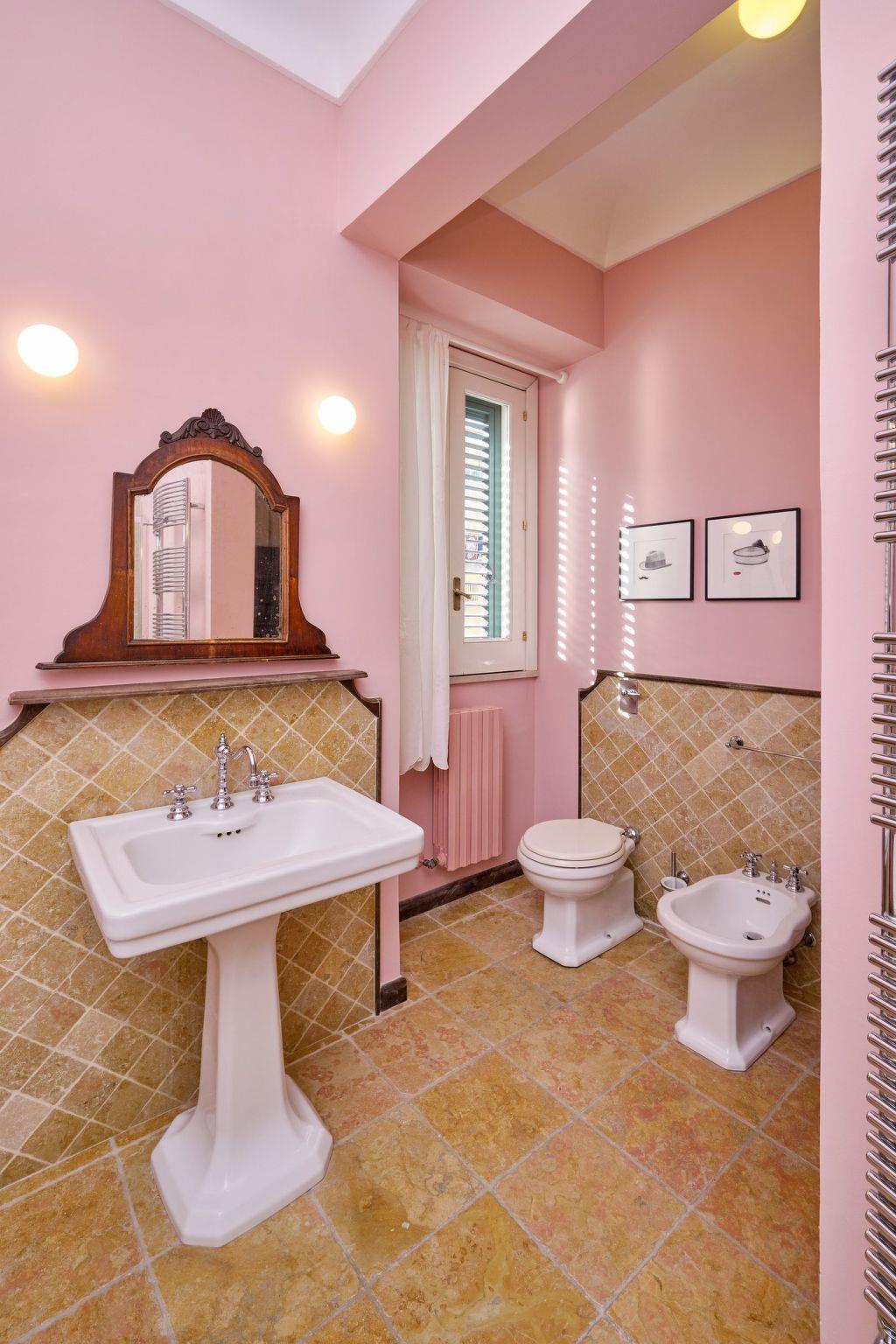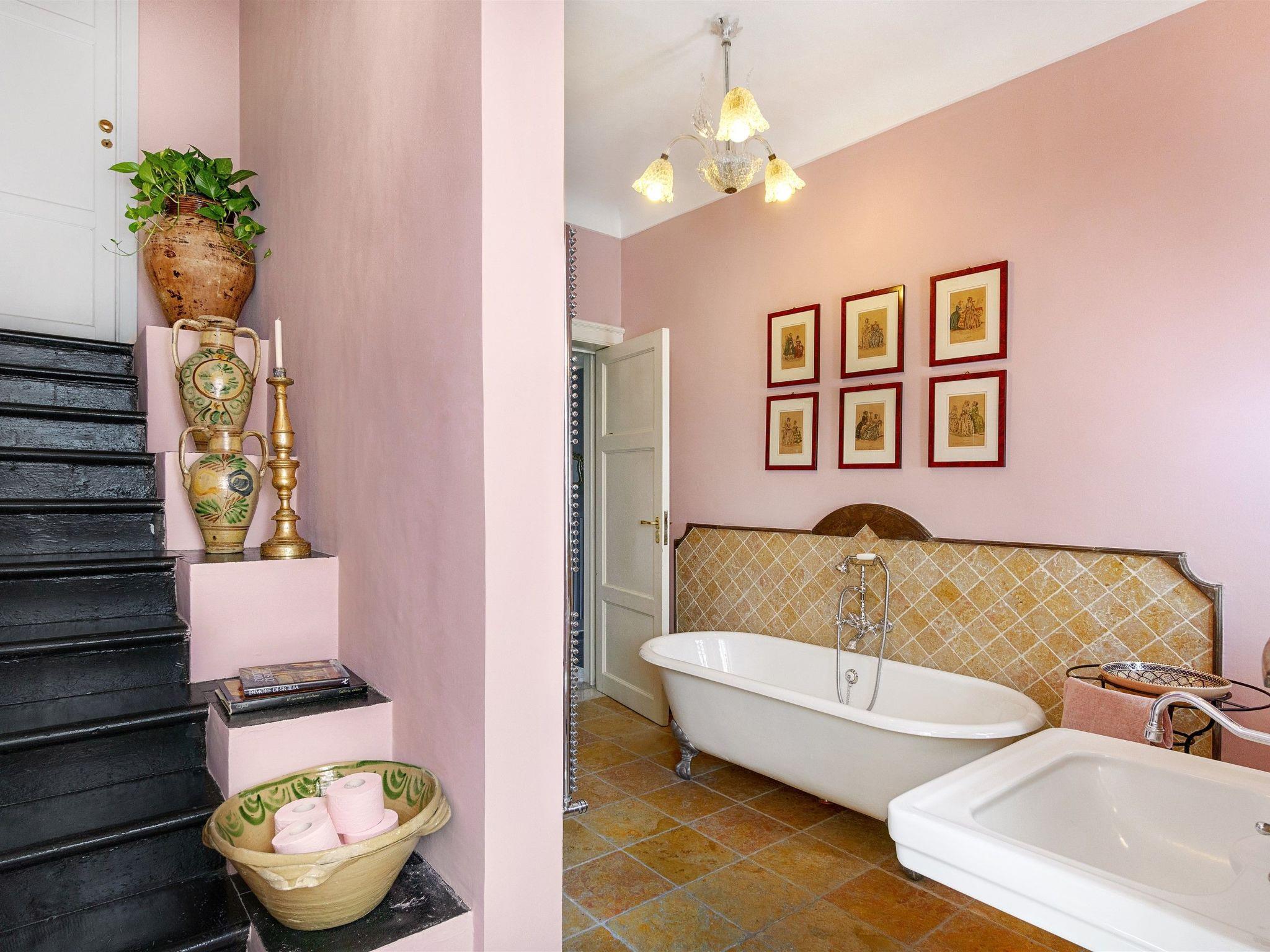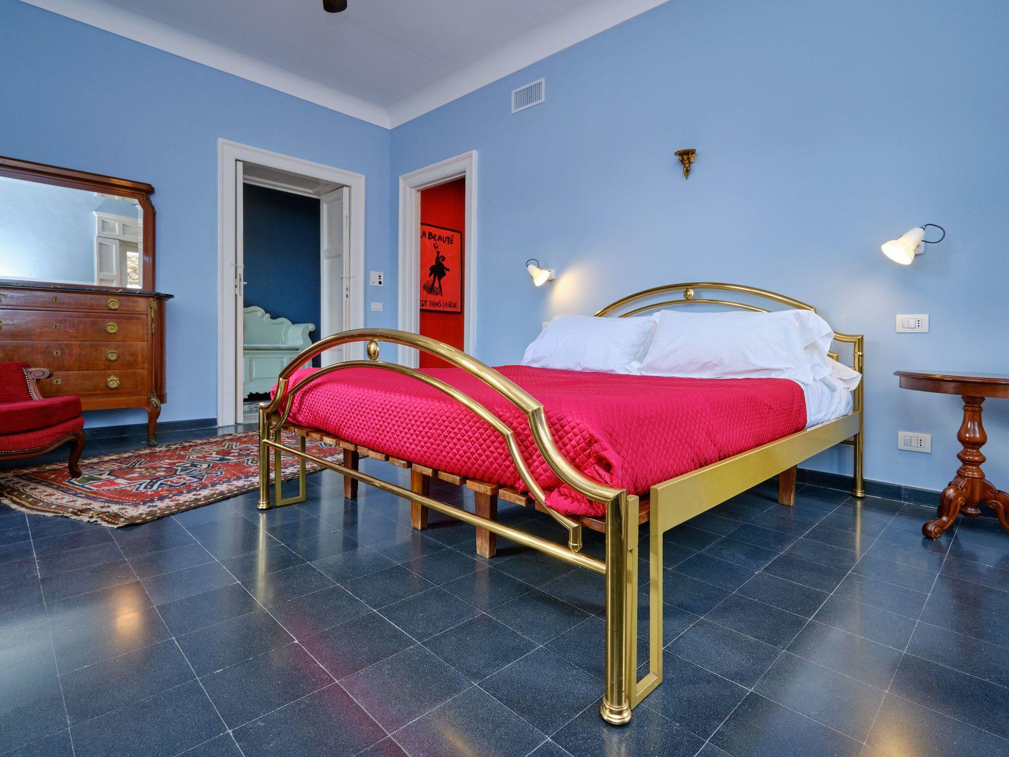 One bedroom, with a double bed and access to the terrace, has a walk-in wardrobe.