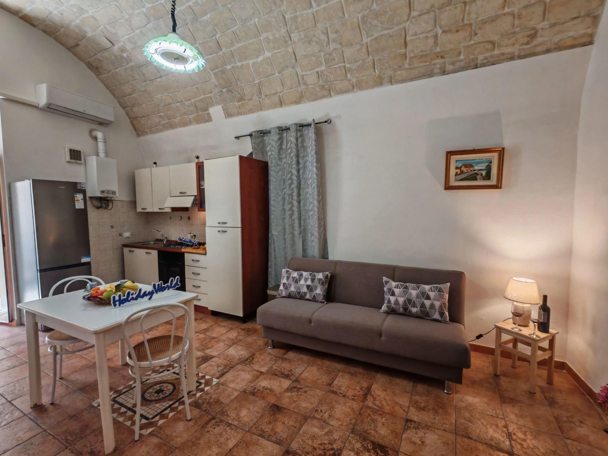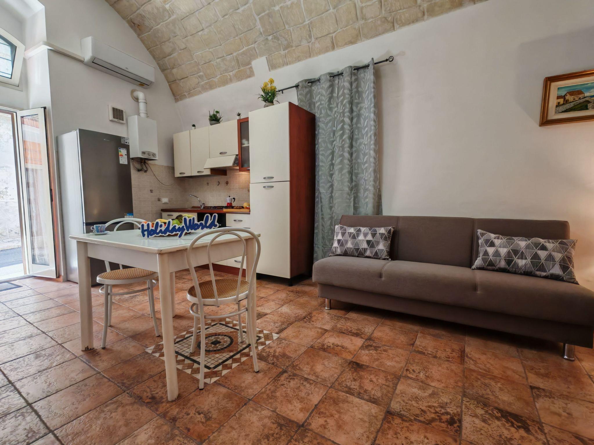 ground floor combines traditional charm with modern comfort. The entrance opens directly onto the street and leads into a cosy open-plan living area, consisting of a fully equipped kitchenette, dining area and sofa bed. A distinctive element of the house is the splendid round stone vault, typical of ancient Ragusa houses, carefully restored to enhance the authenticity of the environment. A small hallway on the right leads to the bathroom with shower stall and the practical laundry room. Continuing on, you enter the double bedroom, intimate and quiet. Ideal for a relaxing stay, this house offers well-kept rooms, authentic atmospheres and a perfect location for exploring the historical and architectural wonders of Ragusa AND Ragusa Ibla on foot.