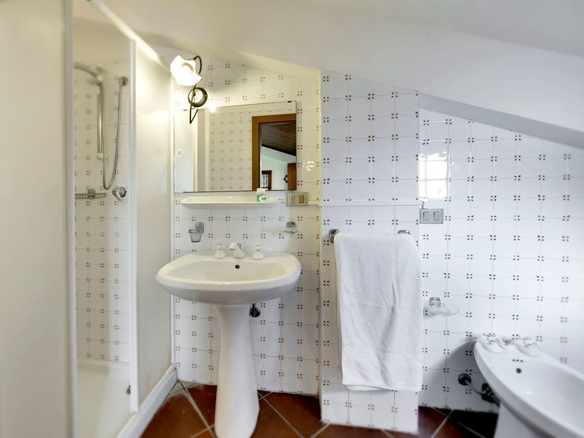 The house is spread over three levels, the lower one with an adjoining veranda, consisting of a large dining room with a brick fireplace and a large wooden dining table, complete with a double sofa bed; from the aforementioned room there is access to a fully equipped kitchen with electric oven and cooker and a refrigerator with freezer. The sleeping area comprises: three double bedrooms with dresser and wardrobe, a laundry room with bathroom and shower. The ground floor, which is the floor from which you have access to the property, consists of a cosy living room with a sofa with peninsula, a wooden and wrought-iron coffee table, a low table for the TV and a table clearer with several compartments at your disposal. The living room leads to a comfortable equipped kitchen and a bathroom. The first floor, on the other hand, comprises a double bedroom with dresser and two bedside tables, with an adjoining bathroom with shower and a small private veranda overlooking the pool.