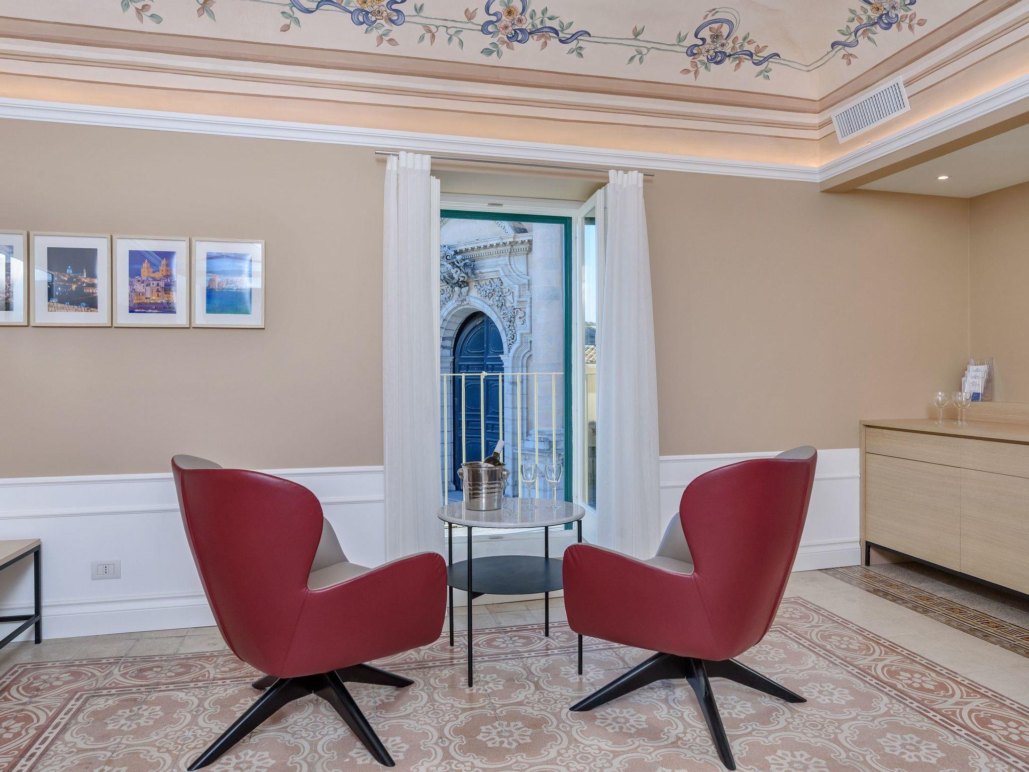 Strengths 1. Exceptional view of the Cathedral of San Giorgio 2. Brand new (2018), with refined interiors 3. In the baroque heart of Ragusa Ibla Recommended for ... Couples or for a family that loves to spend a unique holiday in the center (Piazza Duomo), in a period building with refined and welcoming rooms. It has a prestigious location, an extraordinary view and fine interiors, a few steps from monuments, services and the pedestrian area with cafes, shops and restaurants. Being in a building without a lift, it is not recommended for those with walking problems.