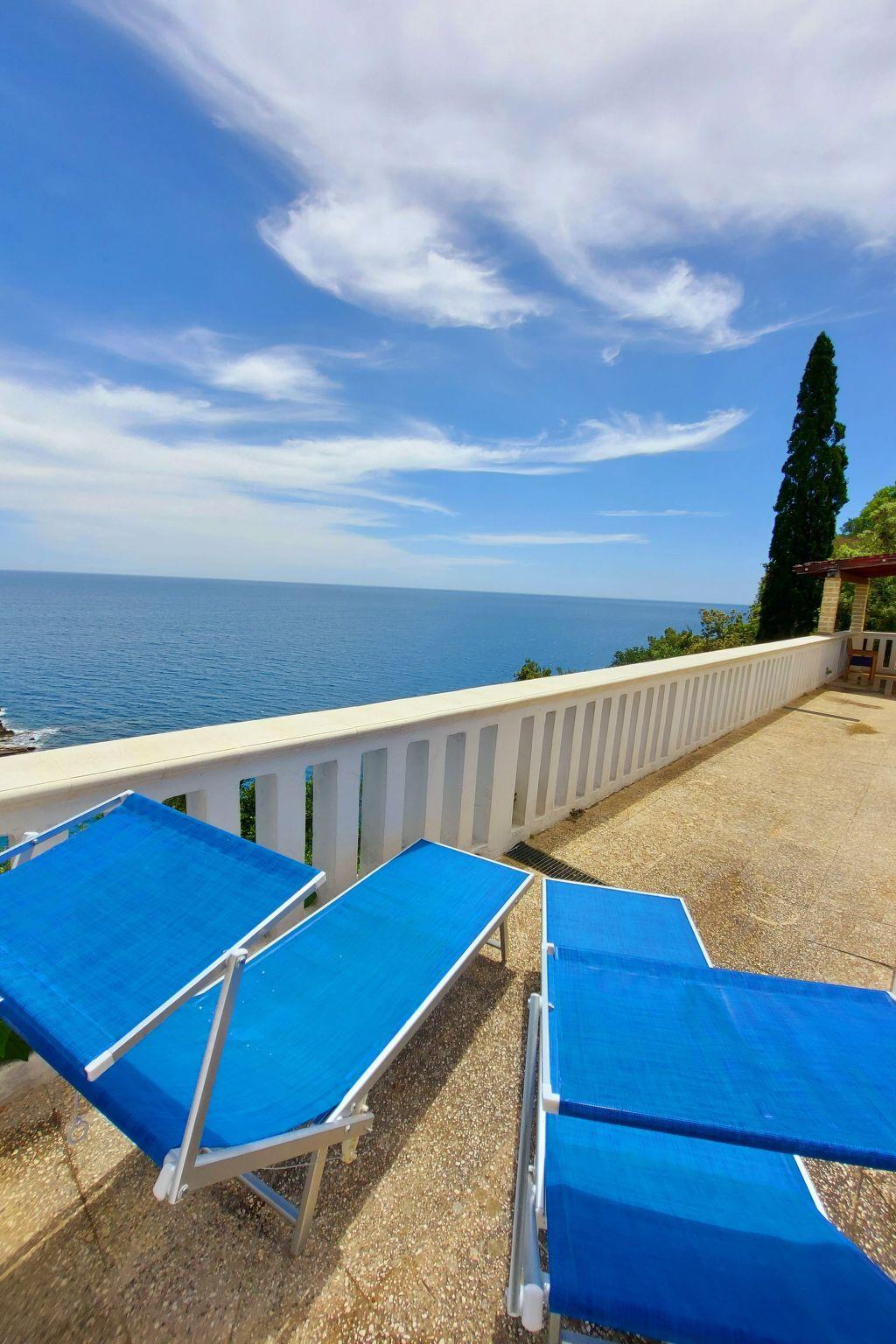 The terraces afford a lovely view of the sea and the creek and you can lie in the sun here or use the grill and dine outdoors. You can cool off under the outdoor shower and many loungers and a hammock invite you to relax. A roofed parking space is available for your car. The property has a swimming pool with sea view outside for common use.