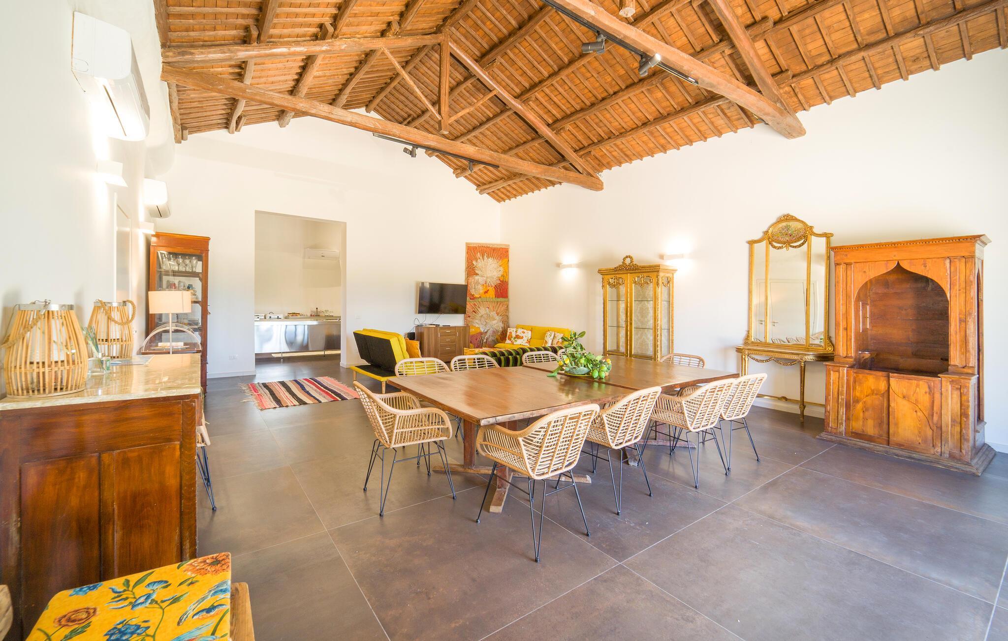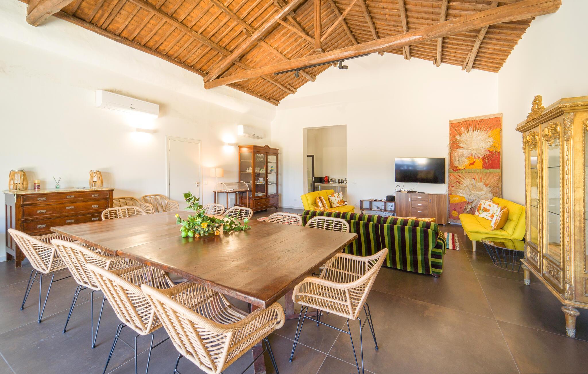 I dette rummelige hus skaber høje trælofter og stilfuld indretning en hyggelig atmosfære. Glæd jer til at lave madaftener sammen i det moderne, fuldt udstyrede køkken og fejr jeres måltider i store grupper ved det indbydende spisebord. Find jer godt til rette i det hyggelige sofahjørne og afslut en begivenhedsrig dag med en spilleaften eller stimulerende samtale.