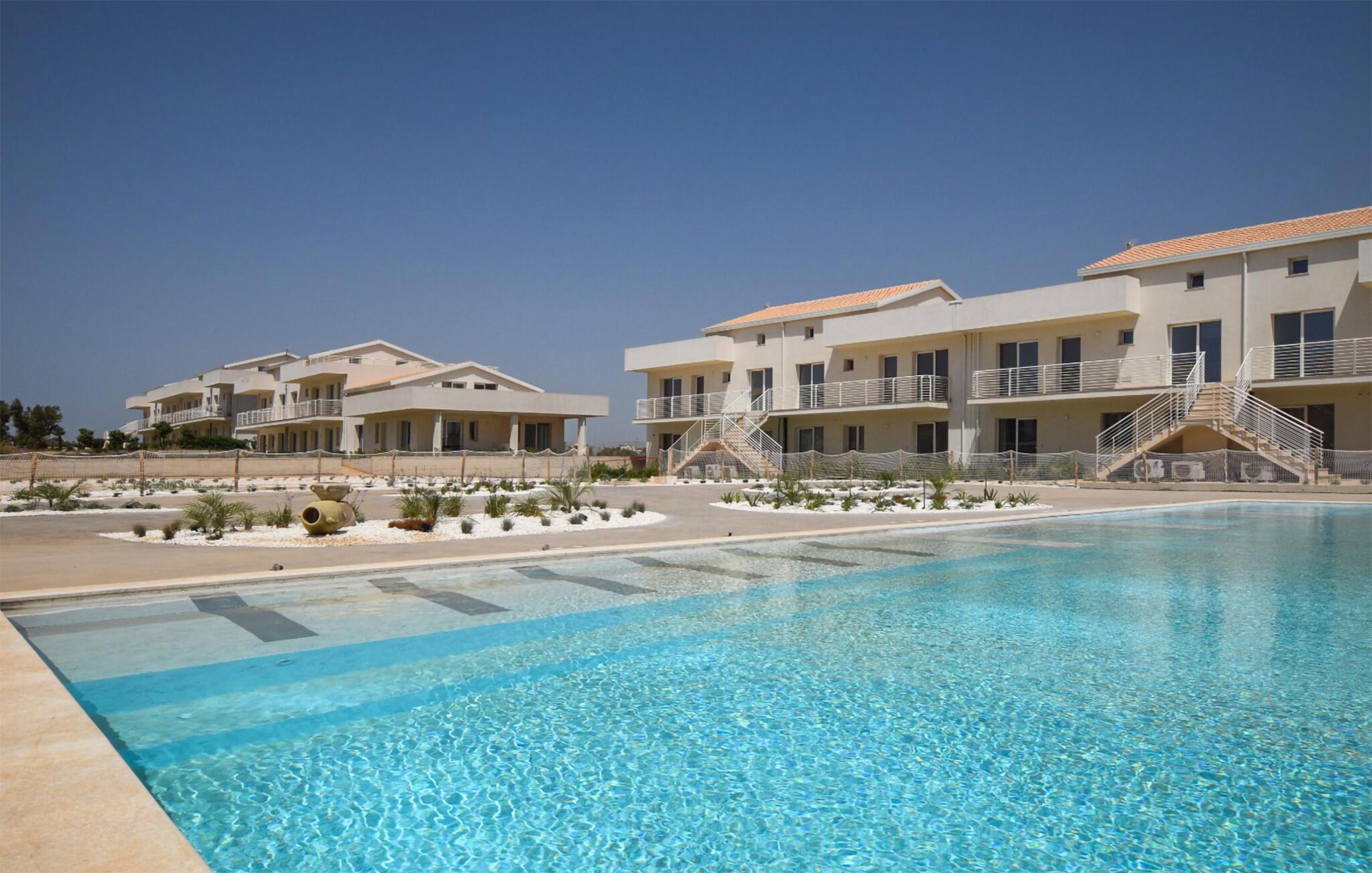 snup en frisk dukkert i den store, fælles pool efter at have nydt en is på jeres terrasse. eller Gå til den nærliggende sandstrand og dyk direkte ned i havet.
