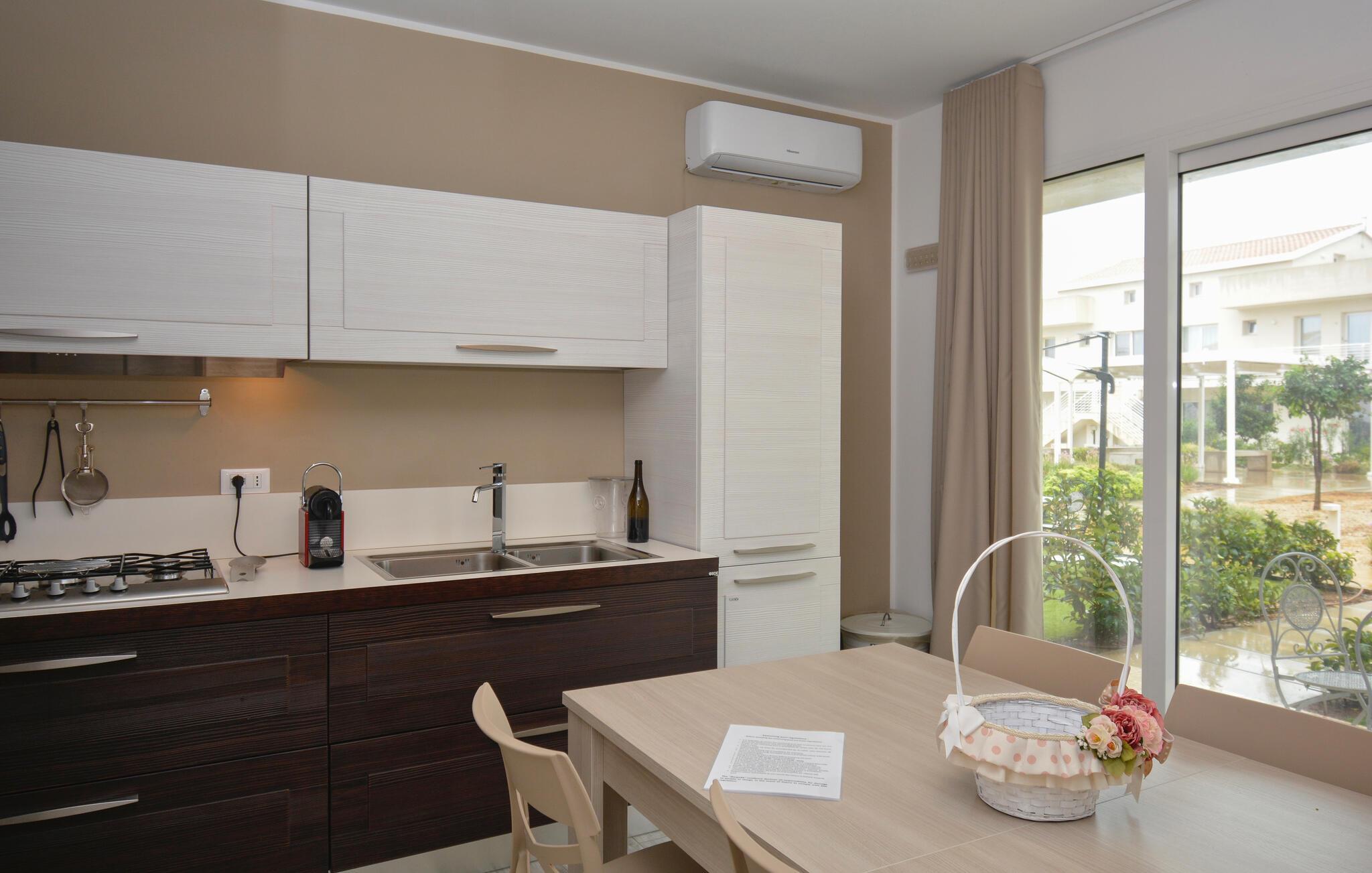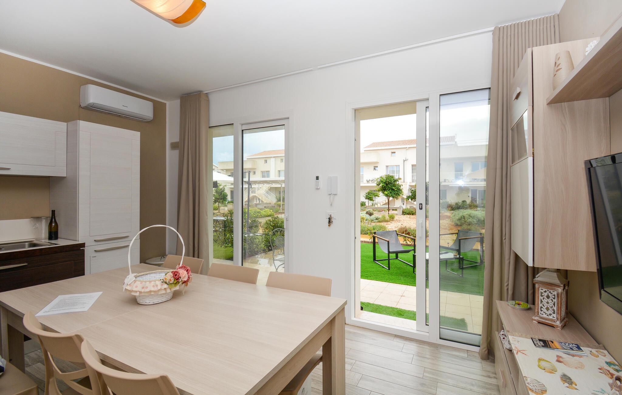 Forkæl jer selv med en solrig ferie i denne moderne ferielejlighed med adgang til poolen.