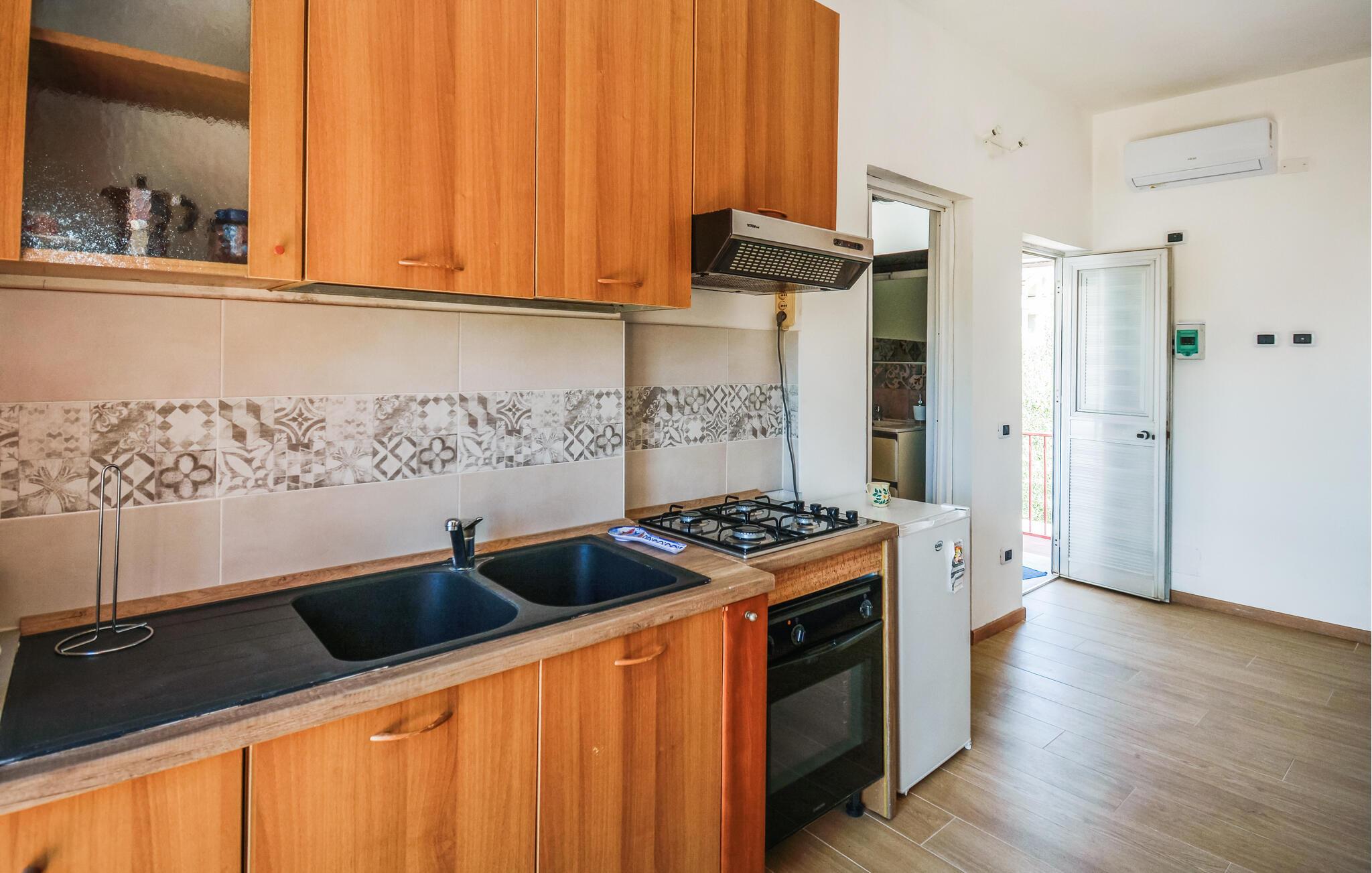 Afhængigt af jeres humør kan I nyde morgenmaden på jeres terrasse i den milde morgensol eller i skyggen. Efter en dejlig svømmetur i det turkisblå vand kan I servere friske salater og nyde sommeraftenen med siciliansk vin.
