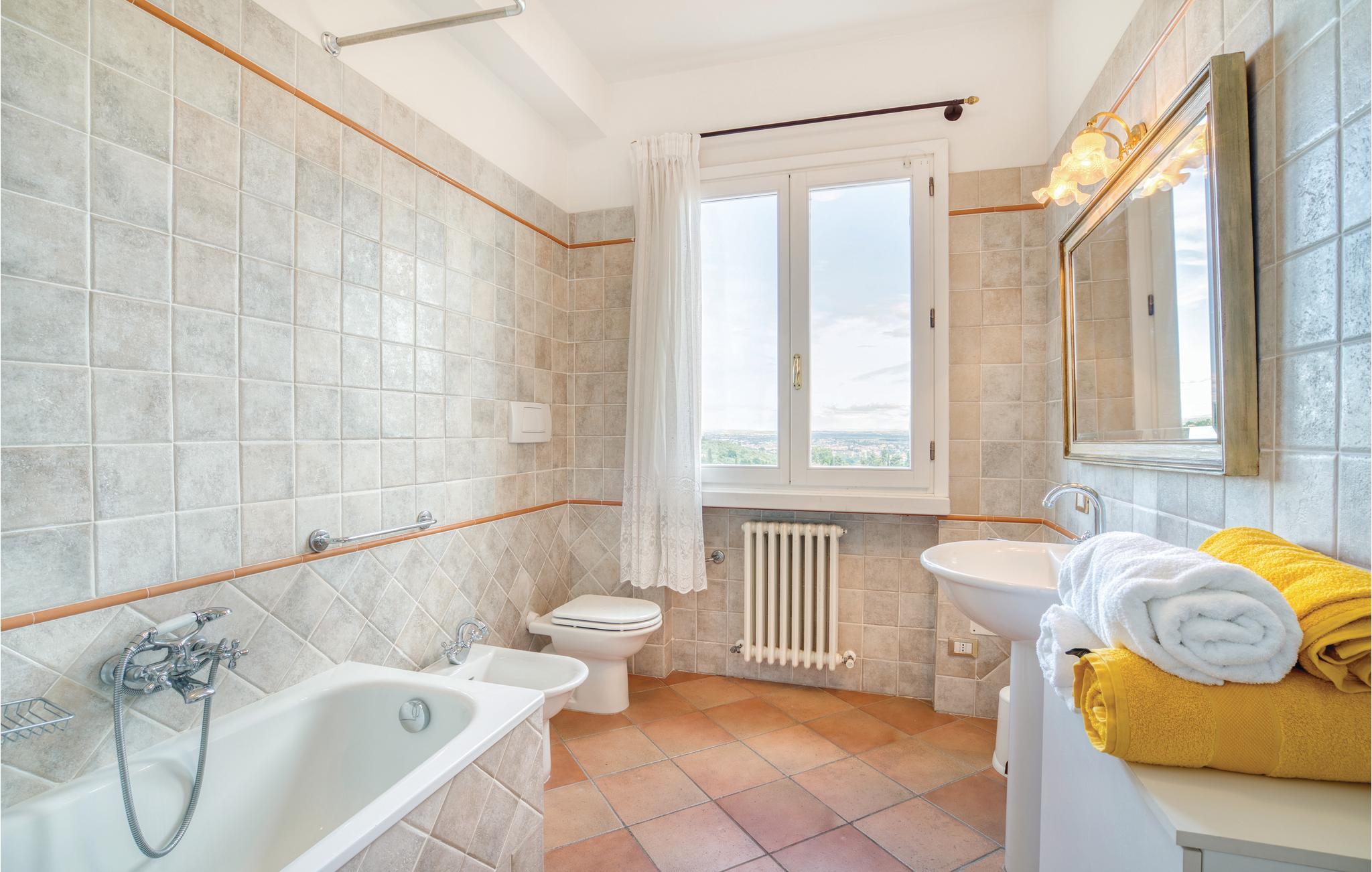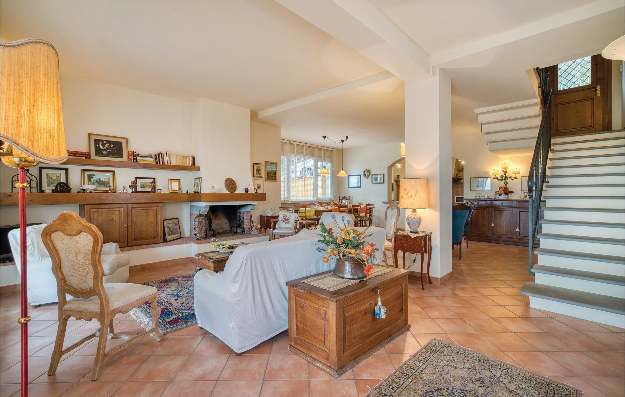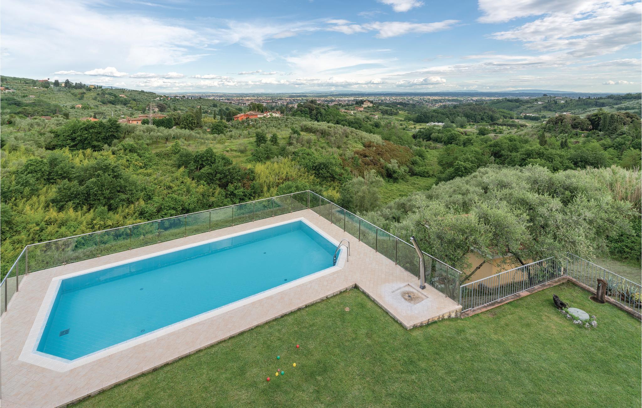 Dette imponerende, charmerende og pænt møblerede to-familieshus ligger nær Massa e Cozzile (1,2 km) på en bjergskråning med panoramaudsigt over en bred dal med oliventræer og bakket landskab. Foran huset er der en velplejet, indhegnet græsplæne med pool og smuk udsigt. Der er også en overdækket terrasse (30 m²) med bord til udendørs spisning. Den tilstødende del af villaen er uafhængig og er ikke beboet i øjeblikket. Udflugter: 5 km til Montecatini (kurbade, sportsfaciliteter og alle slags butikker), 25 km til Lucca med de imponerende bymure, smukke kirker og pladser, herunder den berømte Piazza dell 'Anfiteatro. Den charmerende by Pistoia ligger ca. 25 km fra ejendommen. Her finder I den smukke Piazza Duomo, domineret af et gammelt klokketårn. De smukke, brede sandstrande på Versiliakysten er ideelle til familier med børn (45 km). Kurbade med massage, bassiner og huler med mulighed for dykning 10 km. På forespørgsel (mindst 10 dage i forvejen) er det muligt at arrangere en kok til aftensmad med specielle menuer.