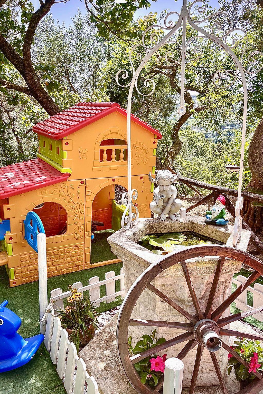Nestled in the peaceful countryside of Massa Lubrense, Raggio di Sole is a detached house with a private garden of about 500 square metres, a children's play area, and a swimming pool for exclusive use with a view of the island of Capri and an outdoor dining area and barbecue.