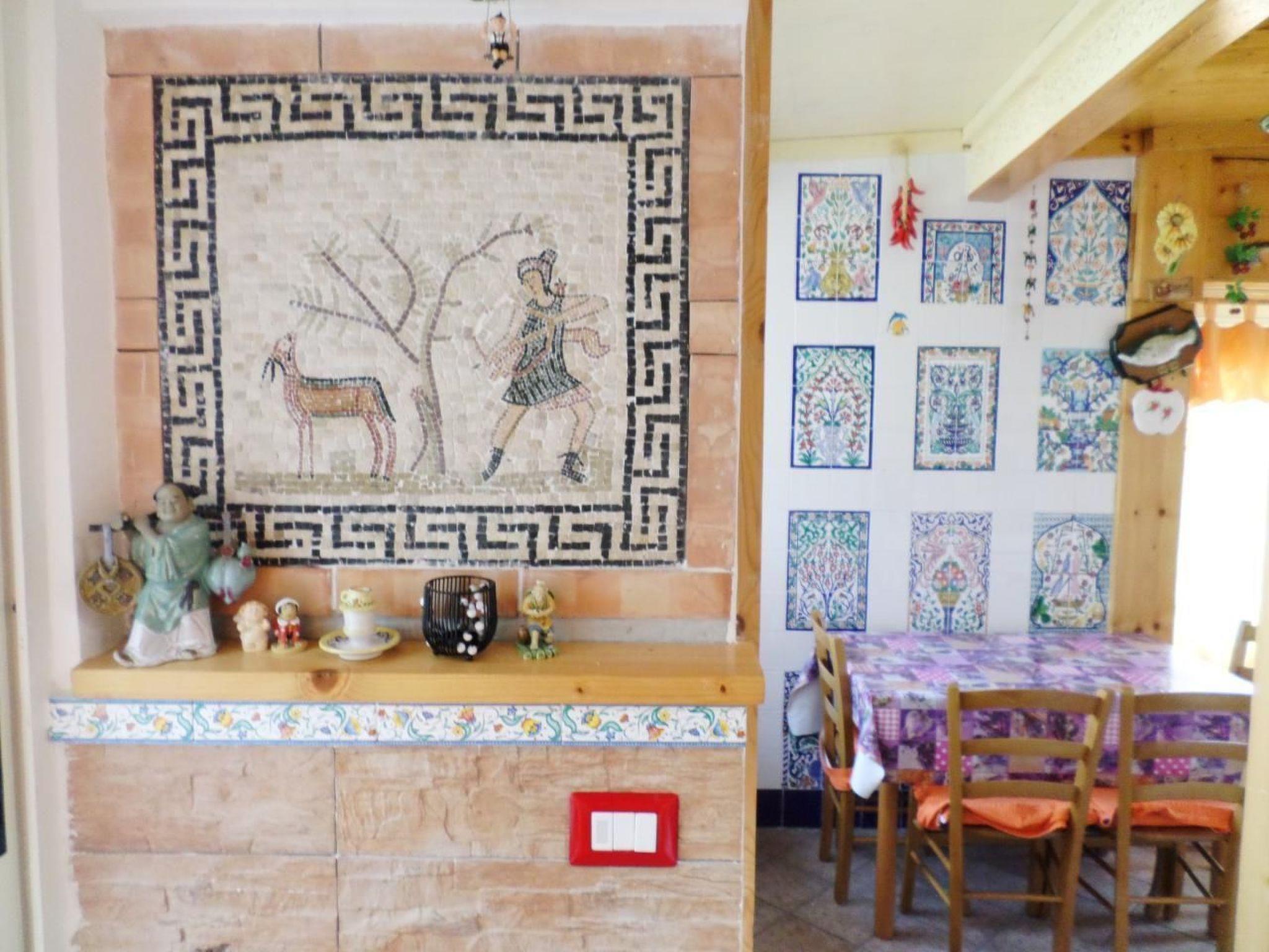 The charm of the exterior is amplified by a large garden adorned with flowers, plants, and a majestic olive tree, providing an ideal space to relax and enjoy the mild climate. Guests can make use of the terrace equipped with chairs, sun loungers, table, parasol and barbecue, perfect for al fresco dining, reading or simply sipping coffee surrounded by nature.