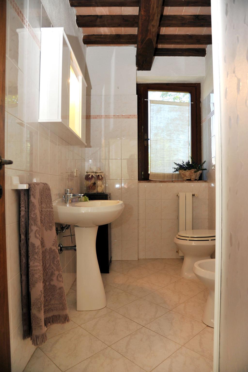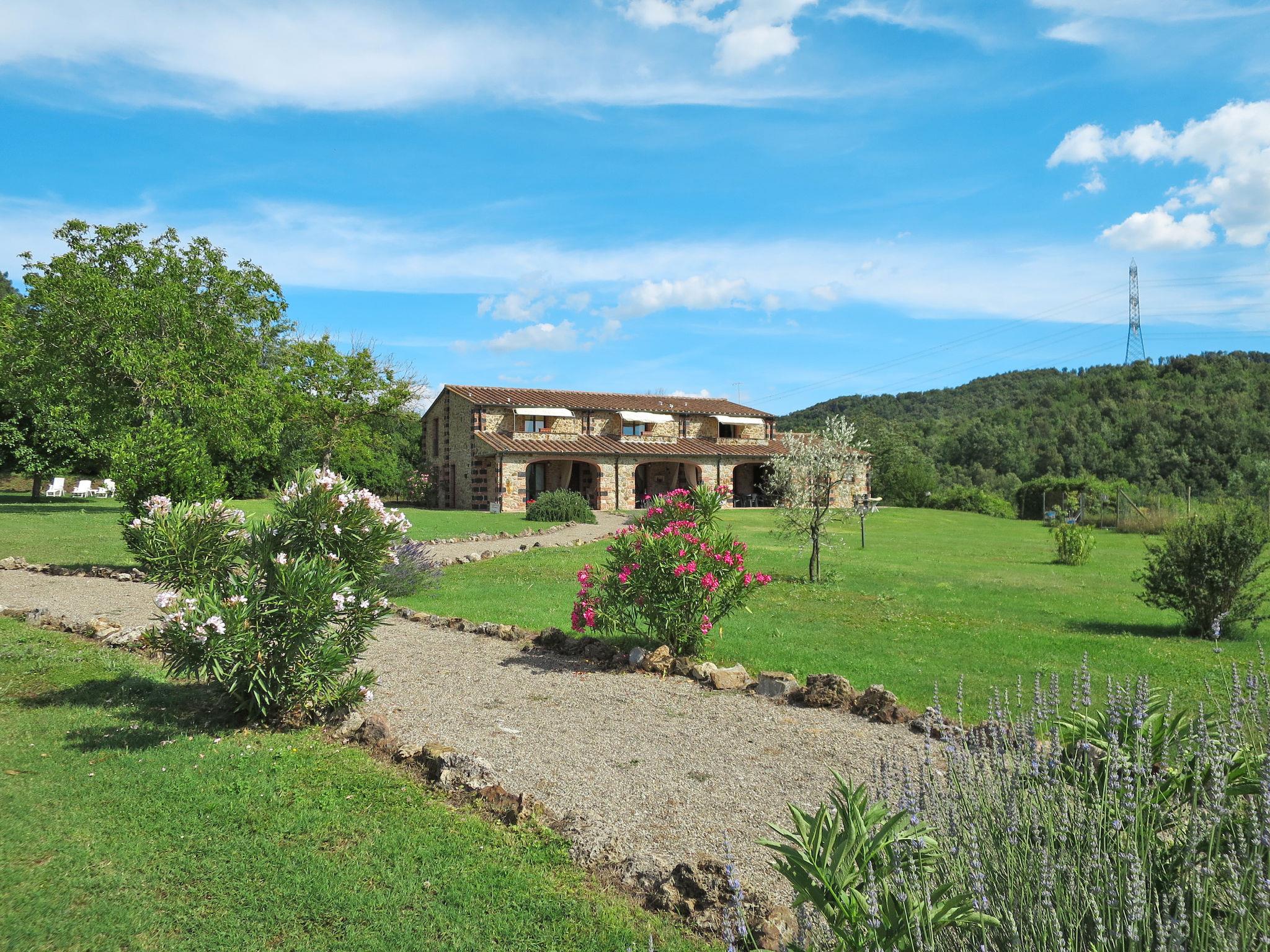 Cosy residence "Agriletizia", 2 storeys. 11 apartments in the residence. 11 km from the centre of Massa Marittima, in a quiet, sunny position, 22 km from the sea, 2 km from the lake, 200 m from the stream, in the countryside. For shared use: property 7'000 m2 (fenced) with lawn and plants, beautiful garden to relax, swimming pool (14 x 7 m, depth 140 cm, seasonal availability: 30.May. - 30.Sep.). Outdoor shower, patio, arbour, barbecue, children's playground. In the complex: WiFi, washing machine (for shared use, extra), bicycles available (extra). Bread roll service on request (extra). 500 m long motor access (via unmade road). Parking on the premises. Shop 7 km, restaurant 5 km, bus stop 11 km, railway station "Scarlino Scalo" 15 km, sandy beach "Follonica" 20 km, bathing lake "Lago dell´Accesa" 2 km. Marina 20 km, golf course (18 hole) 14 km. Nearby attractions: Follonica 20 km, Castiglione della Pescaia 37 km, Gavorrano 13 km, Scarlino 18 km, Roccastrada 30 km. Hiking paths: Parco naturale di Montioni 20 km. WiFi only in the outdoor areas.
