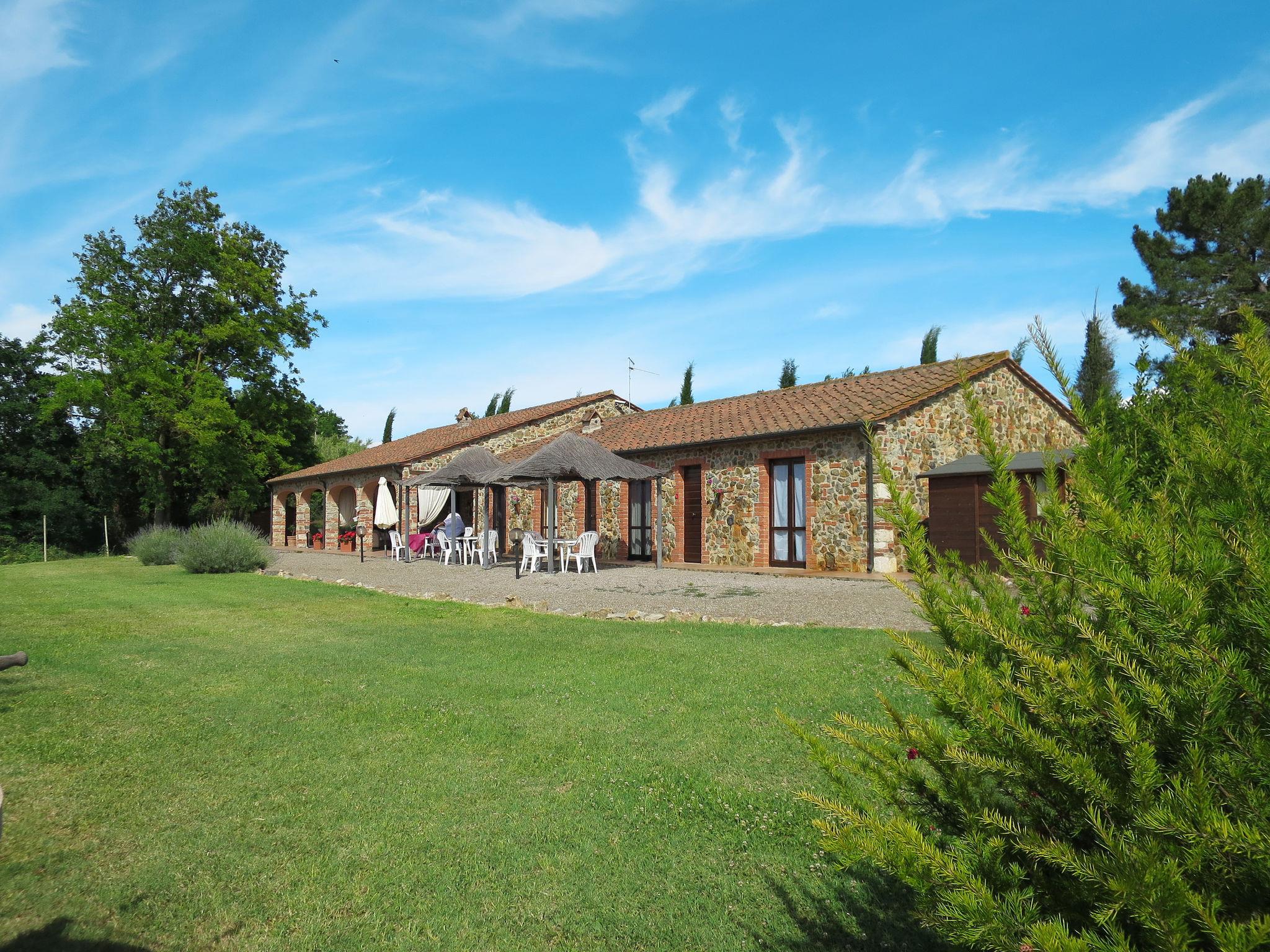 Cosy residence "Agriletizia", 2 storeys. 11 apartments in the residence. 11 km from the centre of Massa Marittima, in a quiet, sunny position, 22 km from the sea, 2 km from the lake, 200 m from the stream, in the countryside. For shared use: property 7'000 m2 (fenced) with lawn and plants, beautiful garden to relax, swimming pool (14 x 7 m, depth 140 cm, seasonal availability: 30.May. - 30.Sep.). Outdoor shower, patio, arbour, barbecue, children's playground. In the complex: WiFi, washing machine (for shared use, extra), bicycles available (extra). Bread roll service on request (extra). 500 m long motor access (via unmade road). Parking on the premises. Shop 7 km, restaurant 5 km, bus stop 11 km, railway station "Scarlino Scalo" 15 km, sandy beach "Follonica" 20 km, bathing lake "Lago dell´Accesa" 2 km. Marina 20 km, golf course (18 hole) 14 km. Nearby attractions: Follonica 20 km, Castiglione della Pescaia 37 km, Gavorrano 13 km, Scarlino 18 km, Roccastrada 30 km. Hiking paths: Parco naturale di Montioni 20 km. WiFi only in the outdoor areas.