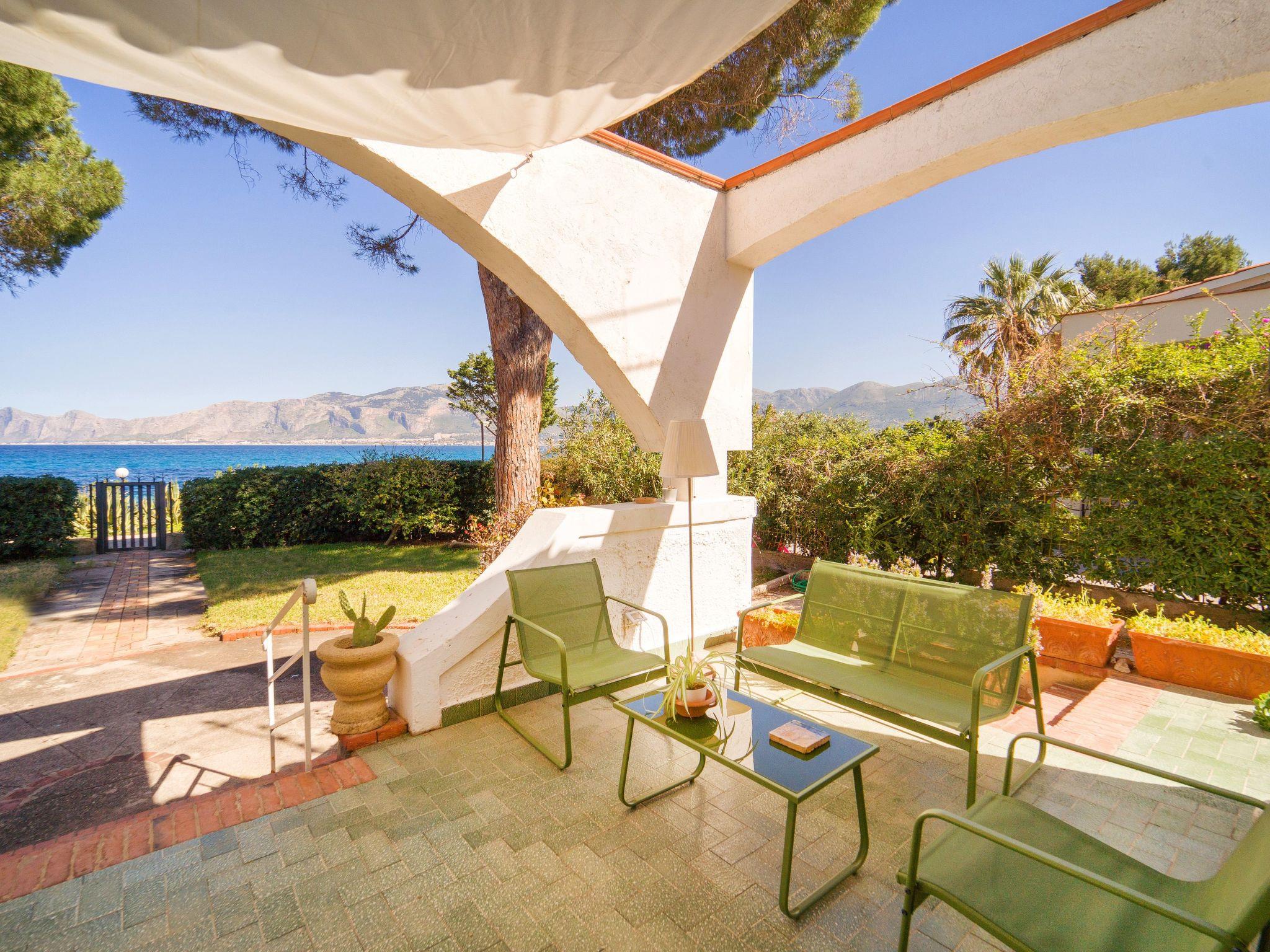 The lounge and kitchen embrace the panorama as far as Isola delle Femmine.