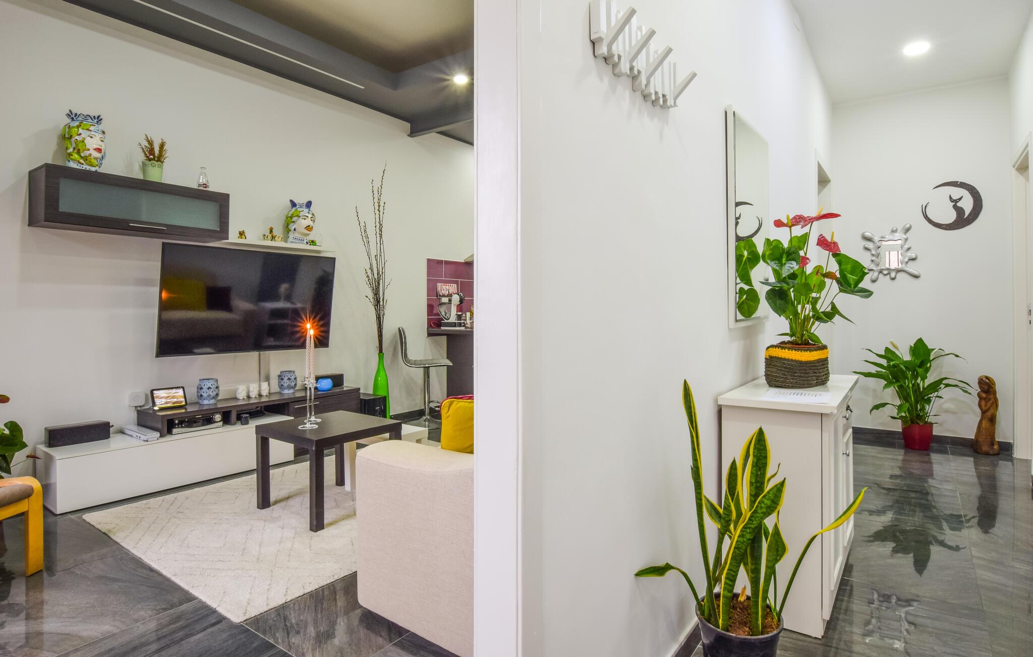 Velkommen til dette unikke hus, der ligger i landsbyen Mitogio, og hvor I som familie får de bedste rammer for en allelunde dejlige ferie. Indretningen fremtræder flot og særegent med planter, finurlige udsmykningsdetaljer og et komfortabelt møblement, der gør det nemt at sænke skuldrene med det samme, I stiller kufferterne.