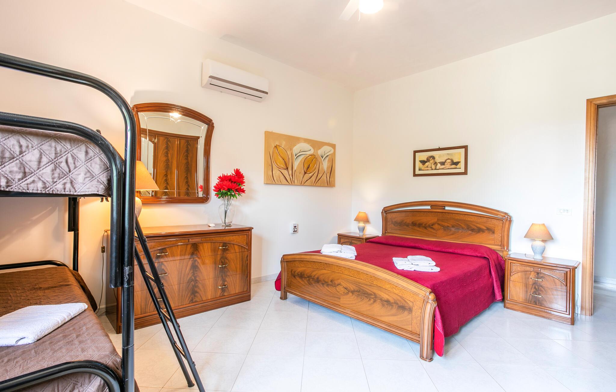 Dette vennefamilielige feriehus i Modica lægger op til en uforglemmelig ferie med middelhavsstil. Indenfor kan I forvente smagfuld indretning med masser af plads og lys. De varme farver og den indbydende atmosfære skaber en behagelig, familiær atmosfære, hvor I straks vil føle jer hjemme.
