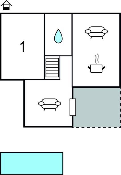 Opholdsstue/køkken 42m2 - 2 Sovepladser. (Sofa, madras eller lignende).