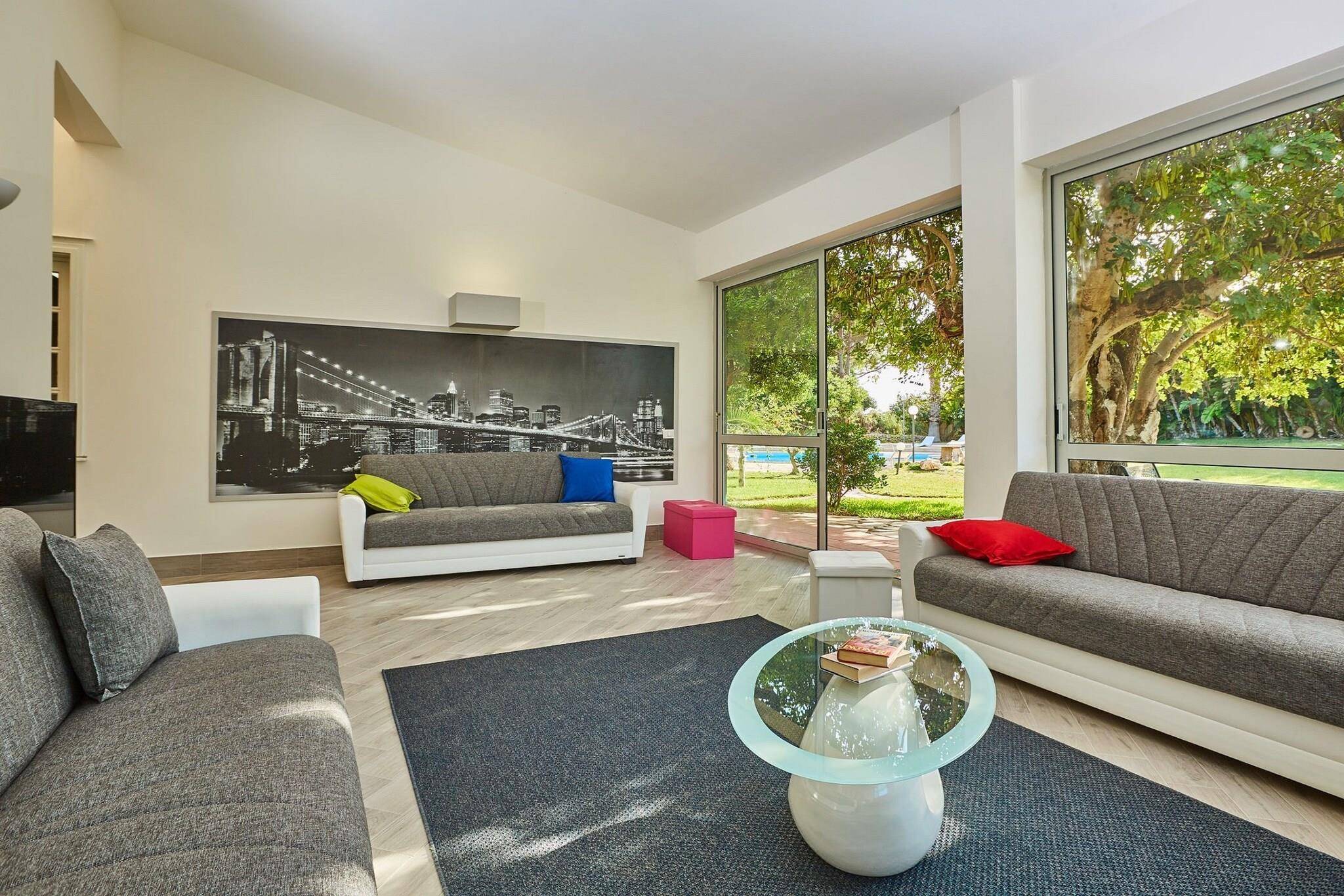 Stueetage: (entre(klimaanlæg), sofastue(sofahjørne, bar, klimaanlæg, biljard), Køkken(kogeplade, elkedel, brødrister, komfur, emhætte, kaffemaskine, espressomaskine, ovn, grill, mikrobølgeovn, opvaskemaskine , fryser, køle-fryseskab, vaskemaskine, Saftpresser, Blender), Soveværelse med badeværelse(enkeltseng, bruser, håndvask, toilet, bidet, klimaanlæg), terrasse) På 1. etage: (Soveværelse med badeværelse(dobbeltseng, dobbeltsovesofa, bruser, håndvask, toilet, bidet, klimaanlæg), Soveværelse med badeværelse(køjeseng, bruser, håndvask, toilet, bidet, klimaanlæg), Soveværelse med badeværelse(dobbeltseng, bruser, håndvask, toilet, bidet, klimaanlæg), Soveværelse med badeværelse(dobbeltseng, bruser, håndvask, toilet, bidet, klimaanlæg), Soveværelse med badeværelse(dobbeltseng, bruser, håndvask, toilet, bidet, klimaanlæg), Soveværelse med badeværelse(dobbeltseng, bruser, håndvask, toilet, bidet, klimaanlæg), Soveværelse med badeværelse(enkeltseng, bruser, håndvask, toilet, bidet, klimaanlæg), Soveværelse med badeværelse(halvandenmandsseng, bruser, håndvask, toilet, bidet, klimaanlæg)) udekøkken, spisebord, baggård, have, havemøbler, grill, parkering, liggestole, swimmingpool(privat, 16 x 12 m.), bordtennisbord, bordfodbold, hyggespil, Solcreme, Haveskur, Pladegrill, Gyngestativ