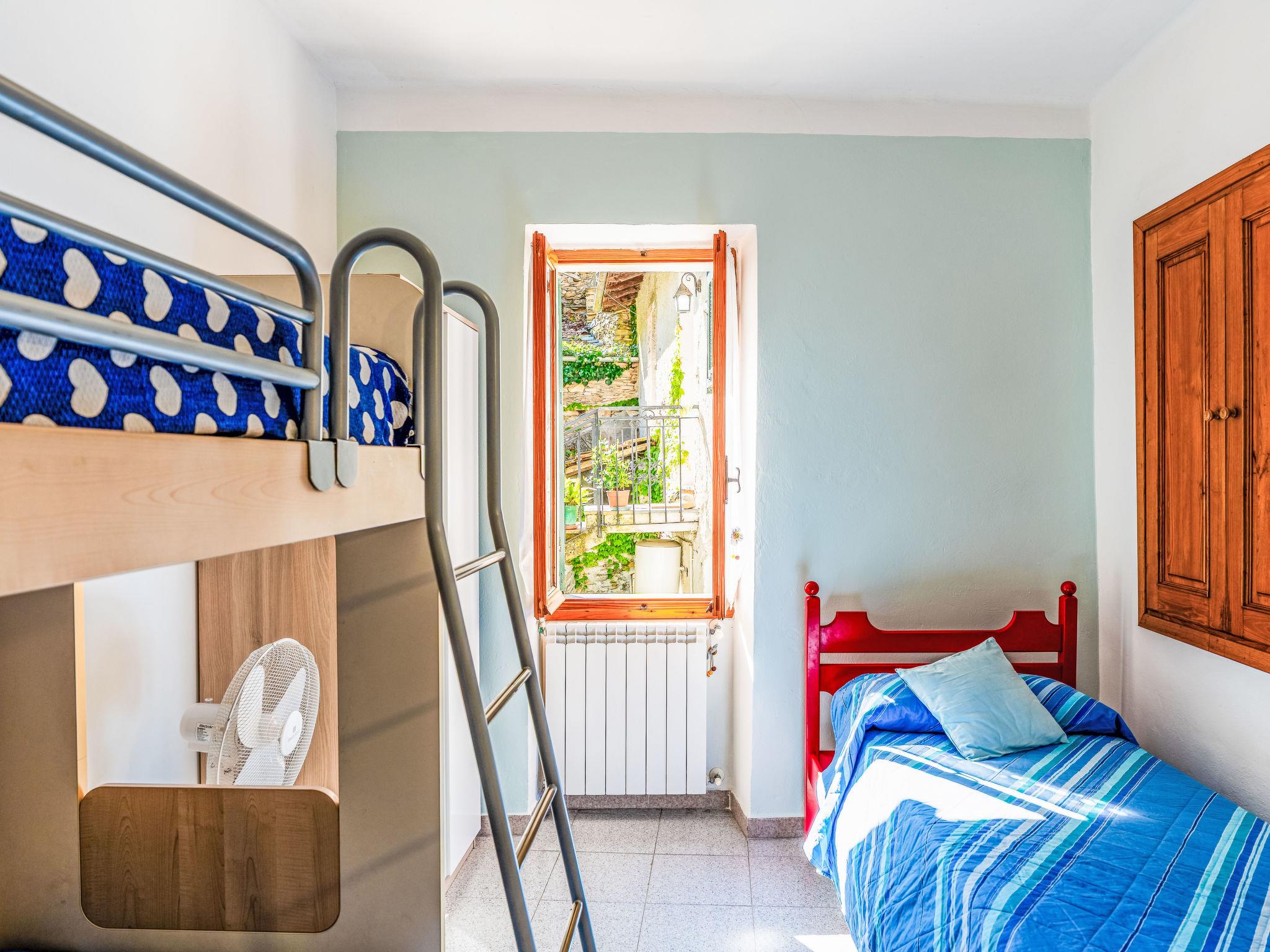 "Nonna Lena", 3-room terraced house 70 m2 on 2 levels. Bright, practical and cosy furnishings: living/dining room with dining table and satellite TV. Kitchenette (oven, 4 induction hot plates, toaster, kettle, microwave, freezer, electric coffee machine) with dining table. Shower/bidet/WC. No heating option. Upper floor: 1 room with 1 double bed (1 x 160 cm, length 200 cm). 1 room with 1 bed and 1 x 2 bunk beds. Patio. Side view of the valley and the resort. Facilities: washing machine, iron, hair dryer. Internet (WiFi, free). Maximum 1 pet/ dog allowed. IT008047C2LK7AY2A5
