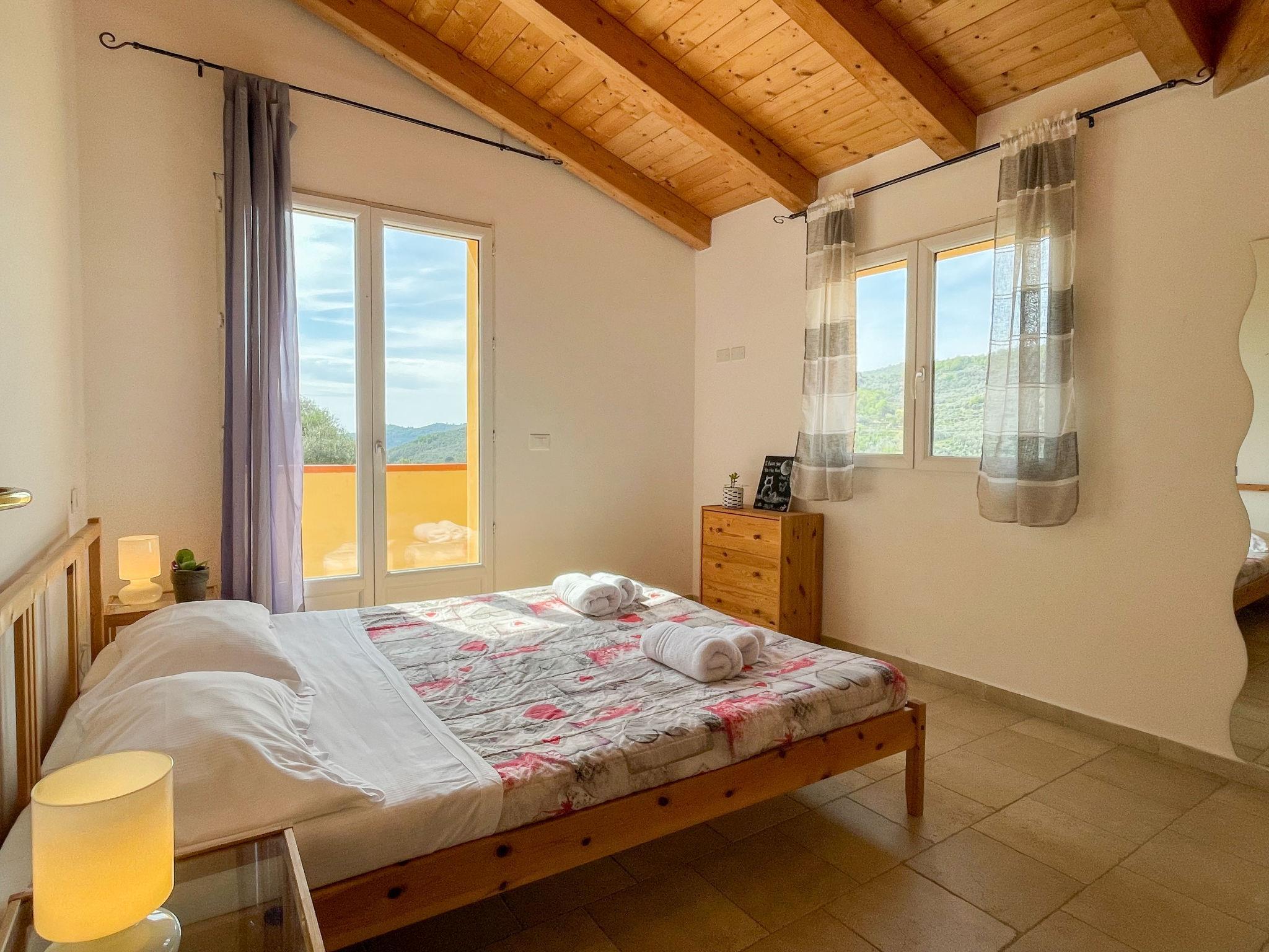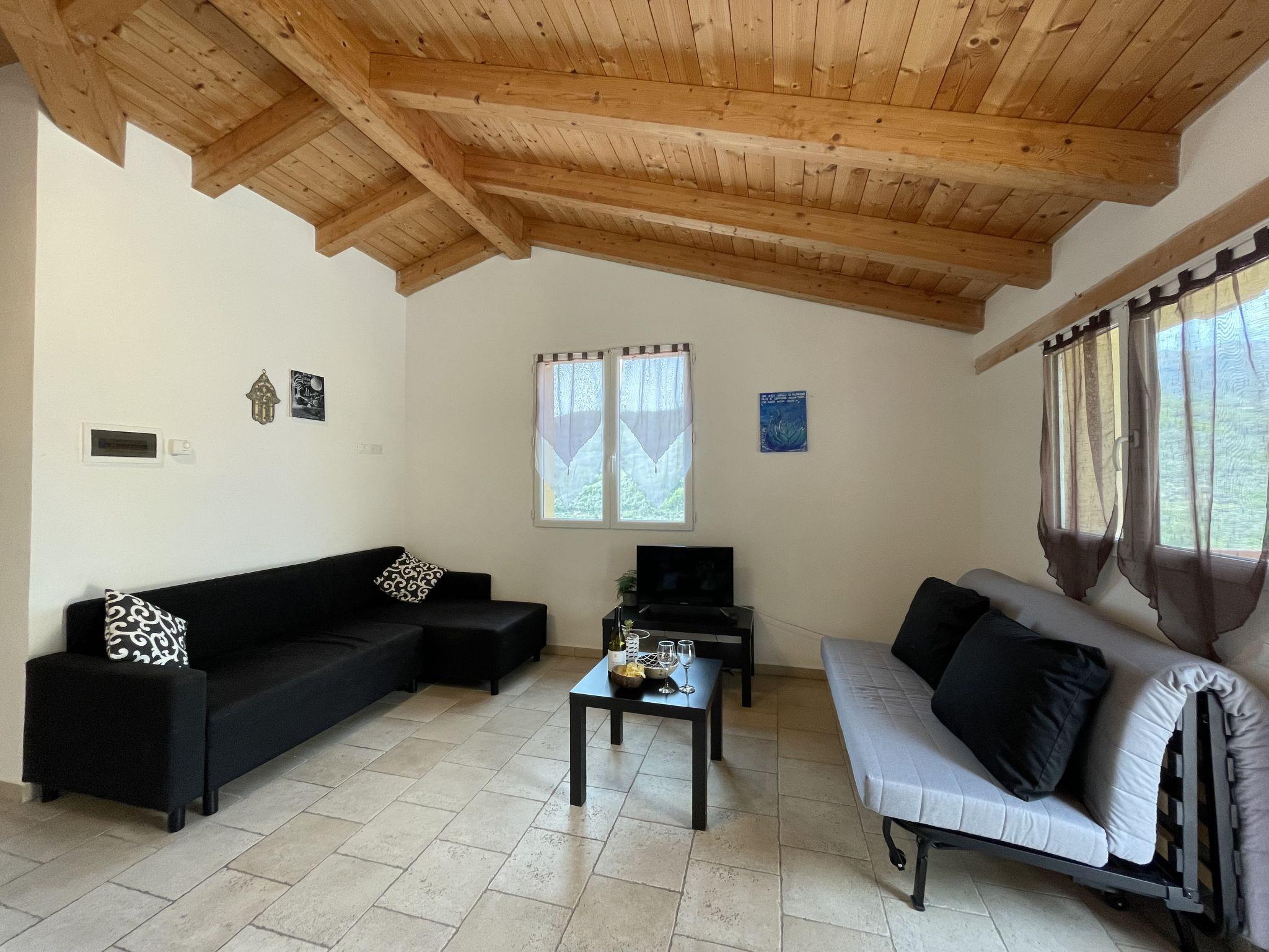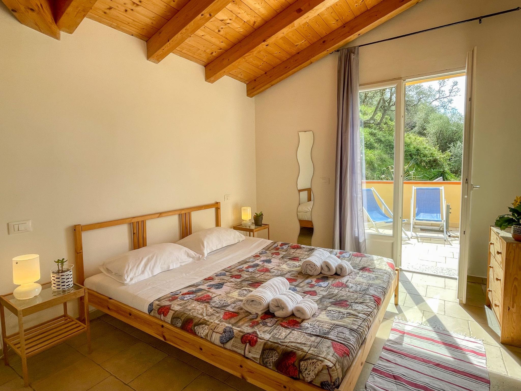 Small, beautiful residence "Clara", built in 2014, surrounded by trees. 4 apartments in the residence. In the hamlet Canneto 3 km from the centre of Prelà, 5 km from the centre of Dolcedo, 12 km from the centre of Imperia, in a quiet, sunny position on a slope, 15 km from the sea, in a cul-de-sac, in the countryside. For shared use: natural state property 1'200 m2 (fenced) with trees, natural garden, swimming pool (above ground) kidney-shaped (8 x 4 m, depth 120 cm, seasonal availability: 01.Jan. - 31.Dec.). Outdoor shower. 50 m long steep, narrow motor access to the house (ramp). Parking (limited number of spaces) at the house. Shop 3 km, supermarket 12 km, restaurant 3 km, bar 3 km, bakery 3 km, café 3 km, bus stop 300 m, railway station "Porto Maurizio" 15 km, sandy beach "Imperia - Porto Maurizio" 15 km. Please note: car recommended.