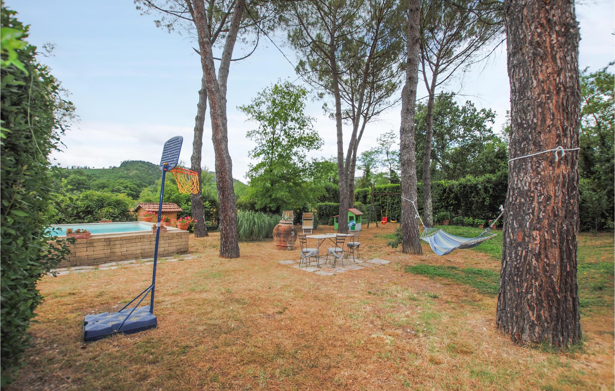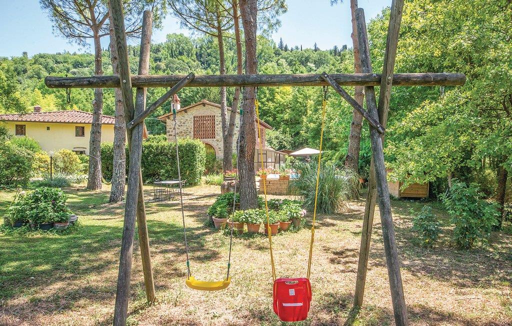 Det store indhegnede udeområde med havemøbler lægger op til måltider i det fri. Der er også legeredskaber til familiens små. Lav nem og lækker mad på grillen. Ejerner bor i hovedbygningen ved siden af. Gå ture i de smukke skove i nærheden og besøg de mange lokale spisesteder og smag den lækre italienske gastronomi og de gode vine. Her kan I virkelig nyde de frodigt grønne omgivelser og den friske landlige luft.