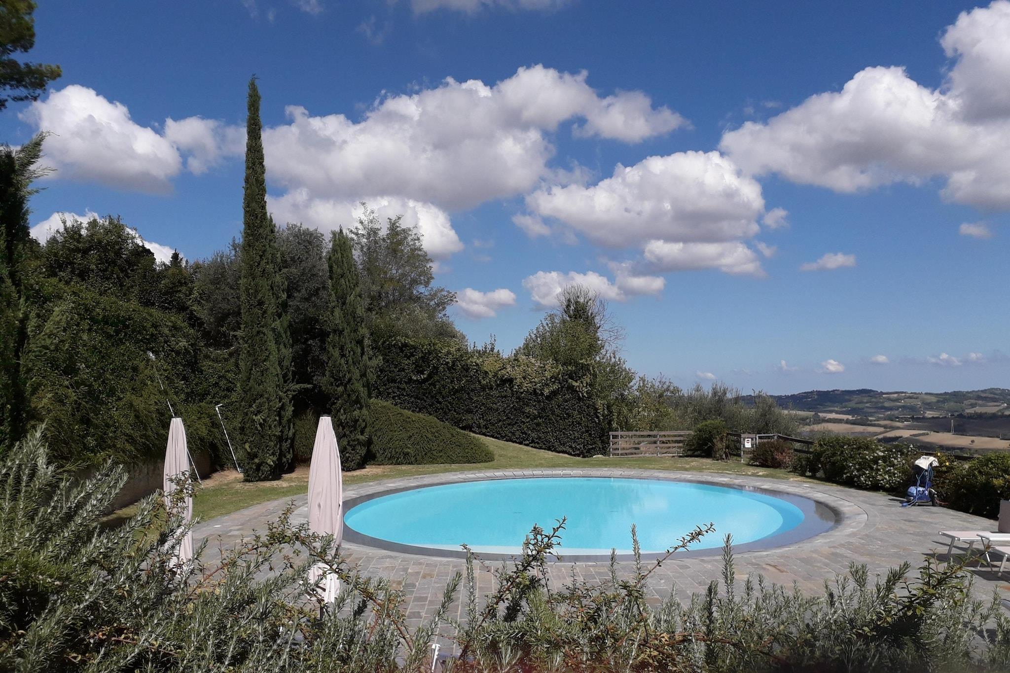Nyd en forfriskende dukkert i swimmingpoolen, som deles med ejeren og andre gæster, og undgå den brændende sommervarme. Slap af på den fælles græsplæne med en god bog, og se dine børn lege omkring dig. Der er privat parkering, så dine biler kan forblive sikre, og det modulære køkken er tilstrækkeligt til selvforplejning. Et bageri, restauranter og bymidten ligger inden for en radius af 500 m. Campo del Boriccio økologiske park ligger i nærheden, det samme gør et museum og supermarkeder. Dagsture til Parco Naturale Monte San Bartolo og statsparken samt forlystelsesparken Fiabilandia, 24 og 50 km væk, ville være sjove. Det er værd at bemærke, at dette er en lejlighed på første sal i en stor adelsvilla fra 1563, som begge er italiensk Belle Arti-arv. Du har adgang til WiFi, barneseng og højstol gratis. Der er aircondition, og opvarmning mod et mindre gebyr. Federico Fellini Internationale Lufthavn ligger 48 km væk. Bemærk: Swimmingpoolen er åben fra 15. maj til 30. september hvert år.