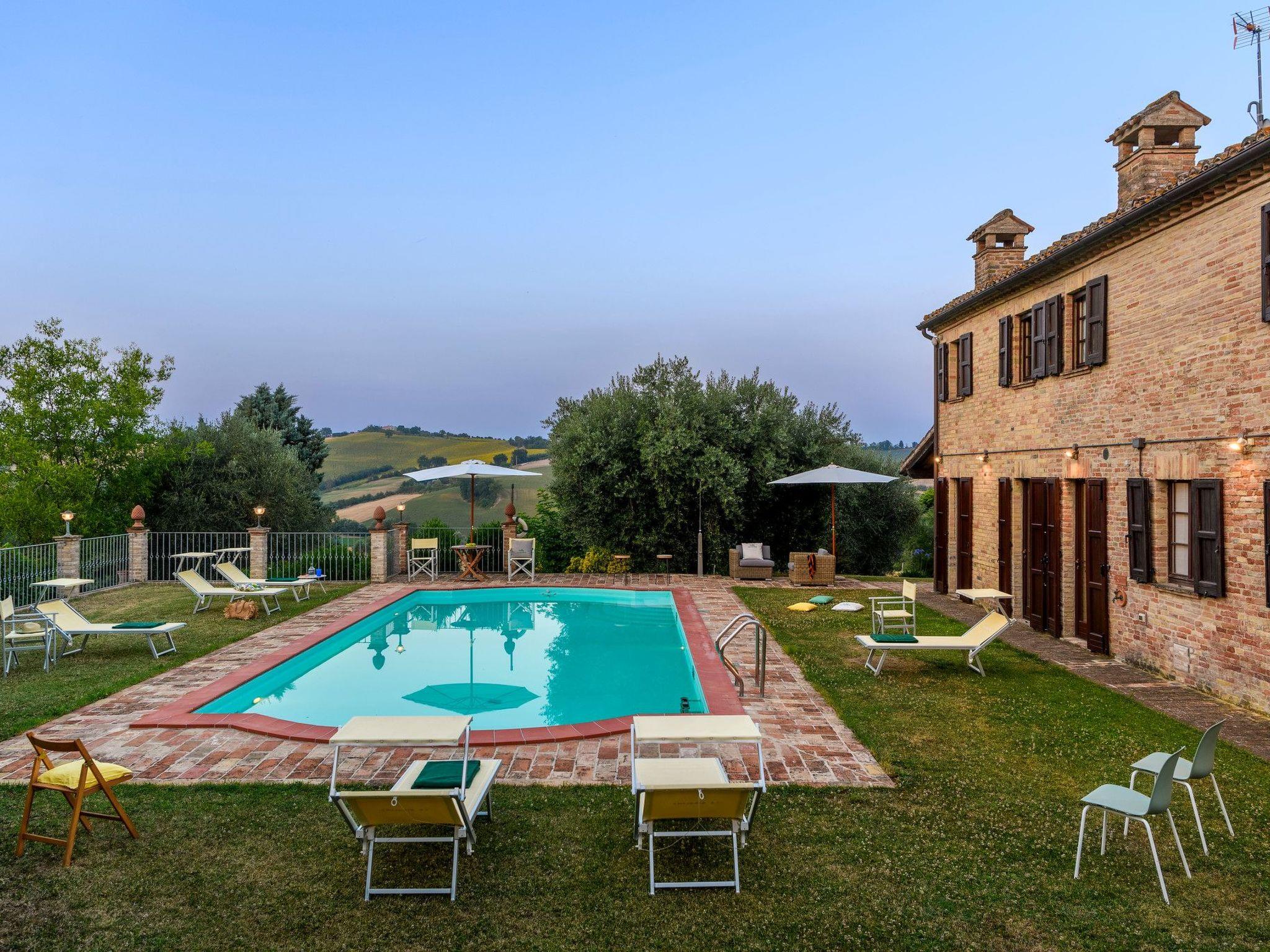 The swimming pool is located at the back of the property and boasts views of the nearby town of Mondavio.