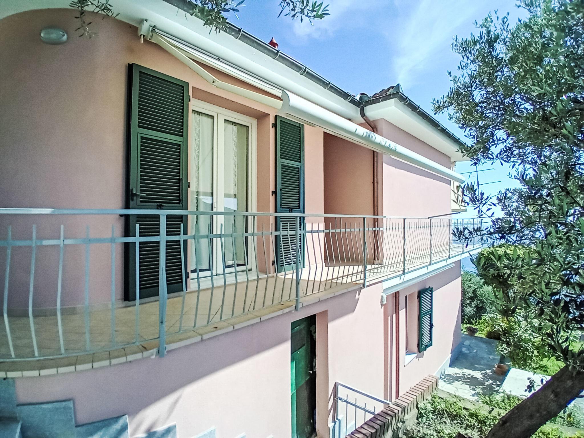 Small apartment house, renovated in 2023. Above Moneglia, in the hamlet Lemeglio, 1.5 km from the centre, in a quiet, sunny position on a slope, 1.8 km from the sea, in a cul-de-sac. Stepped path (10 steps) to the house. Supermarket 1.5 km, restaurant 200 m, bus stop 500 m, railway station "Moneglia" 2 km, shingle beach 1.8 km. Please note: car recommended.
