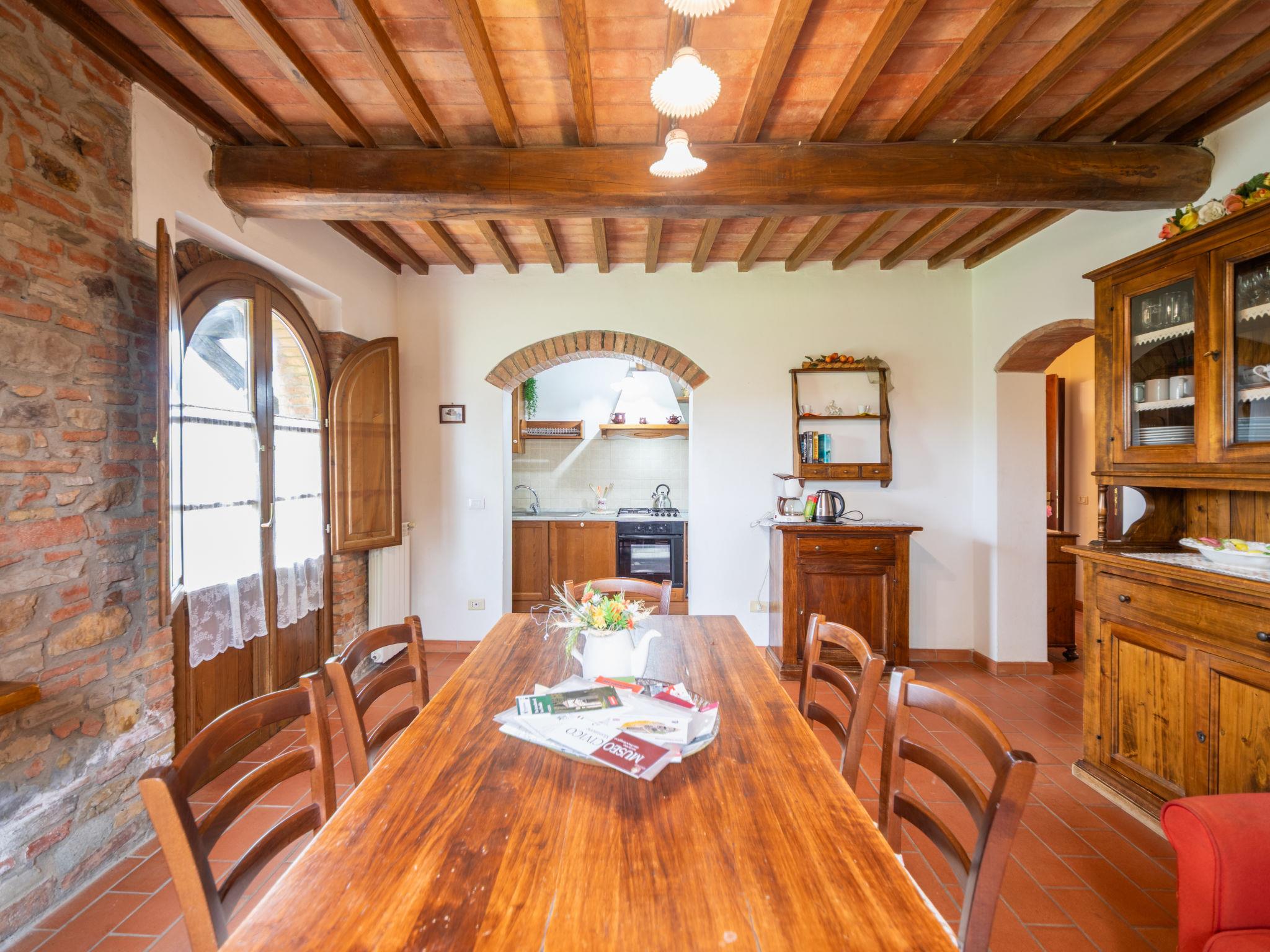 Montaione 19 km from San Gimignano: Agriturismo Casa Bacceli is divided into 7 apartments, one of which is occupied by the owner. The agroturismo is situated on a hill approx. 2 km from the centre of Montaione, in an oasis of peace and tranquility. An ideal place for relaxing holiday walking in the open air and in the Tuscan countryside - a perfect base for visiting the art cities in the region such as Volterra approx. 20 km, Siena and Lucca approx. 50 km, the Etruscan beaches approx. 60 km. Large working farm "Baccelli". 7 apartments in the property. 2 km from the centre of Montaione, 15 km from the centre of San Gimignano, 50 km from the centre of Firenze, in a secluded, quiet, sunny position on top of a hill. For shared use: garden (fenced), swimming pool (15 x 9 m, depth 120 - 200 cm, seasonal availability: 27.Apr. - 28.Sep.). Garden furniture, barbecue. In the complex: WiFi, central heating system, heating to be paid on the spot, heating available only from 01.Nov. - 07.Apr.. Motor access to the house (800 m via unmade road). Parking at the house. Shop 2 km, grocery 2 km, supermarket 2 km, bus stop 2 km, railway station "Castelfiornetino" 12 km. Golf course (18 hole) 17 km, tennis 5 km. Nearby attractions: Certaldo 19 km, San Miniato 30 km, San Casciano in Val di Pesa 40 km, Colle Val d'Elsa 40 km. WI-FI in the pool area and garden.
