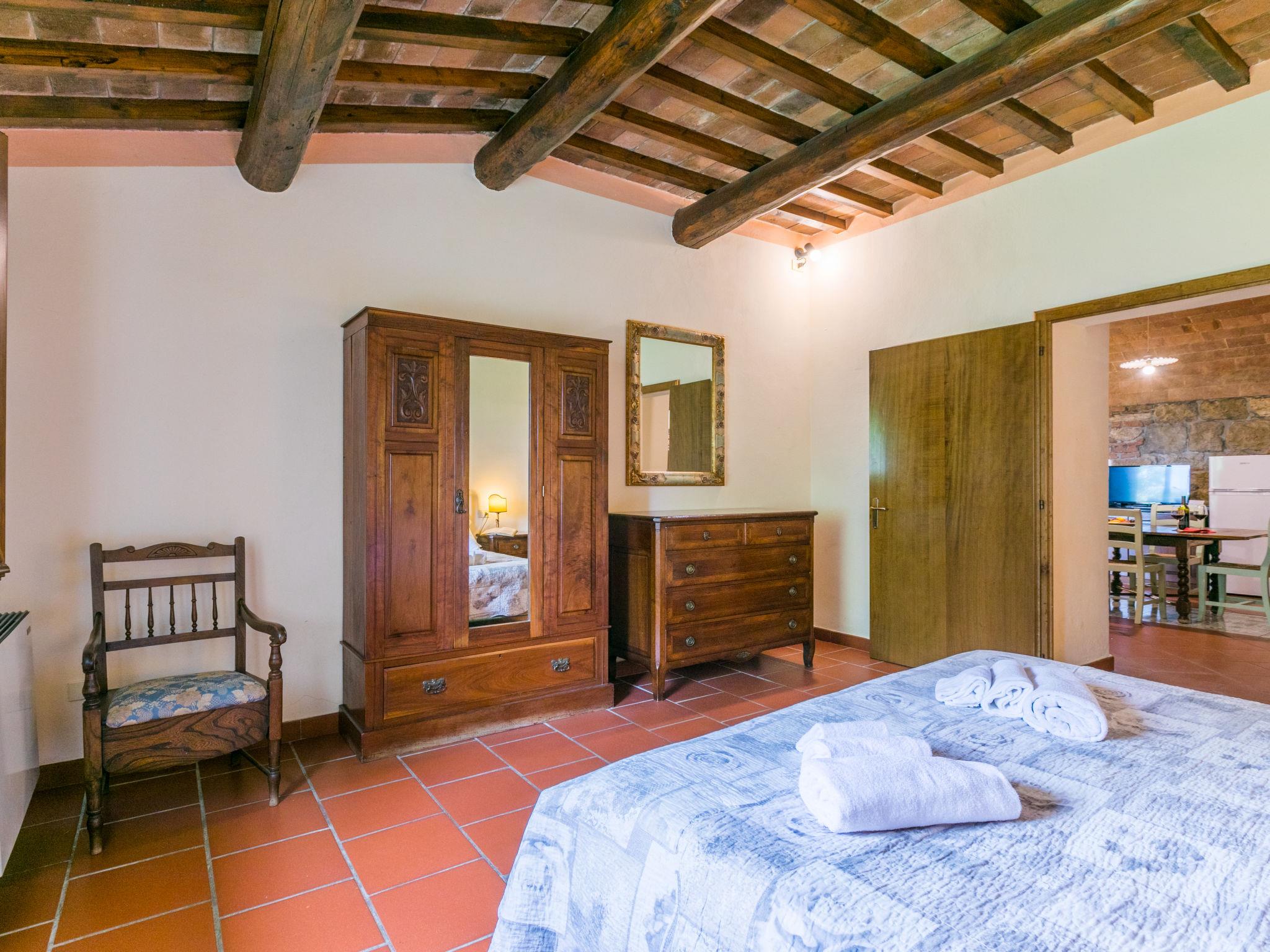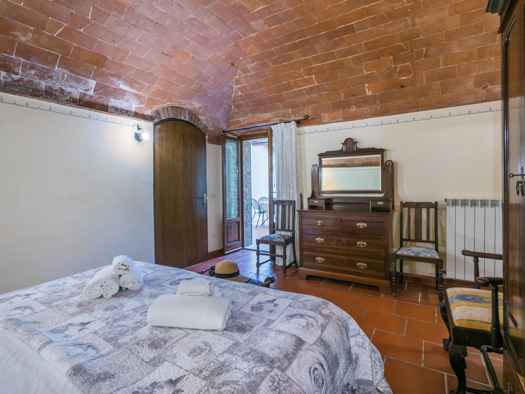 Country house 300 m a.s.l.. 4 apartments in the property. 10 km from the centre of Montaione, 60 km from the centre of Pisa, 65 km from the centre of Firenze, in a sunny position on top of a hill, in the countryside. For shared use: garden (fenced), swimming pool fenced (12 x 6 m, depth 120 - 300 cm, seasonal availability: 25.Apr. - 17.Oct.). Outdoor shower, garden furniture, barbecue, pool maintenance by the owner/gardener. In the house: central heating system, heating to be paid on the spot, heating available only from 01.Nov. - 04.Apr.. Parking on the premises. Supermarket 10 km, restaurant 80 m, bus stop 10 km, sandy beach "Catiglioncello" 60 km, thermal baths "Casciana Terme" 39 km. Golf course (18 hole) 12 km. Nearby attractions: San Gimignano, Volterra 19 km, Lajatico 21 km, Peccioli 22 km, Barberino Val D'elsa 36 km, Castellina in Chianti 45 km, Monteriggioni 50 km.