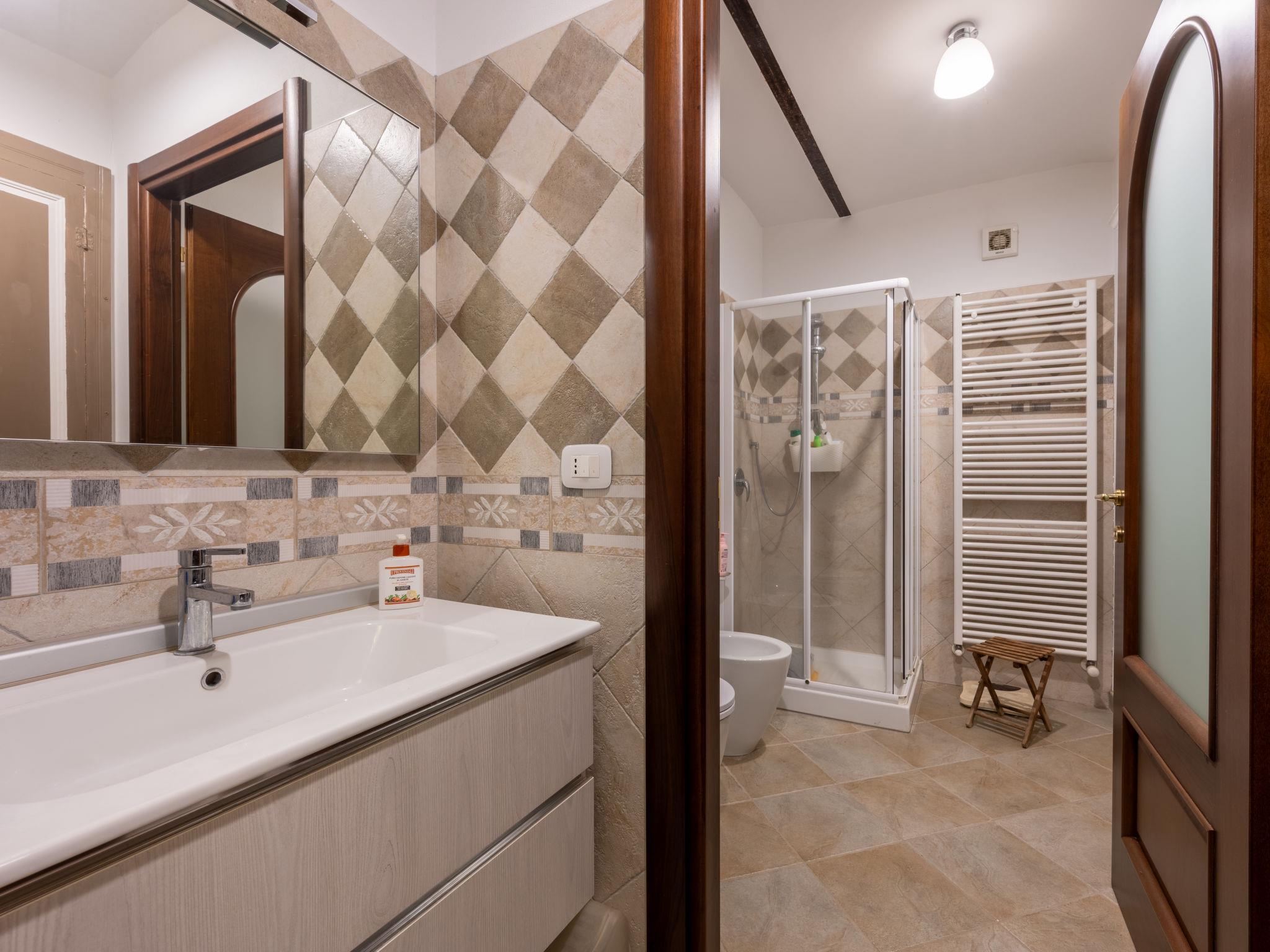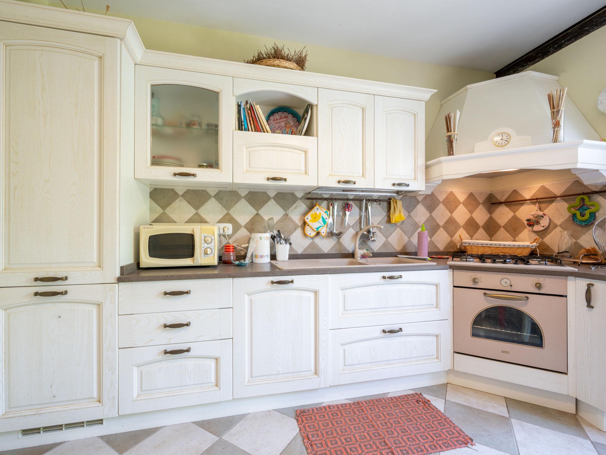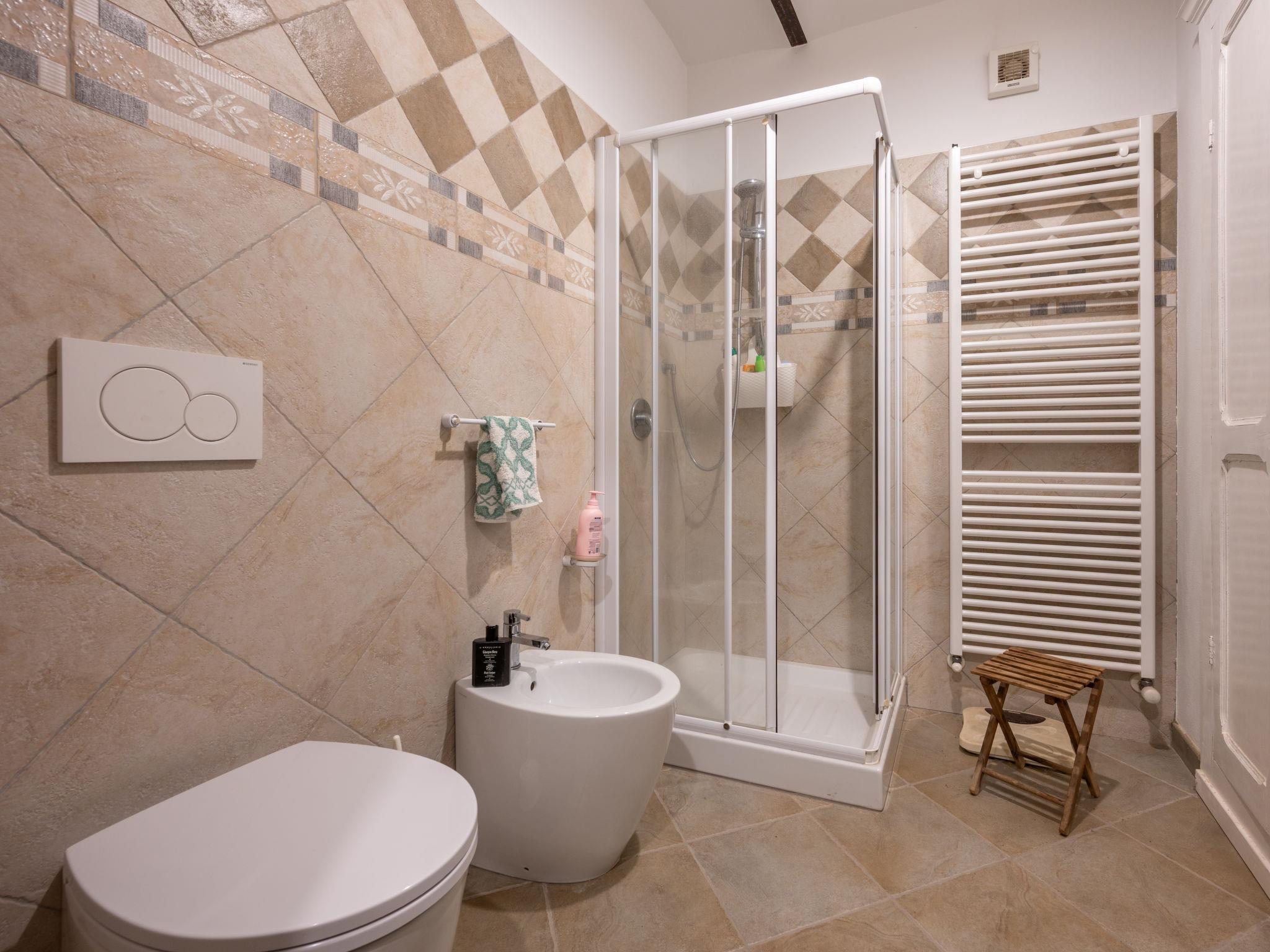 "San Rocco", 4-room terraced house 130 m2 on 3 levels. Practical and comfortable furnishings: dining room with dining table. Exit to the garden. Living/sleeping room with 1 double sofabed and open-hearth fireplace (only for decoration), TV. Kitchen-/living room (oven, 5 gas rings, microwave) with dining table. Exit to the garden. Shower/bidet/WC. Upper floor: bath/bidet/WC. 2nd upper floor: 1 double bedroom with 1 french bed (140 cm, length 190 cm). Exit to the balcony. 1 room with 1 x 2 bunk beds, 1 double bed. Garden 45 m2. Terrace furniture. Facilities: washing machine, hair dryer. Please note: maximum 1 pet/ dog allowed. Smoke alarm, fire extinguisher. IT004135C2CRDCJVPH