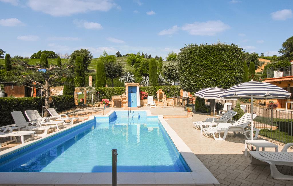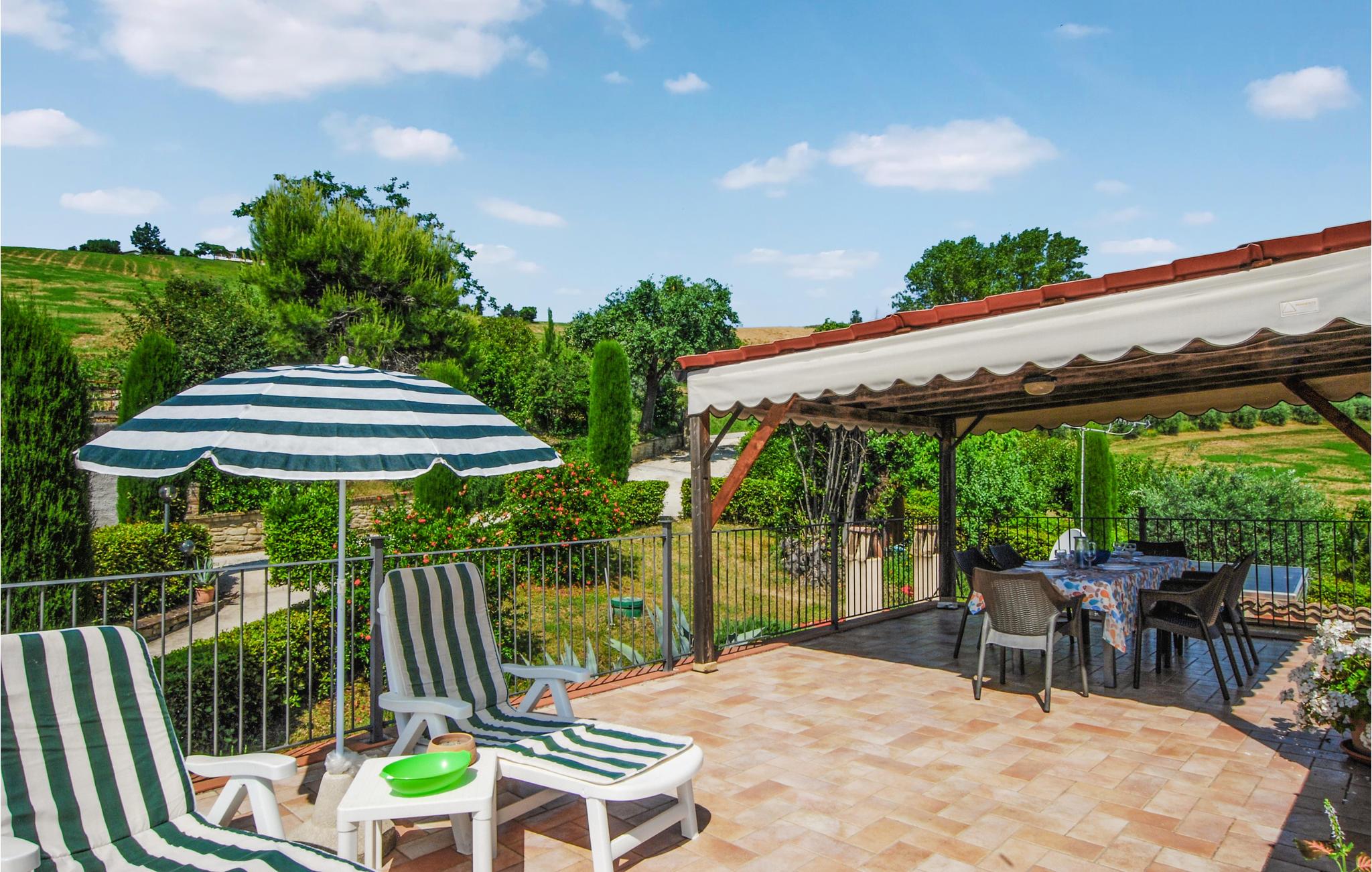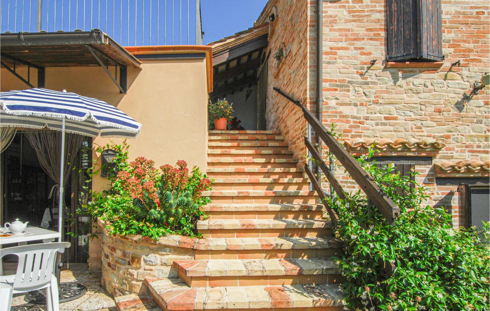 Glæd dig til denne hyggelige og charmerende lejlighed med fælles pool i Monte Rinaldo. Nyd en afslappet og afslappende ferie med din familie i denne smukke bolig, der tilbyder dig to ferielejligheder. Denne indbydende lejlighed ligger på 1. sal og byder på gode faciliteter, hvor I kan lave mad sammen, spille spil og slappe af på jeres terrasse. Om aftenen kan du samles til hyggelige måltider på den store, overdækkede terrasse og se ud over landskabet. Du kan også glæde dig til fælleshaven, hvor ikke kun blomster og farverige buske venter på dig, men også en stor fælles pool, der lover dig at køle af. Lad dig forkæle af solen på liggestolen og grill om aftenen. Nyd denne idyl og udforsk det smukke og behagelige landskab med dine cykler. Regionen tilbyder dig også en bred vifte af udflugtsmuligheder. Brug mange timer på sandstranden Pedaso eller vandre i Monti Sibillini National Park, som lover dig adskillige naturoplevelser. Slap af i denne smukke lejlighed og store region!