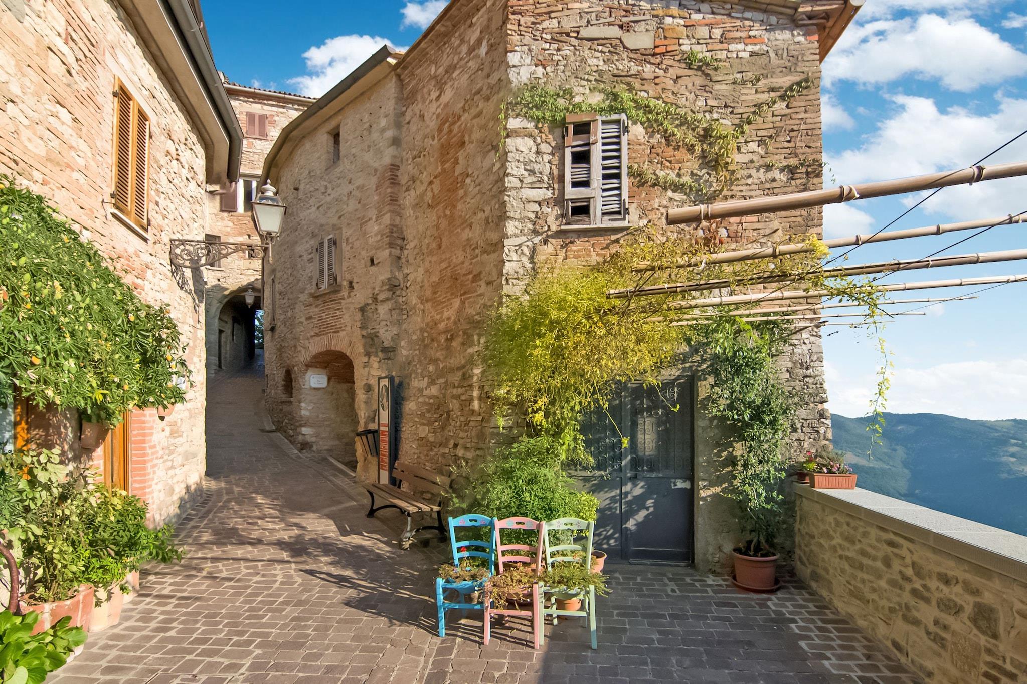 Rustic Serenity Farmhouse ligger i de bølgende bakker i Monte Santa Maria Tiberina og tilbyder et roligt tilflugtssted for op til seks gæster i kæledyrsvenlige omgivelser. Dette charmerende landlige tilflugtssted blander rustik elegance med moderne bekvemmeligheder og byder på en hyggelig stue med pejs, et fuldt udstyret åbent køkken med kogeplader, ovn, kaffemaskine, opvaskemaskine og køleskab med fryser samt tre omhyggeligt designede soveværelser - to med dobbeltsenge og et med to enkeltsenge. Bondegården kan prale af tre badeværelser, hvilket sikrer komfort og privatliv for alle gæster. Gå udenfor for at nyde den private have med møblerede siddepladser, grillplads og rigelig parkering, mens den fælles swimmingpool indbyder til afslapning i sommermånederne. Omgivet af betagende landskaber ligger gården kun 2 km fra Monte Santa Maria Tiberina og 15 km fra Città di Castello, hvilket giver nem adgang til lokale markeder, restauranter og kulturelle seværdigheder. Naturelskere kan udforske den nærliggende skov, kun 5 km væk, perfekt til vandreture og dyrelivsobservation. For dem, der søger eventyr, tilbyder regionen muligheder for cykling, ridning og naturskønne vandreture i landskabet. Gæsterne kan også benytte sig af offentlig transport inden for 2 km, hvilket gør det nemt at udforske området. Det pulserende natteliv i Città di Castello, sammen med den offentlige indendørs swimmingpool, sikrer underholdningsmuligheder for enhver smag. Bemærk venligst, at den fælles swimmingpool er åben fra midten af maj til midten af september.