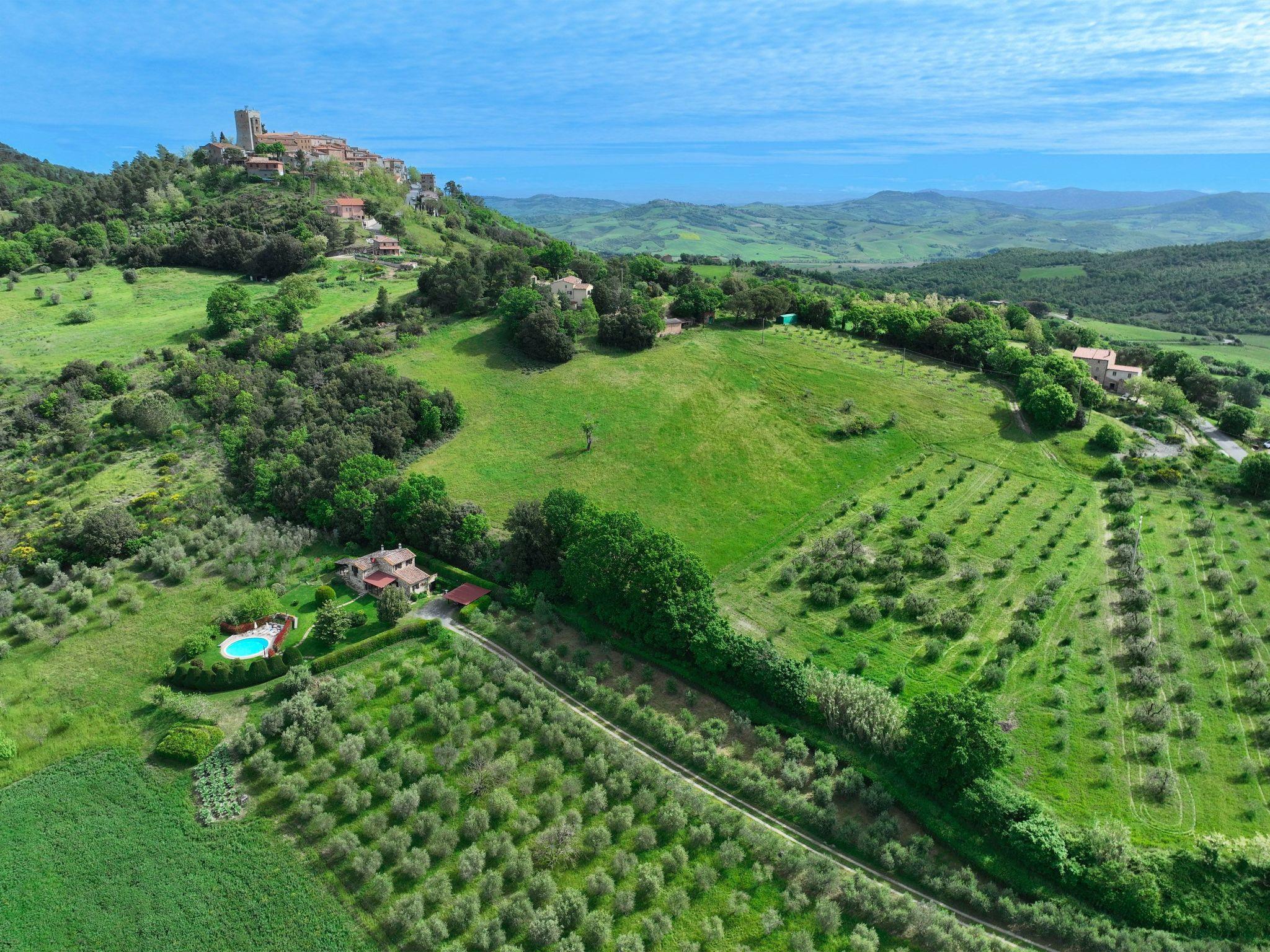 Private villa located between Siena and Volterra, with private swimming pool and jacuzzi for exclusive use. From the villa you can enjoy a wonderful panorama. A relaxing place, ideal for both family holidays and romantic honeymoons. An enchanting place where your privacy is guaranteed, the villa is in the middle of orchards and olive groves and the pool is surrounded by cypress trees. So you can relax, far from the smog and city noise. The villa has a well-kept lawn that connects the jacuzzi to the pool. You can easily visit the most important art cities in Tuscany, such as Siena, Florence, Volterra, Pisa, San Gimignano, the Chianti wine cellars and many small medieval villages. A few hundred metres from the villa is the medieval village of Montecastelli Pisano where you will also find a restaurant/pizzeria and bar. We will be at your disposal throughout your stay, you will have assistance and support from the day of your arrival when we will hand over the keys to the day of your departure.