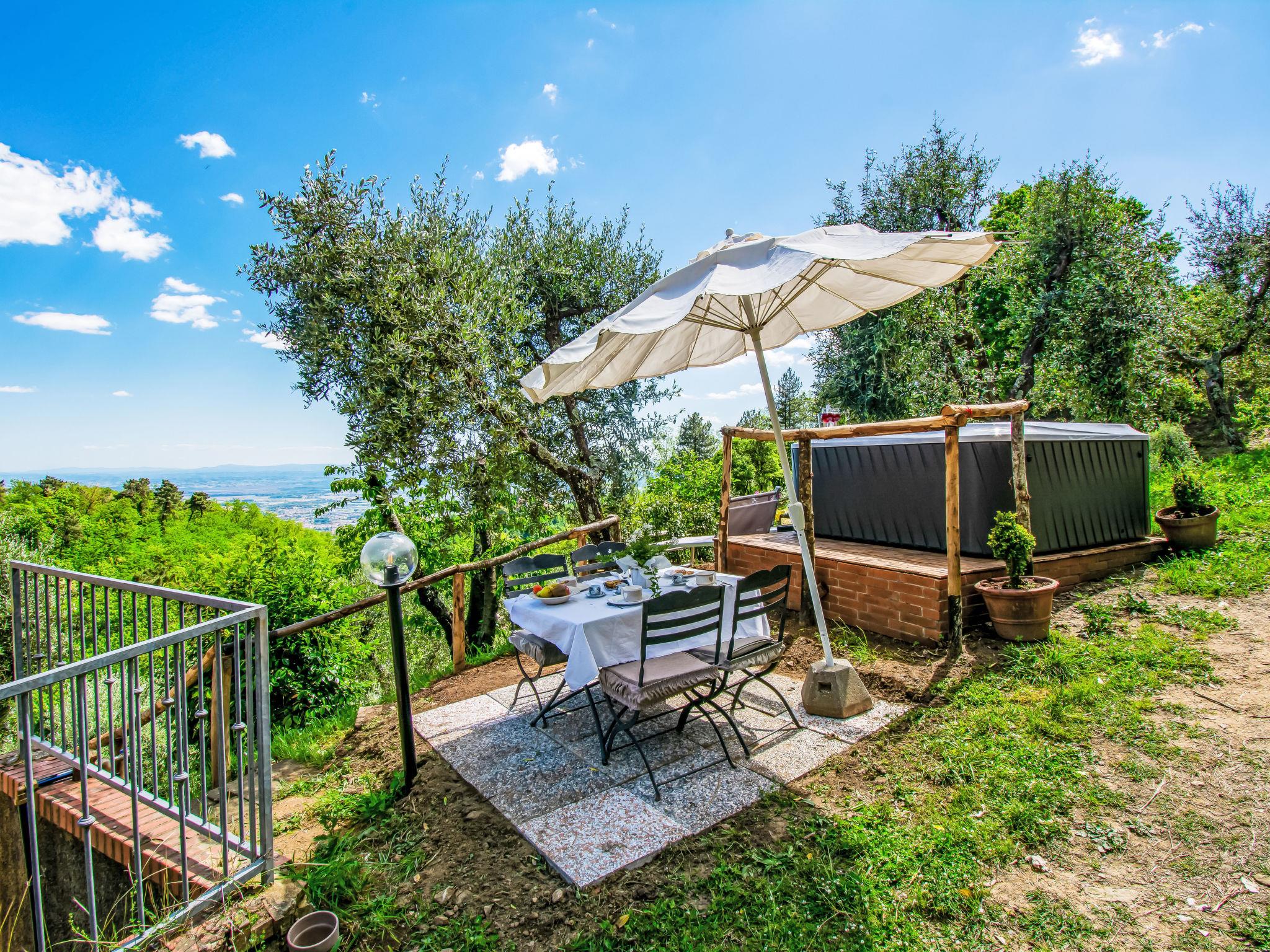 Single-family house "Il Paradiso", 600 m a.s.l., 2 storeys, detached, built in 1965, renovated in 2023, surrounded by trees. Outside the resort, 6 km from the centre of Montecatini Terme, in a quiet, sunny position on top of a hill. Private: large garden 1 ha (fenced) with trees, swimming pool (above ground) heated (2 x 2 m, depth 90 cm, seasonal availability: 20.May. - 15.Sep.). Hot tub, pergola, barbecue, children's playground. In the house: WiFi, washing machine, tumble dryer, heating available only from 15.Nov. - 15.Apr.. Parking (for 4 cars) at the house. Shop 2 km, supermarket 2 km, shopping centre 2 km, bus stop 2 km. Walking paths from the house 100 m, cable car 5 km. Nearby attractions: Montecatini Terme 6 km, Lucca 30 km, Firenze 55 km, Torre di Pisa 55 km. Please note: baby equipment on request (included). Object suitable for 4 adults + 2 children. Residence with electric gates.
