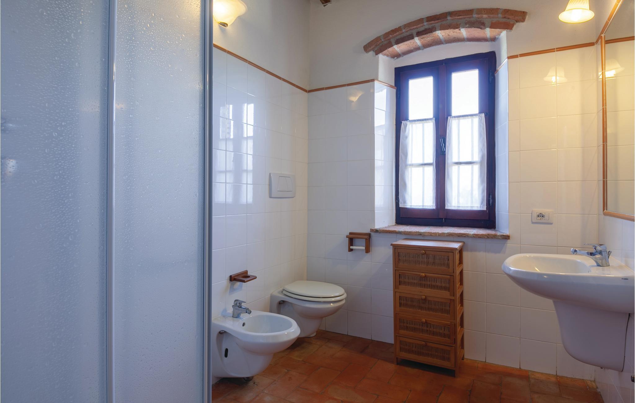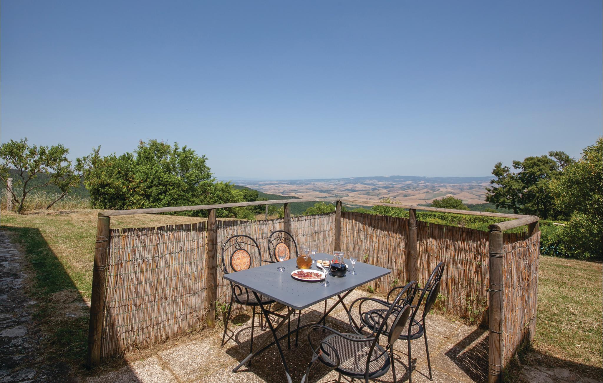 Indbydende og velholdt ferielejlighed i Montecatini Val di Cecina (Pisa). Lejligheden ligger i stueetagen af en gård med i alt tre lejligheder i det grønne toskanske landskab. Der er en stor swimmingpool til fælles brug, hvor I kan køle af på de varme sommerdage. Her kan I nyde den vidunderlige udsigt over det omkringliggende landskab. Landsbyen Montecatini Val di Cecina ligger kun 5 km væk. Også Volterra (24 km) med Palazzo dei Priori, den imponerende Medici-fæstning, det romerske teater og den etruskiske akropolis er absolut et besøg værd. Strandene i Cecina Marina er kun 35 km væk. Pisa med det berømte skæve tårn på Campo dei Miracoli og lufthavnen er 65 km væk. I dette hus også: ITP545 og ITP546.