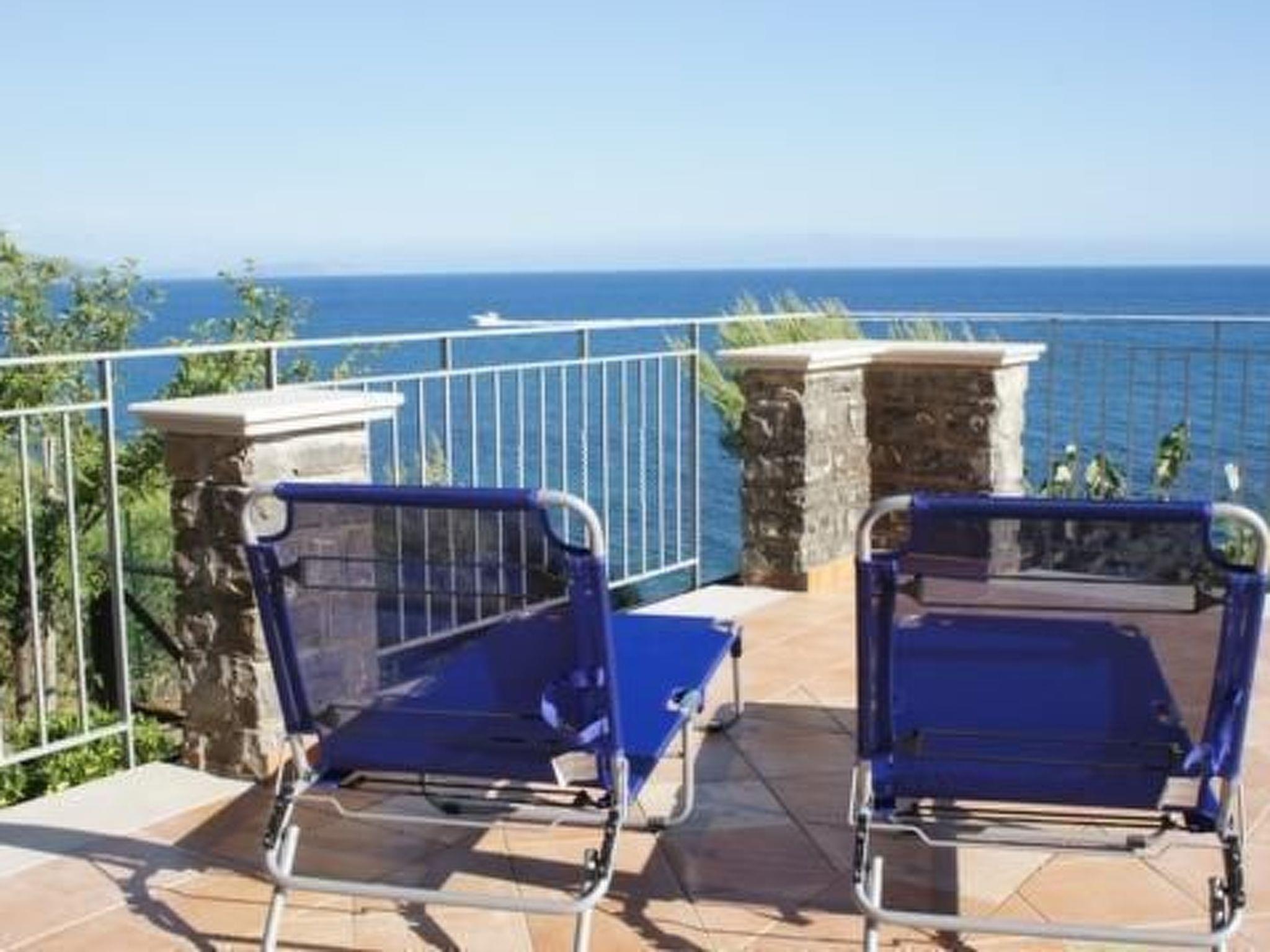 The house offers this room layout on two floors. On the ground floor there are two separate bedrooms, a bathroom with shower/bidet/wc and a washing machine. A very spacious living room (10 x 4 square metres) with dining table, 2 three-seater couch, TV satellite system (Astra) with radio reception. Stereo DVD player, a fireplace and a 70 square metre panoramic terrace overlooking the sea. The kitchen is a gas cooker with 5 plates. The oven is electric. Toaster, crockery, glasses for wine, water, champagne goblets... everything is sufficient and equipped for up to 12 people. Outside there is another covered terrace on this level. Garden furniture, tables and loungers. On the upper floor with separate and own access there is another, also very large flat. This is exactly the same size as the lower one. It can be rented separately on request. This can be occupied by the owner herself.