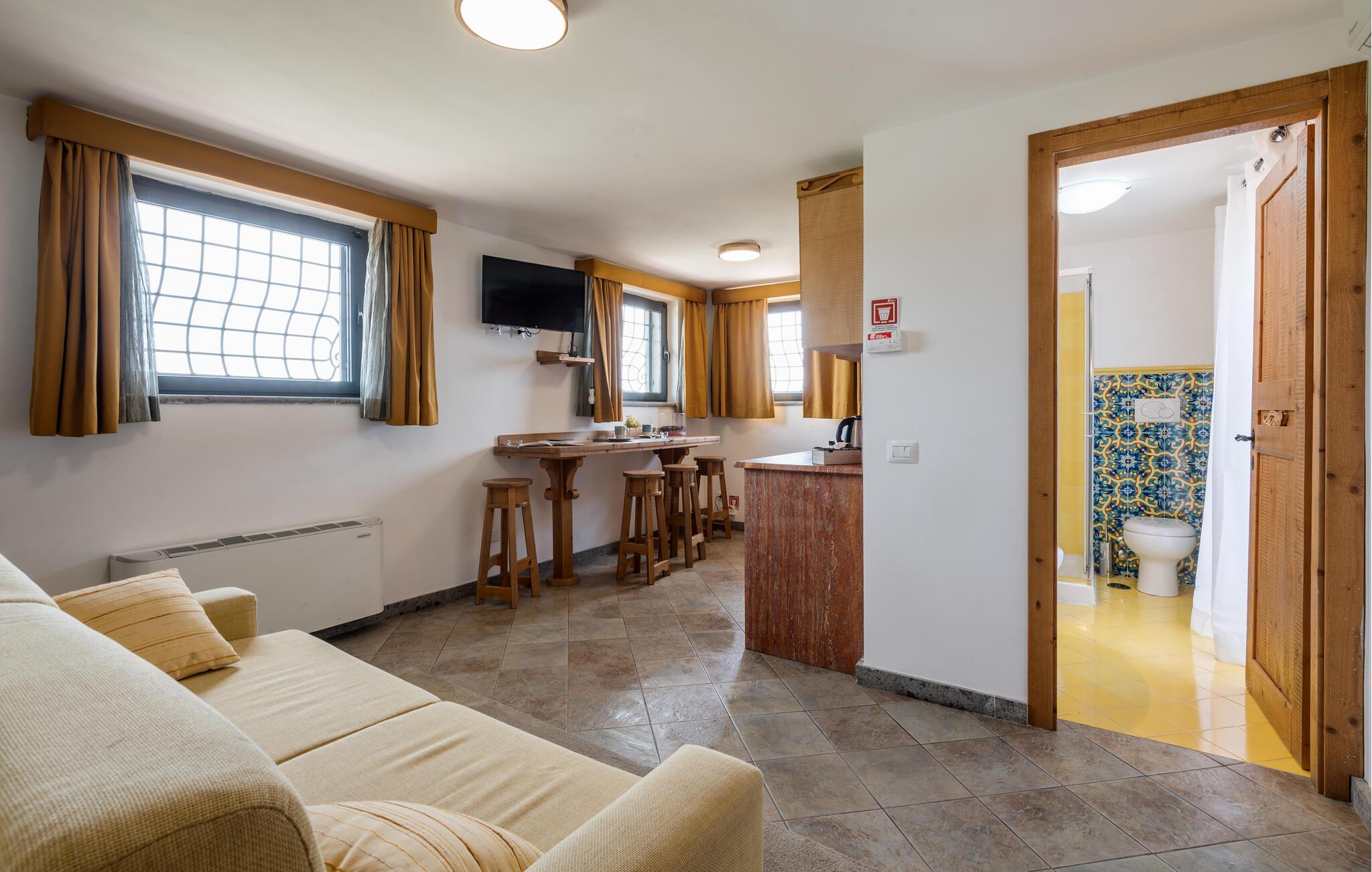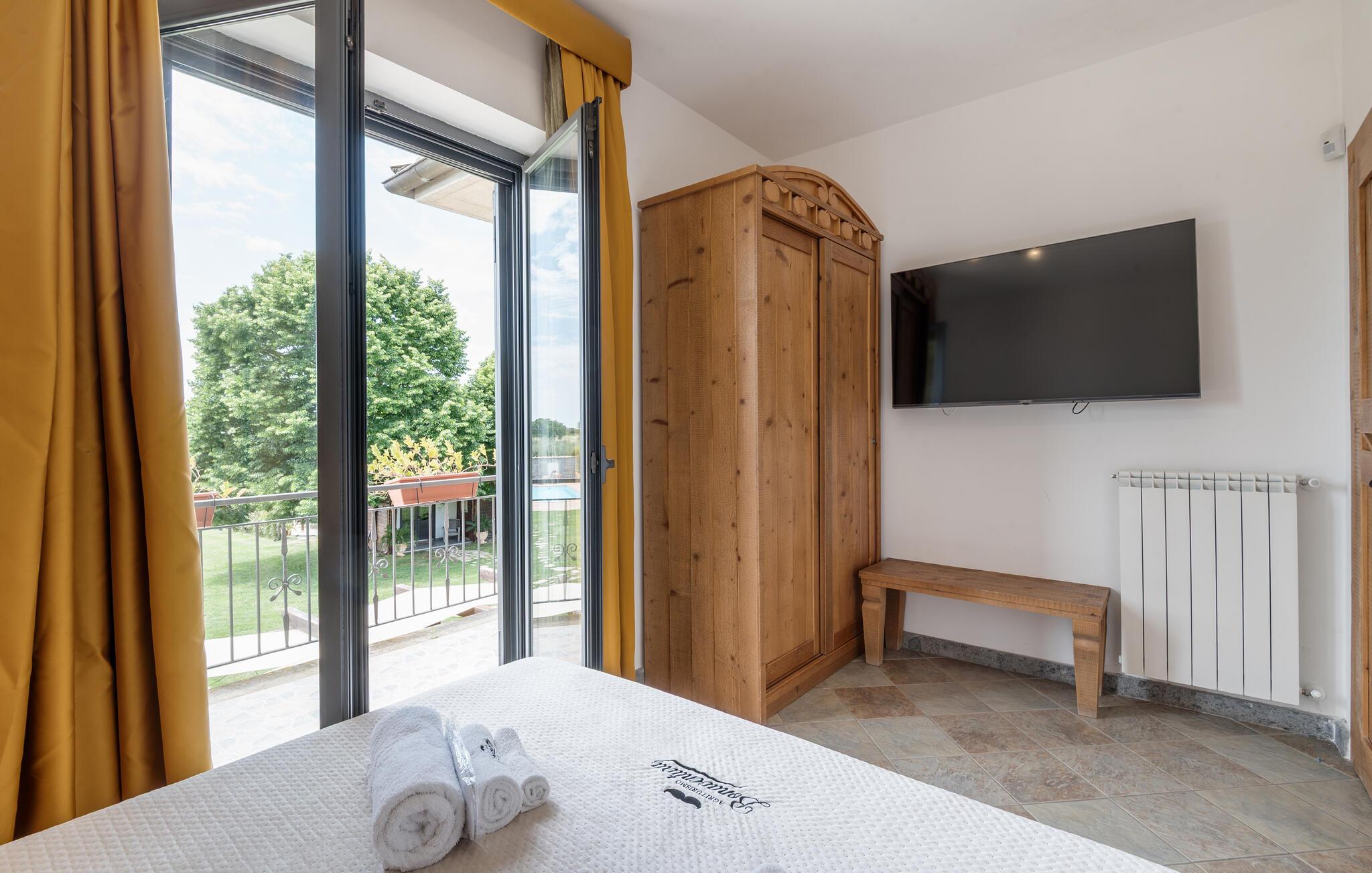 I bor i nærheden af ??'Lago di Bolsena'. I kan tage på vidunderlige vandreture langs søbredden, tage en bådtur eller dyrke vandsport. Ridning og cykling er også muligt. Tilbring vidunderlige timer i denne smukke region og nyd jeres fridage. Det tidligere vulkanområde har adskillige termiske kilder, som også er et besøg værd.