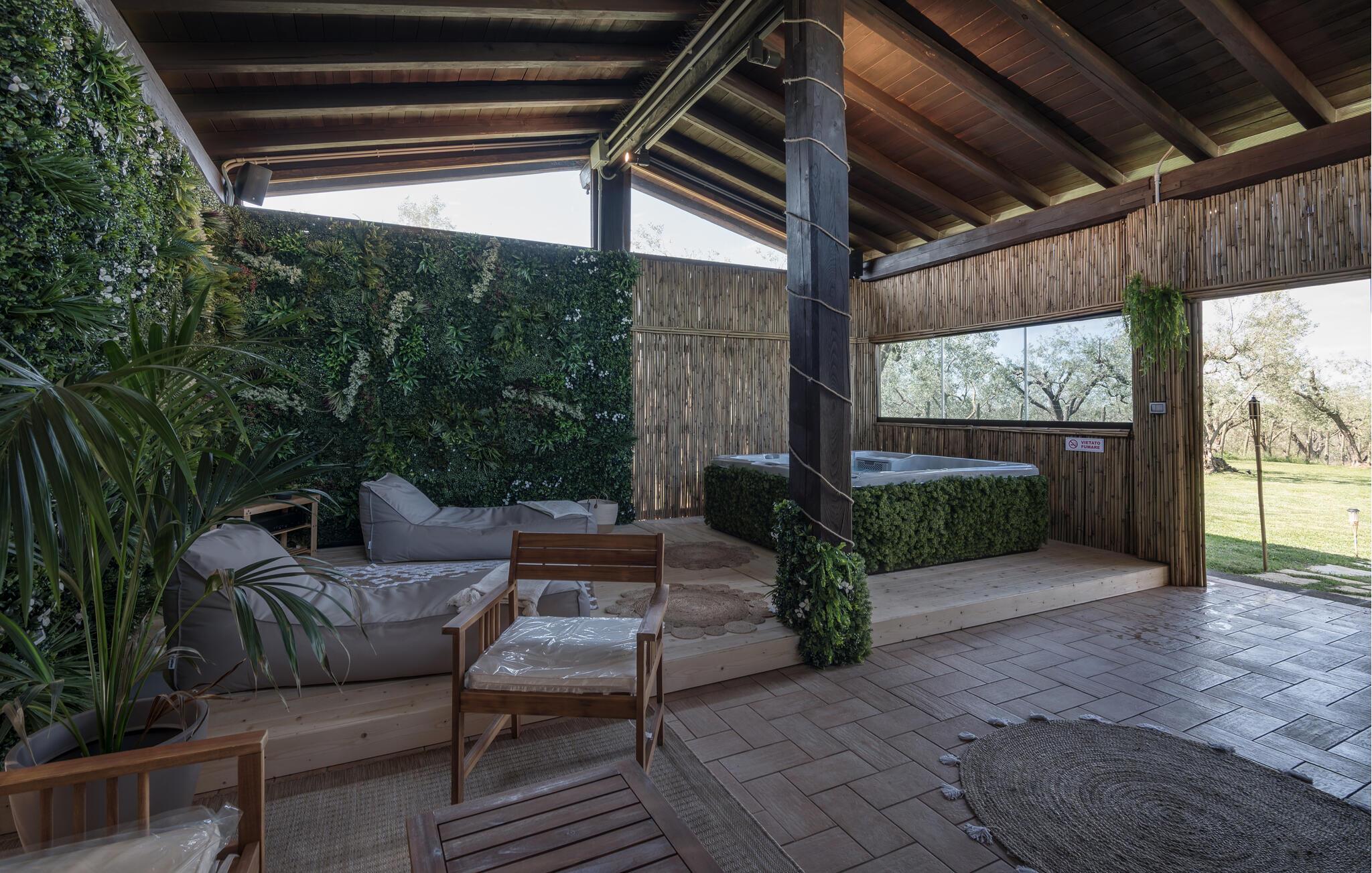 - Åben og overdækket terrasse