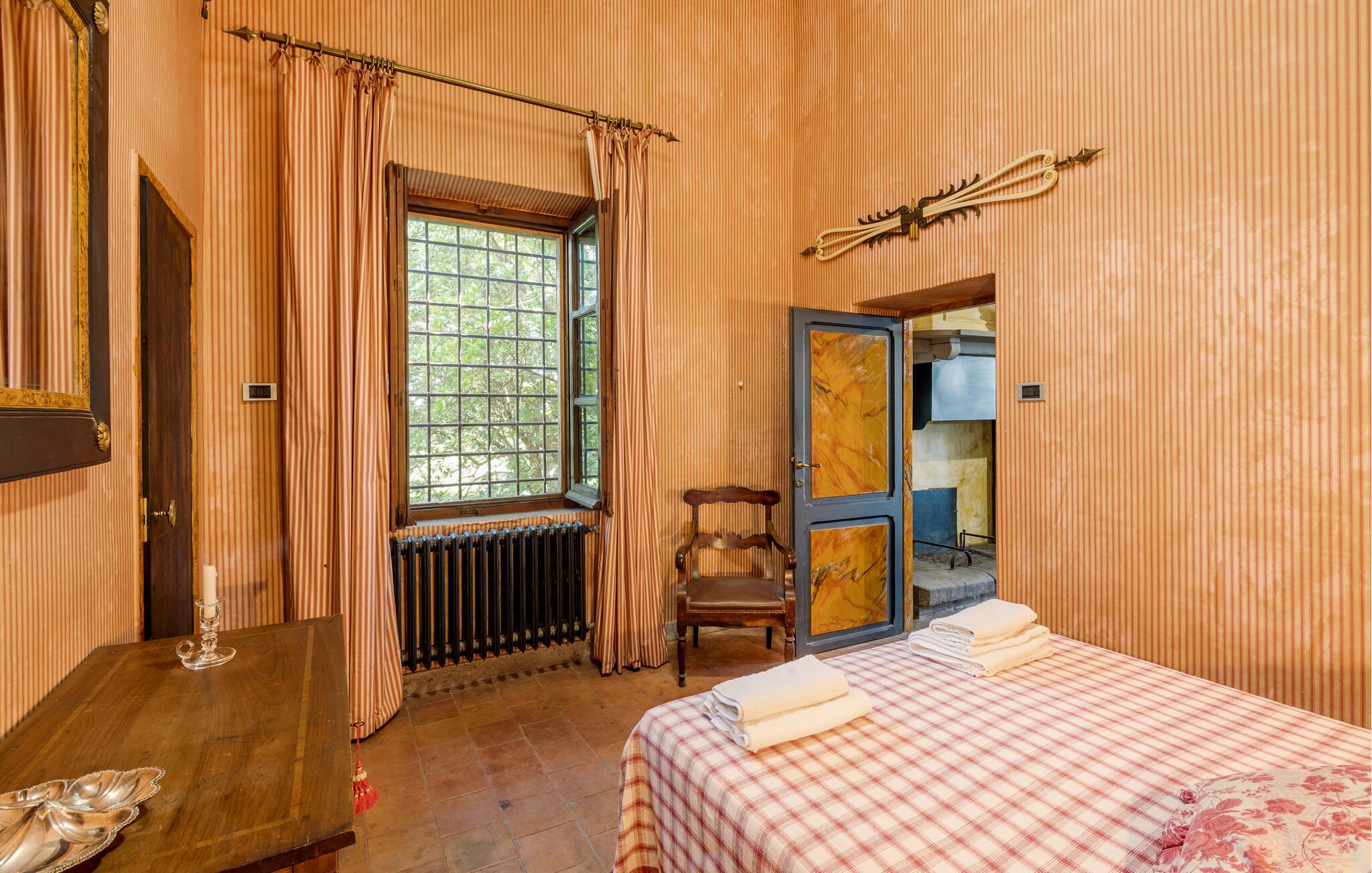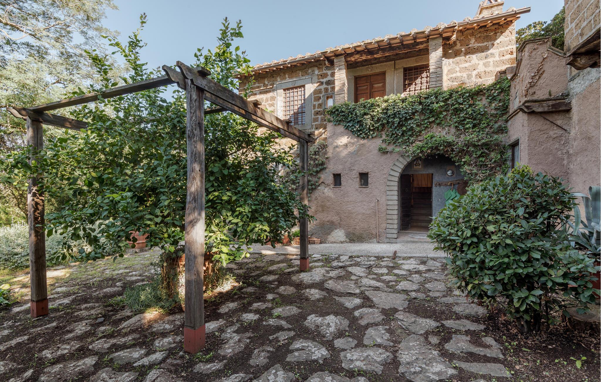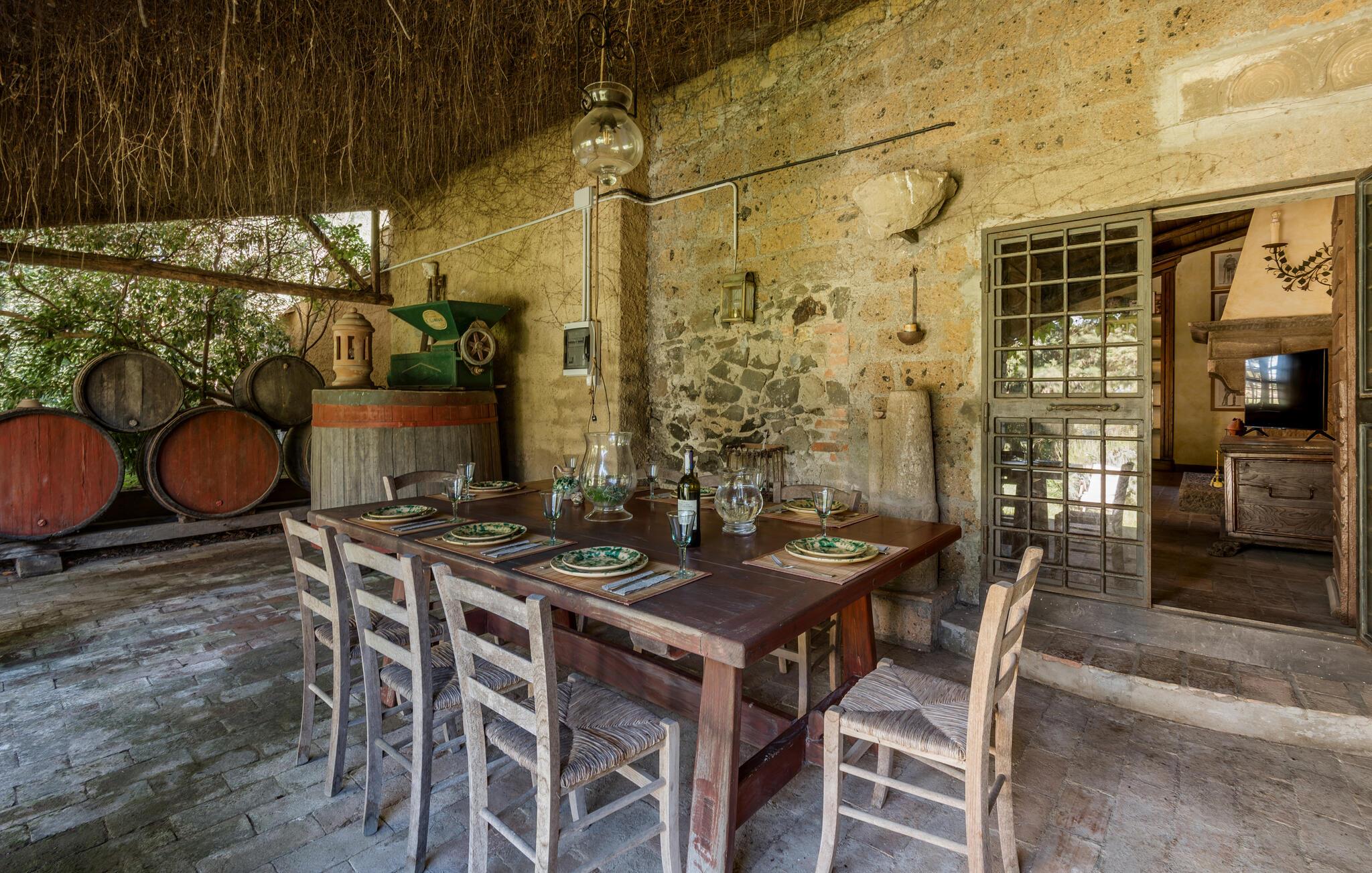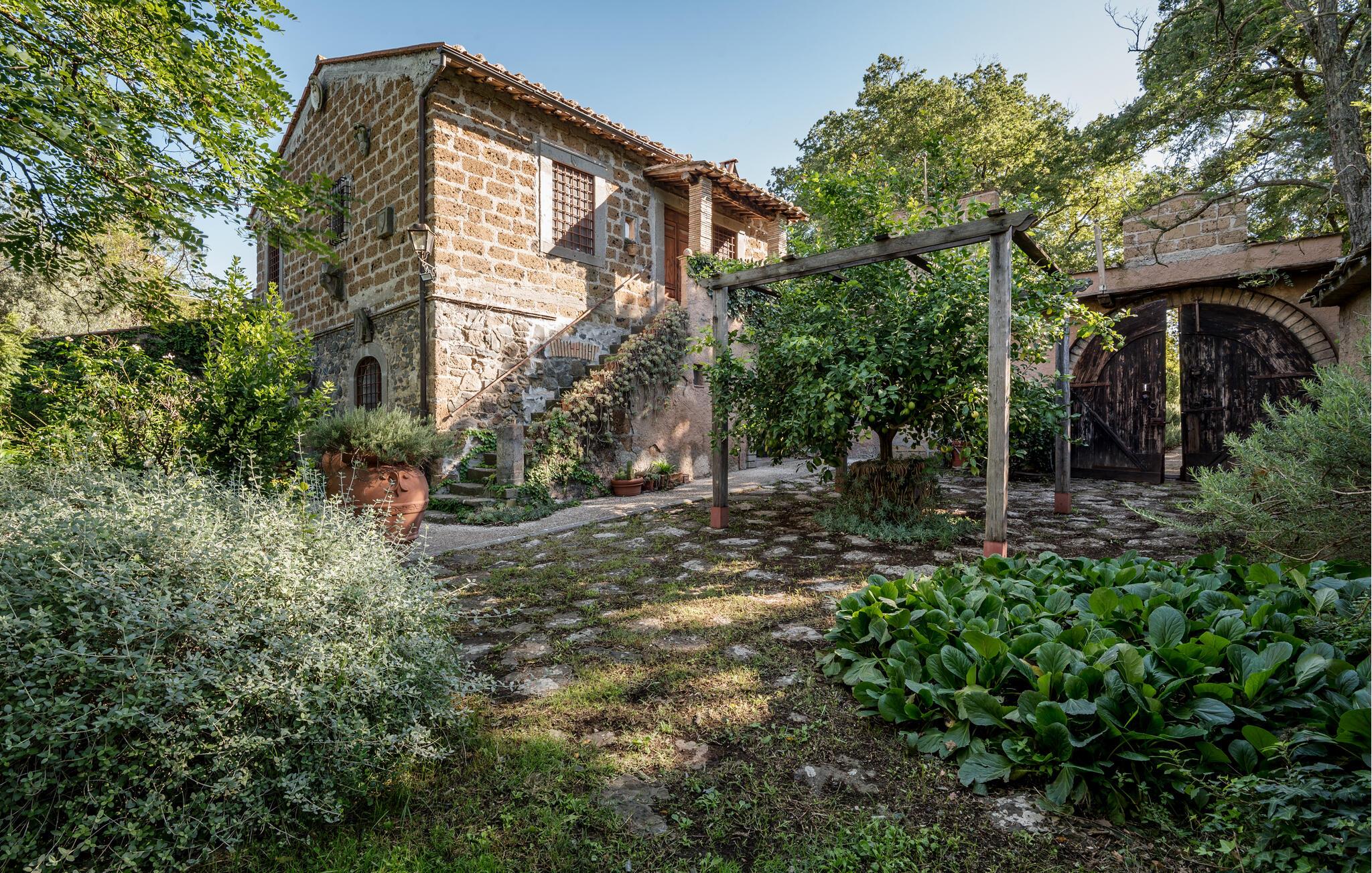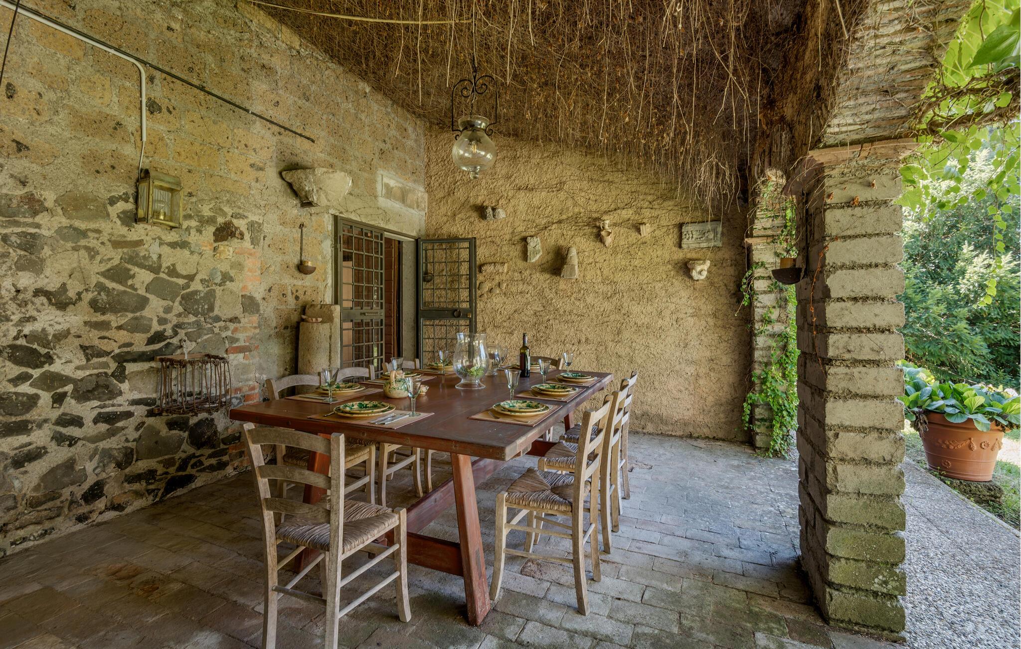 Udforsk den rummelige, grønne grund, hvor I kan slappe af på skyggefulde steder med et glas vin. Den kølige, rustikke terrasse tilbyder et charmerende spiseområde til stemningsfulde aftener i stearinlysets skær.