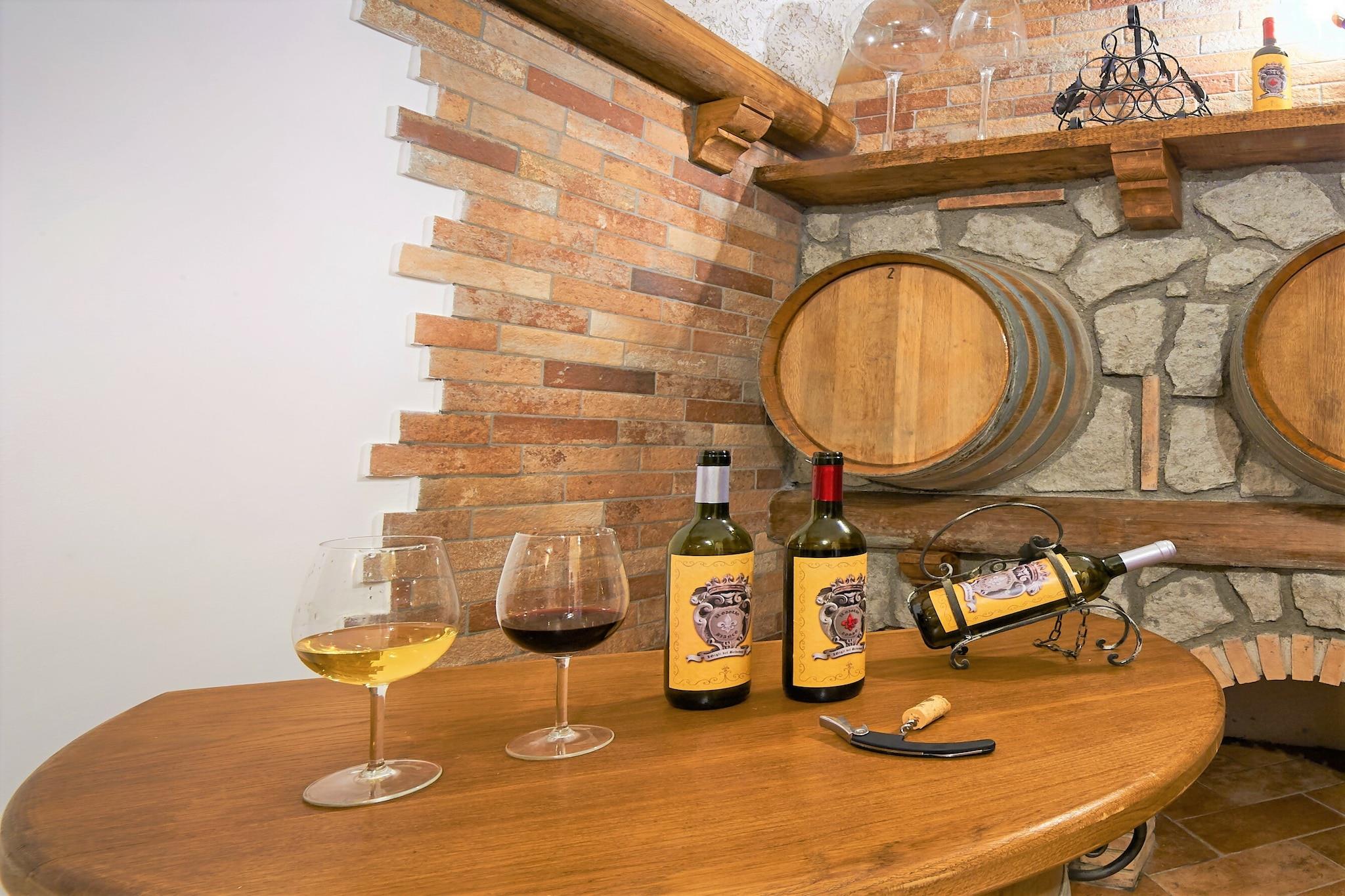 Villa Serenità tilbyder et luksuriøst og kæledyrsvenligt tilflugtssted for op til 16 gæster, omgivet af 10.000 m² private haver i de fredelige bakker i Montefiascone. Med en 7x4 m pool, udendørs boblebad og flere terrasser, er det designet til afslapning og forbindelse med naturen. Indvendigt spænder villaen over tre niveauer med elegante køkkener, hyggelige stuer med pejse, satellit-tv og syv soveværelser, tre med en-suite badeværelser. En privat terrasse, grill, bordtennis og bordfodbold gør det ideelt for familier og grupper. I nærheden kan du udforske Bolsena-søen (4 km), perfekt til svømning, paddleboarding og picnic ved søen. Oplev den dramatiske Civita di Bagnoregio (12 km), slentre Viterbos middelaldergader, eller slap af ved Terme dei Papi spa. For lokal spisning kan du nyde udsigten over søen og friske retter på Ristorante Isola Blu, nyde fisk og skaldyr på Da Paolo Al Miralago, eller prøve den elskede Mamma Pappa til regionale retter. Andre favoritter inkluderer Trattoria Da Morano, Il Muretto og Caro Commendatore, der hver tilbyder en smag af Lazios kulinariske charme. Uanset om du nipper til vin på terrassen eller udforsker gamle bakketopbyer, er Villa Serenità din indgang til det bedste af det centrale Italien.