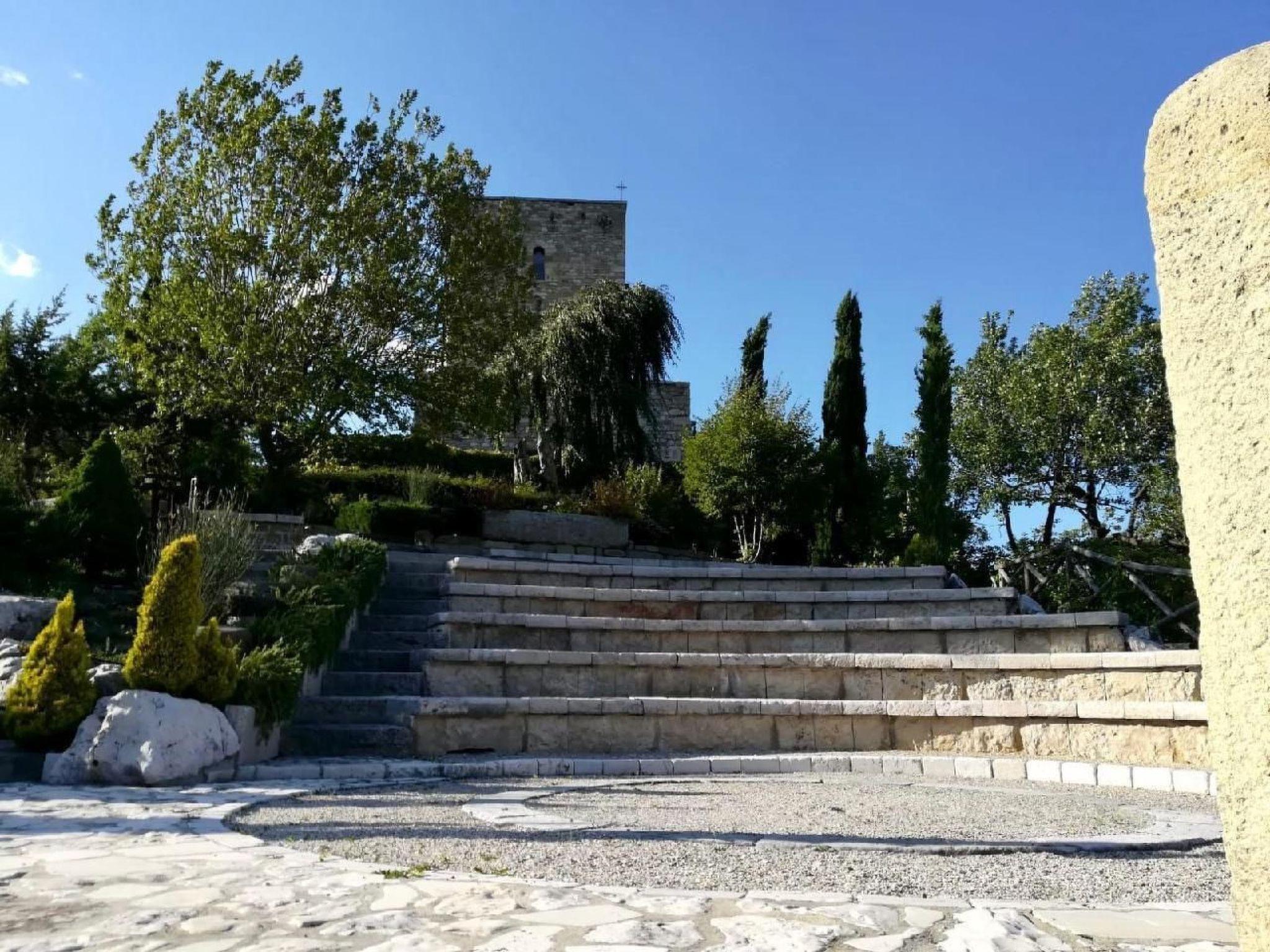 Today La Roccaccia is a jewel set in the centre of the Monti Sibillini National Park, designed for those in search of peace, relaxation and meditation. The park that branches off around the structure is enriched with artistic creations inspired by Land Art, and inside there is a private amphitheatre where you can enjoy unique sunsets.