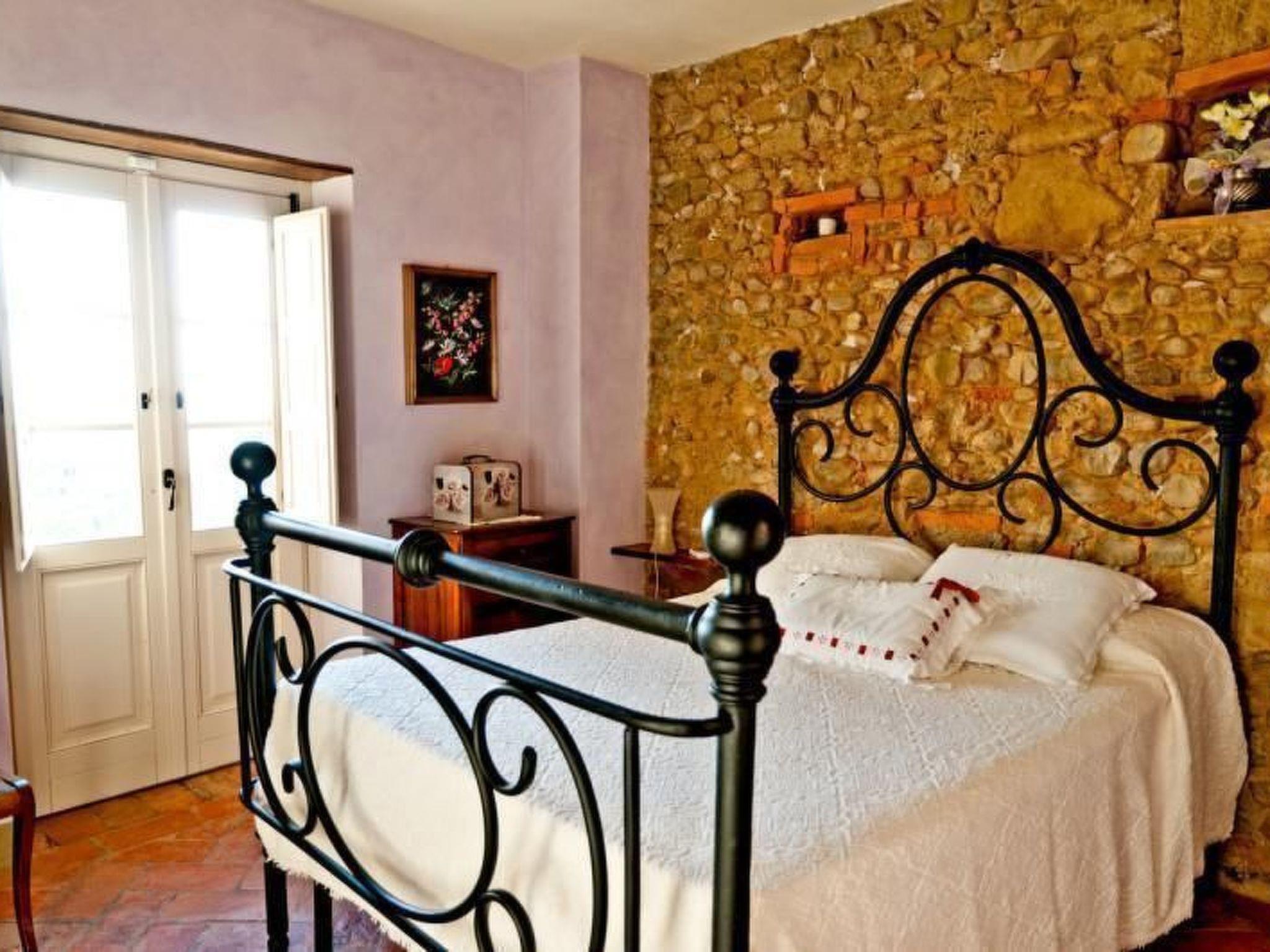 It can accommodate up to six people and consists of a bright, colourful and fully equipped kitchen with modern conveniences, two double bedrooms with original antique wrought-iron beds and two bathrooms with shower cubicles. On the upper floor there is a delightful loft with a fireplace, used as a living room with two sofas (one of these is a sofa-bed for two people) and furnished again in typical Tuscan style with an antique and original 19th century chest of drawers, satellite TV, DVD, stereo with CD player, free internet connection, books and magazines, and a basket of wood for the fireplace.