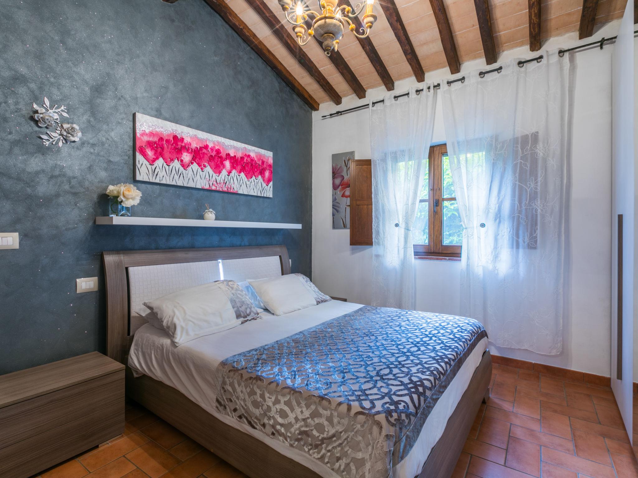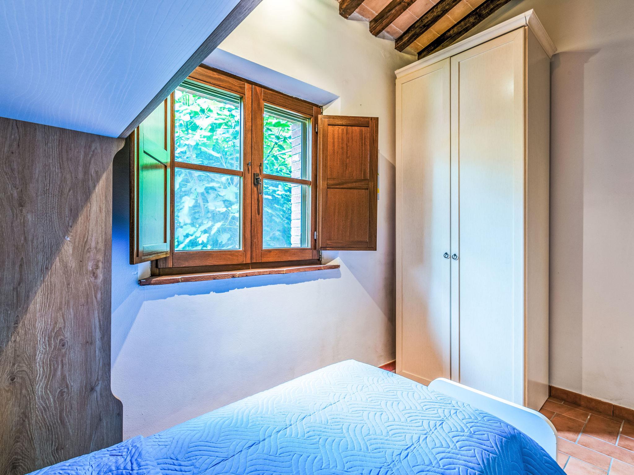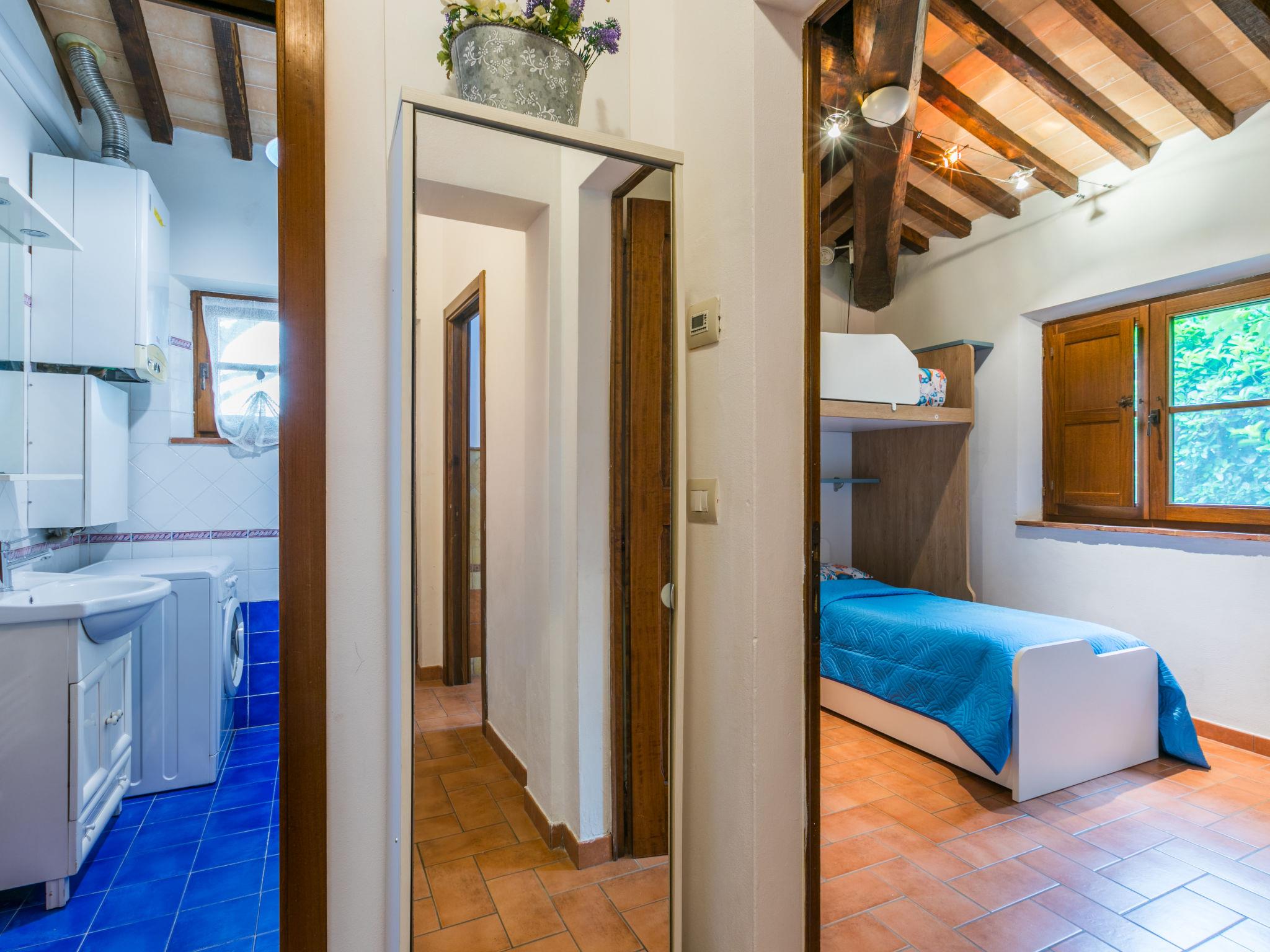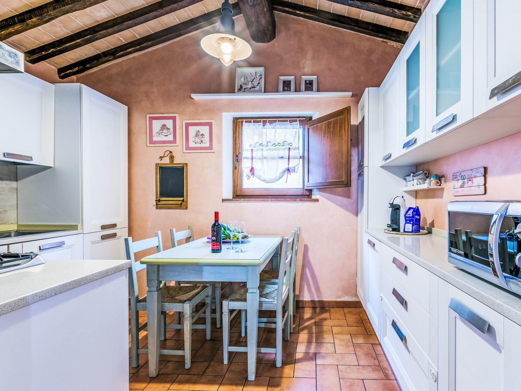 "Caggiolo", 3-room terraced house 70 m2, on the ground floor. Object suitable for 2 adults + 2 children. Bright, comfortable and tasteful furnishings: open living room with TV (flat screen), air conditioning. 1 double bedroom. Exit to the garden. 1 children's room with 2 beds (80 cm). Small walk-through room 2 m2 with air conditioning. Kitchen (oven, dishwasher, Gas stove, 4 gas rings, toaster, kettle, microwave, electric coffee machine) with dining table. 2 showers/bidet/WC. Heating, air-conditioning. Natural stone floors. Terrace roofed, patio, garden. Terrace furniture, barbecue, covered balcony. Beautiful panoramic view of the countryside. Facilities: washing machine, iron, mosquito net, children's high chair, baby cot for up to 2 year olds, hair dryer. Internet (WiFi, free). Parking at the house. Please note: suitable for families. Non-smokers only. Maximum 1 pet/ dog allowed. Private entrance, smoke alarm, fire extinguisher. IT052017C2AV8OFJ9J
