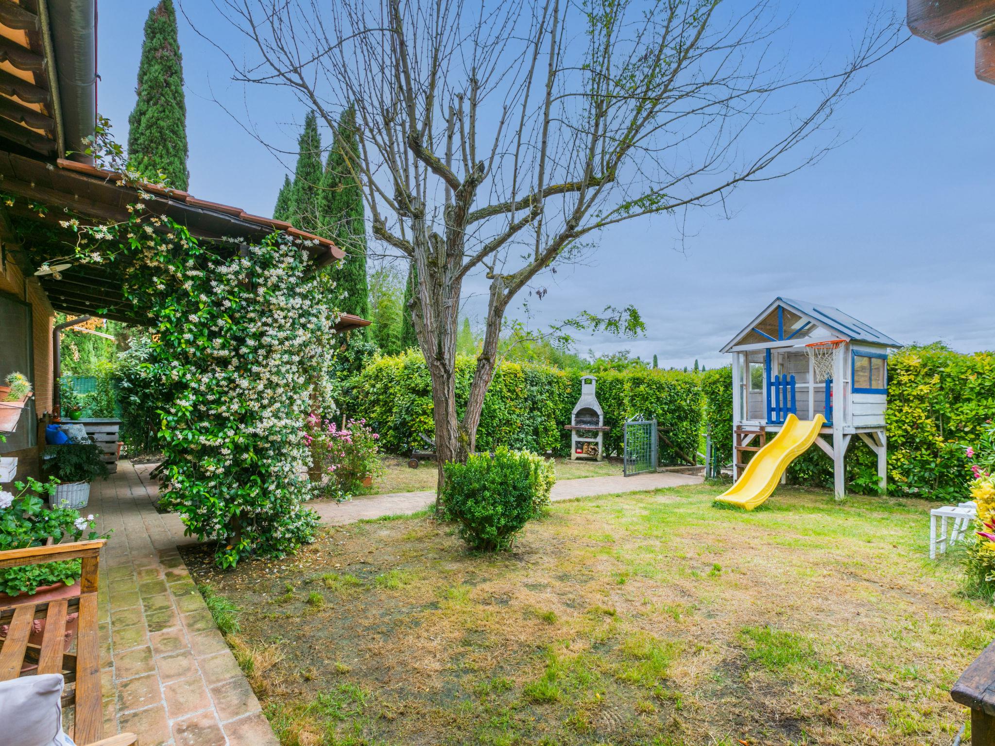 Monteroni d'Arbia: Cosy, comfortable terraced house "Caggiolo", surrounded by meadows and vineyards. 6 houses in the residence. 5.5 km from the centre of Monteroni d'Arbia, 9 km from the centre of Buonconvento, in a sunny position, in the countryside. For shared use: swimming pool fenced (6 x 10 m, seasonal availability: 01.Jun. - 30.Sep. pool opening hours: 09:00-20:00). Outdoor shower, terrace, garden furniture, pool maintenance by the owner/gardener, parking (for 2 cars) at the house. Shop 5 km, grocery 5 km, supermarket 5 km, restaurant 5 km, bakery 5 km, bus stop "SR 2 Cassia" 1000 km, railway station "Monteroni d'Arbia" 5 km, sandy beach "Marina di Grosseto" 80 km, thermal baths "Rapolano Terme" 39 km. Golf course (18 hole) 28 km, tennis 5 km, walking paths from the house 100 m. Nearby attractions: Montalcino 20 km, Siena 20 km, Pienza 36 km. Please note: baby equipment (included). Object suitable for 2 adults + 2 children.