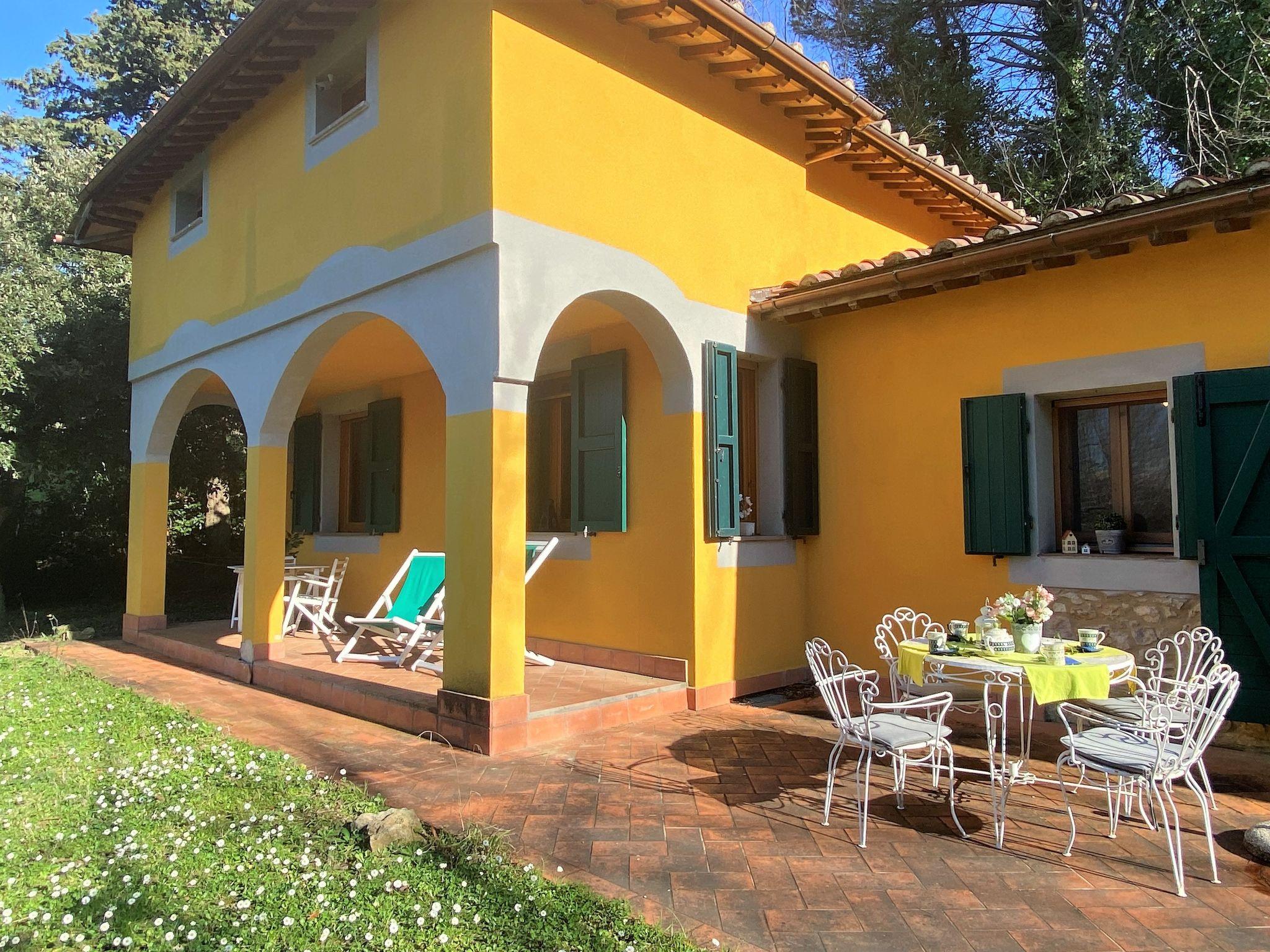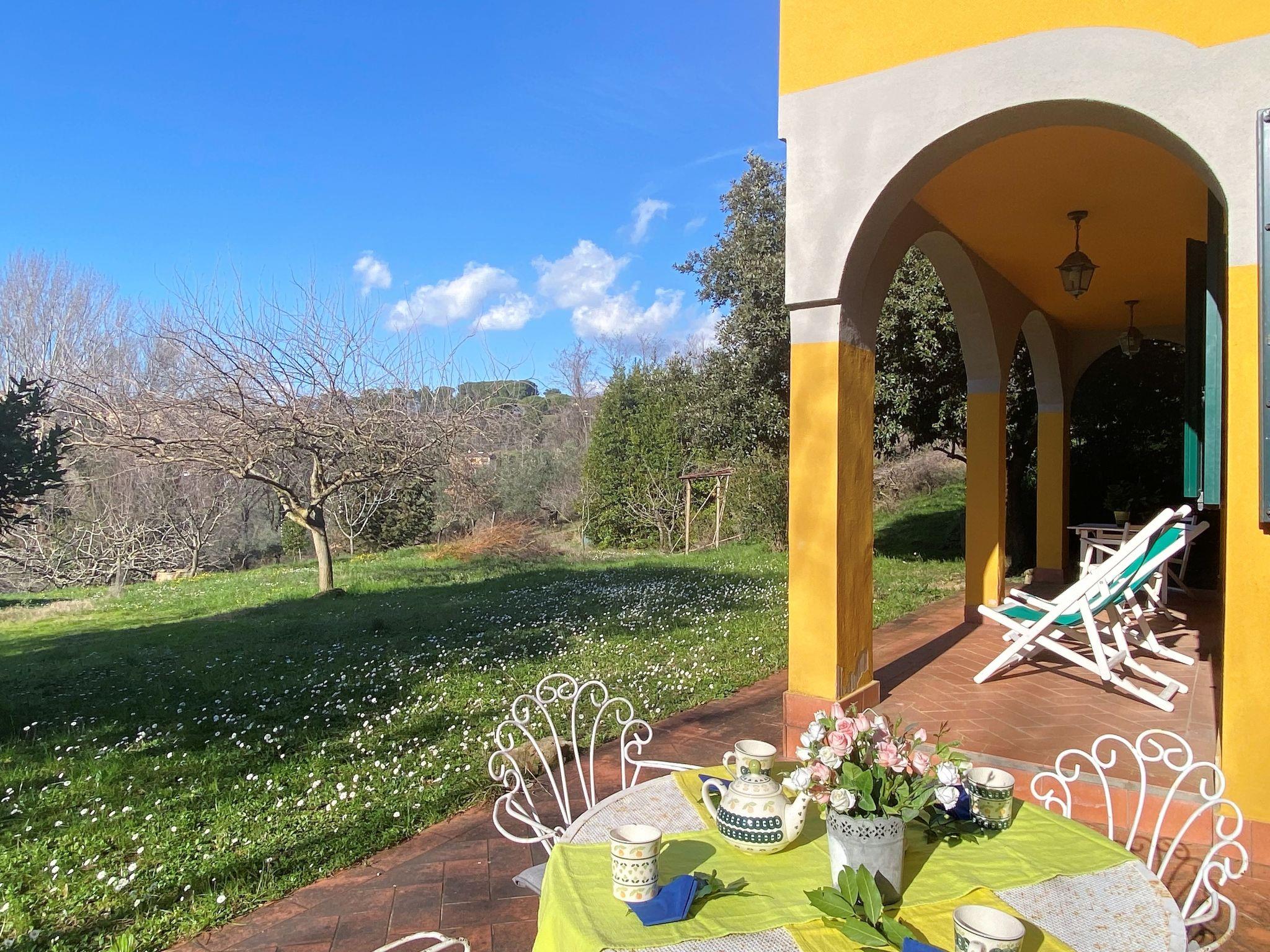 House "Il Frutteto", surrounded by trees and meadows. 1 km from the centre of Montescudaio, 8.5 km from the centre of Cecina, 10 km from the sea. Private: natural state property 1 ha, trees, meadow. Motor access (20 m via unmade road). Parking at the house. Shop 750 m, supermarket 13 km, shopping centre 7 km, restaurant 500 m, bakery 750 m, bus stop "Montescudaio" 500 m, sandy beach "Marina di Cecina" 10 km, rocky beach "Baia del Quercetano" 27 km, thermal baths "Calidario" 40 km. Nearby attractions: Bolgheri 16 km, Pisa 61 km, Firenze 97 km. Please note: 1st floor is closed and not occupied.