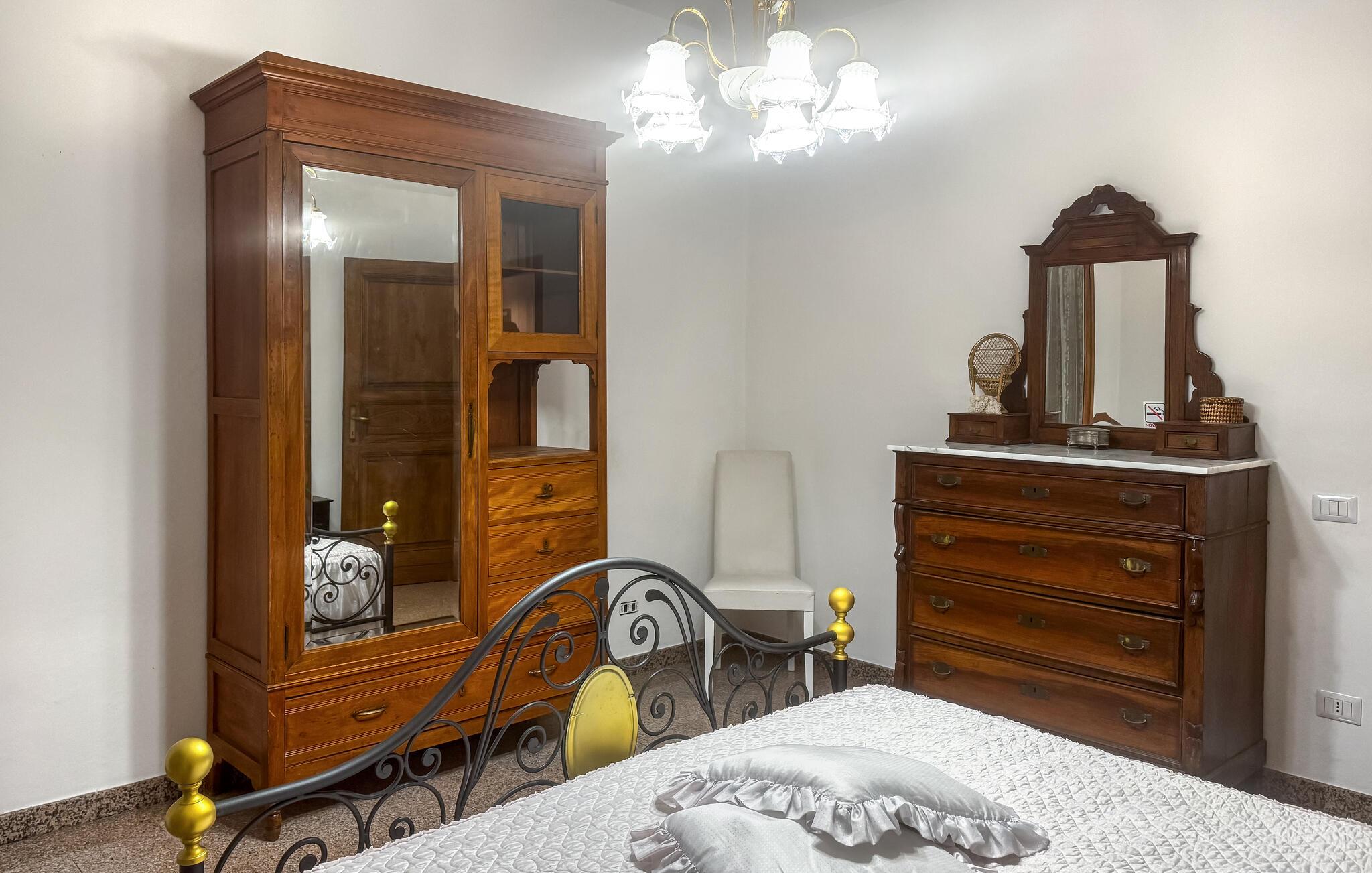 Glæd jer til en afslappende ferie i denne velholdte og traditionelt indrettede ferielejlighed. Tilbered jeres yndlingsmåltider i det lyse køkken og tag plads ved det indbydende spisebord. Efter en begivenhedsrig dag kan I føle jer godt tilpas i sofaen og planlægge jeres aktiviteter med et glas vin.