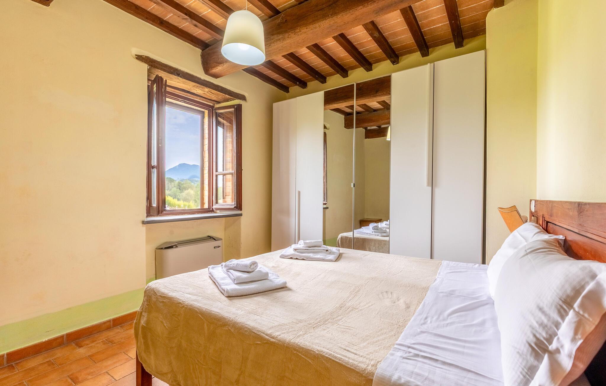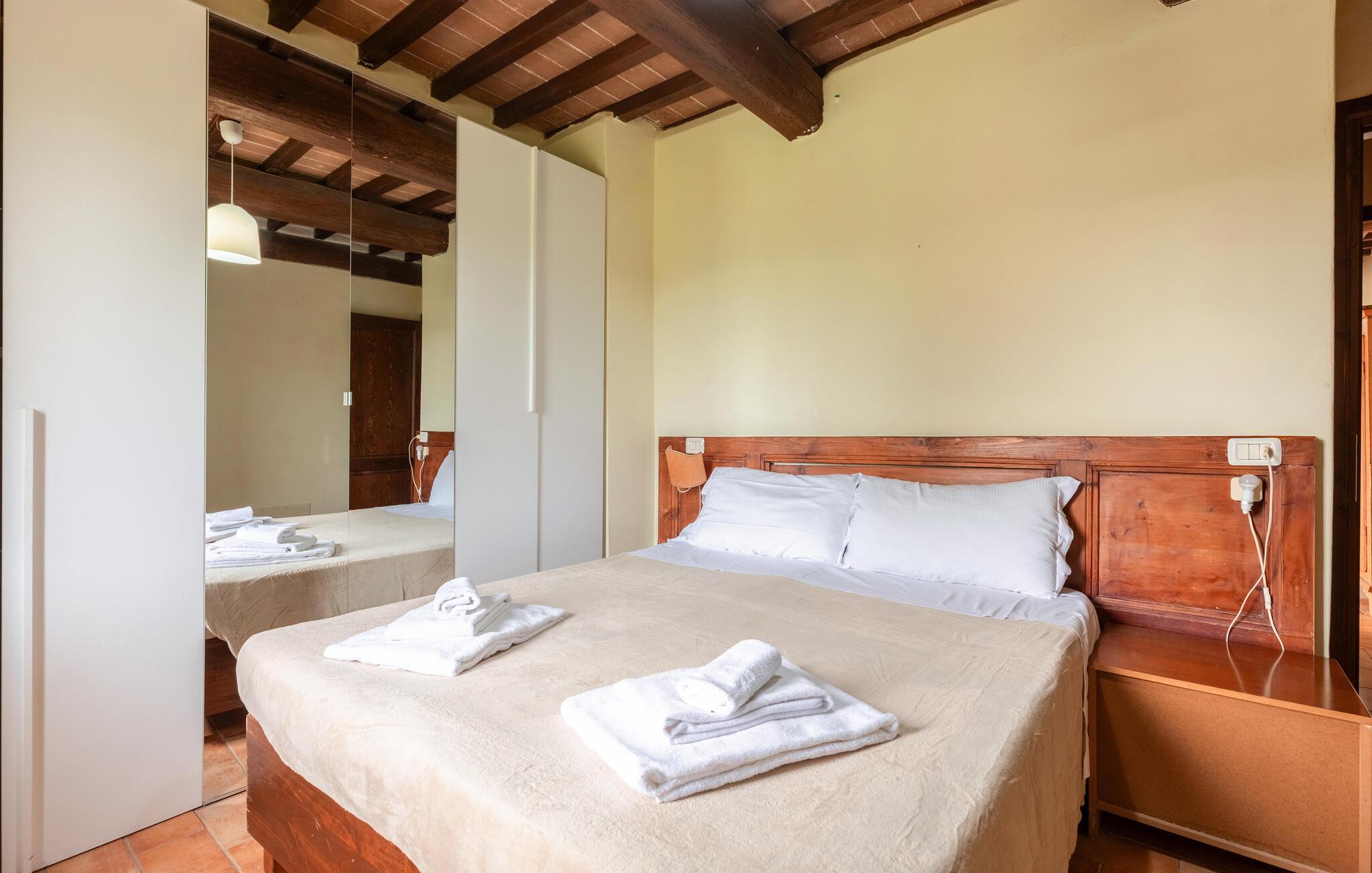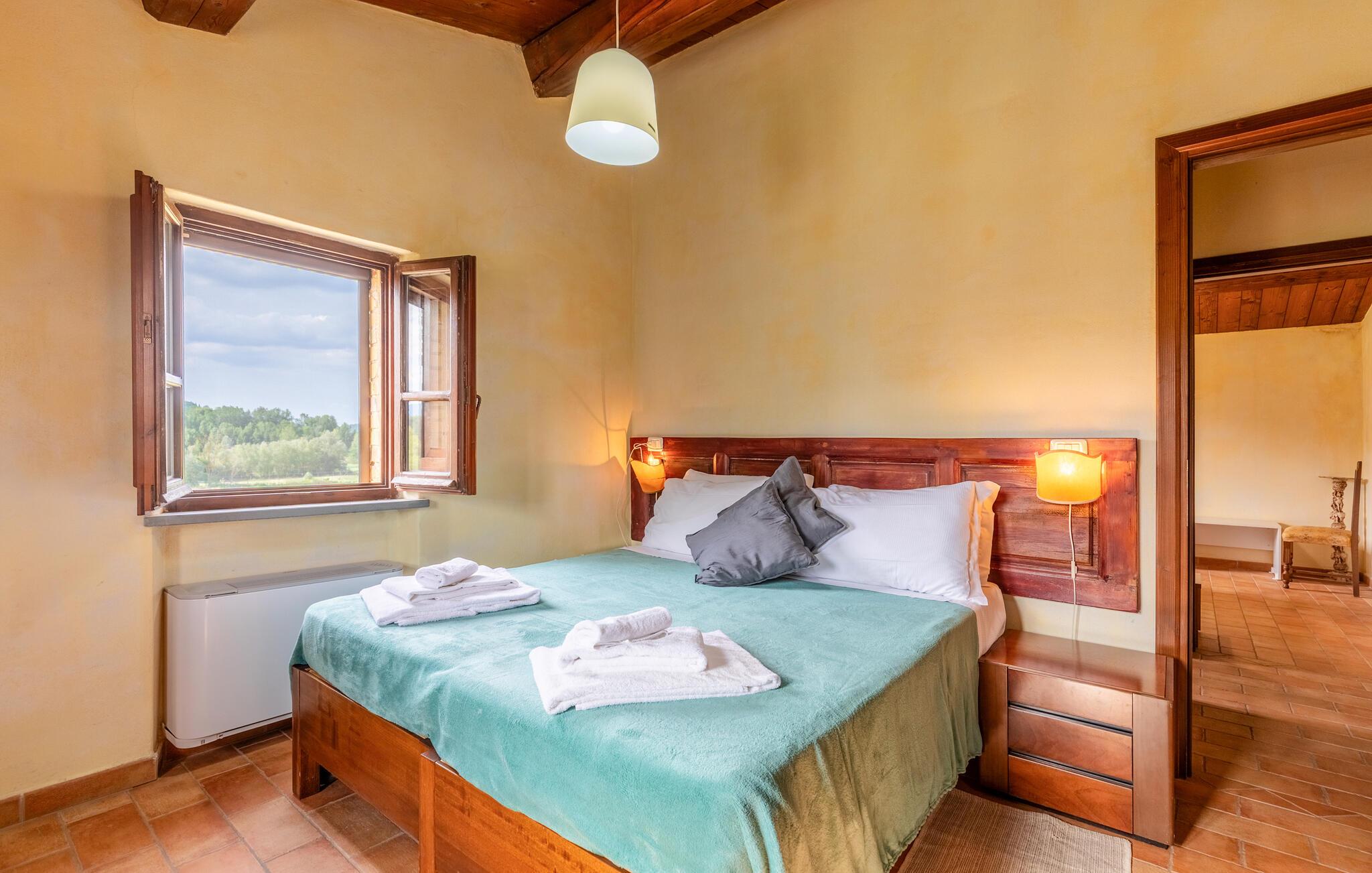 Nyd jeres ferie i et attraktivt feriehus med pool og en fantastisk panoramaudsigt. Velkommen til dette rummelige landsted med idylliske omgivelser, hvor I vil føle jer hjemme fra første dag. Glæd jer til autentisk møblerede værelser med smukke trælofter, delvist synlige mursten og masser af plads til at slappe af. Nyd måltider sammen ved det lange spisebord og snak om dagens eventyr i lang tid bagefter. Slap af og nyd roen på den store grund. Svøm i poolen, nyd kolde drikke udendørs om aftenen, og jeres børn vil finde legeredskaber. Der ligger en sø i nærheden af huset. Vandr eller cykl gennem de bølgende bakker, olivenlunde og vinmarker, der omgiver Montone. De omkringliggende naturstier byder på spektakulære udsigter og rolige tilflugtssteder. Slentr gennem Montones smalle gader og fordyb jer i atmosfæren fra forgangne århundreder.
