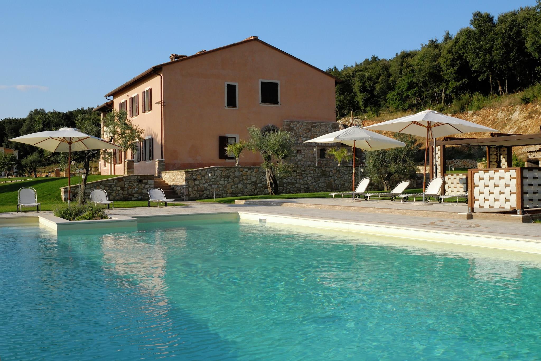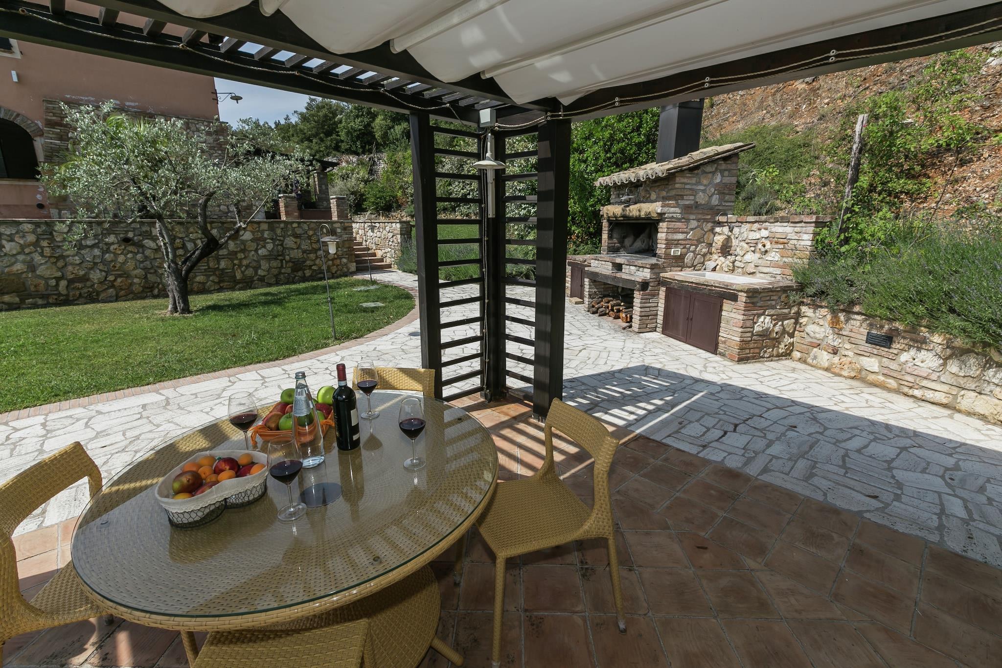 På 1. etage: (Stue(Fjernsyn, spisebord, pejs, sofahjørne), åbent køkken(kogeplade(Komfur med fire kogeplader), komfur, emhætte, ovn, mikrobølgeovn, opvaskemaskine , køle-fryseskab), soveværelse(dobbeltseng, Fjernsyn, barneseng), soveværelse(2x enkeltseng, dobbeltseng, Fjernsyn), badeværelse(bruser, håndvask, toilet), balkon, varme) spisebord, vaskemaskine(deles med andre gæster), have(deles med andre gæster, > 1000 m2), havemøbler, solstole, grill(deles med andre gæster), Parasol, swimmingpool(deles med andre gæster, 14 x 7 m., opened from Jun upto and including Sep), baldakin