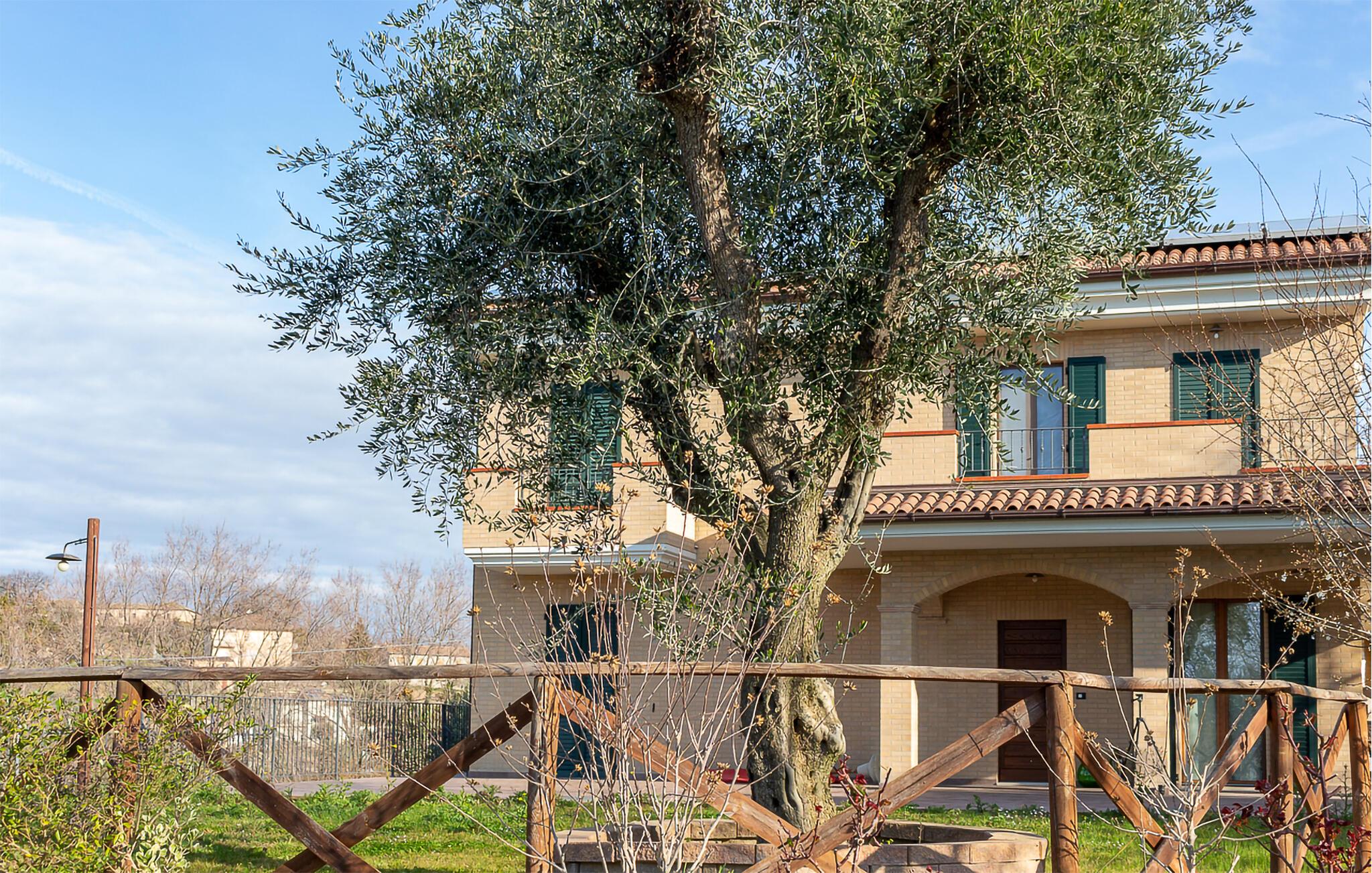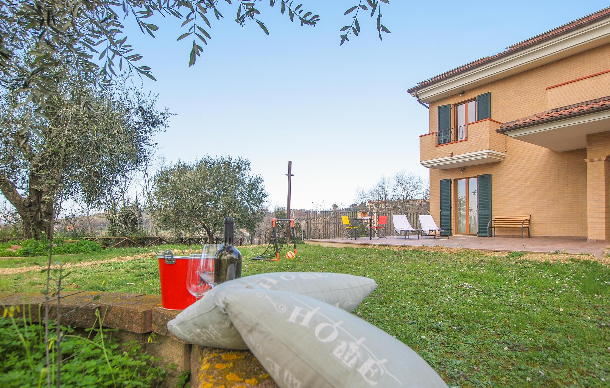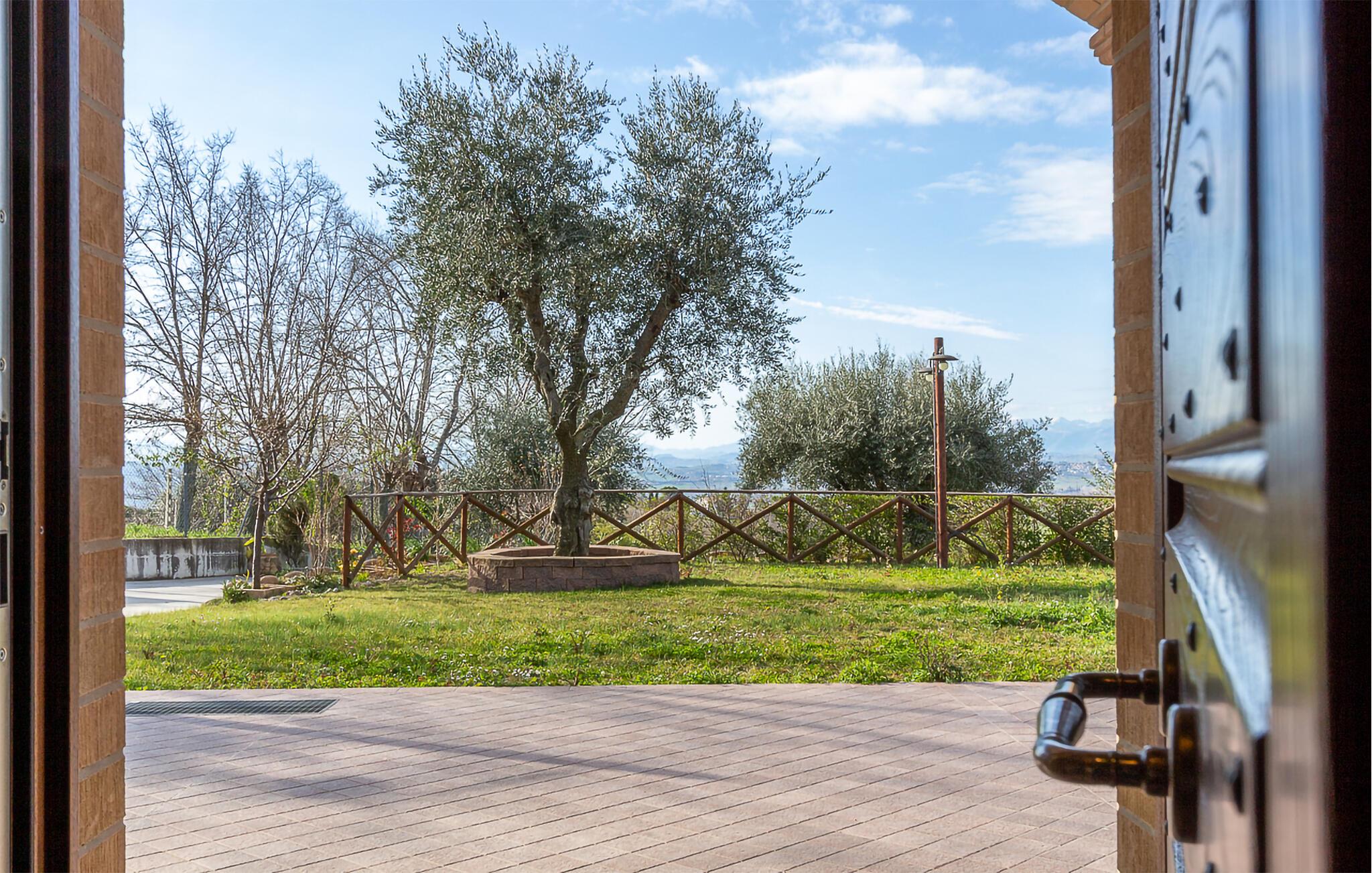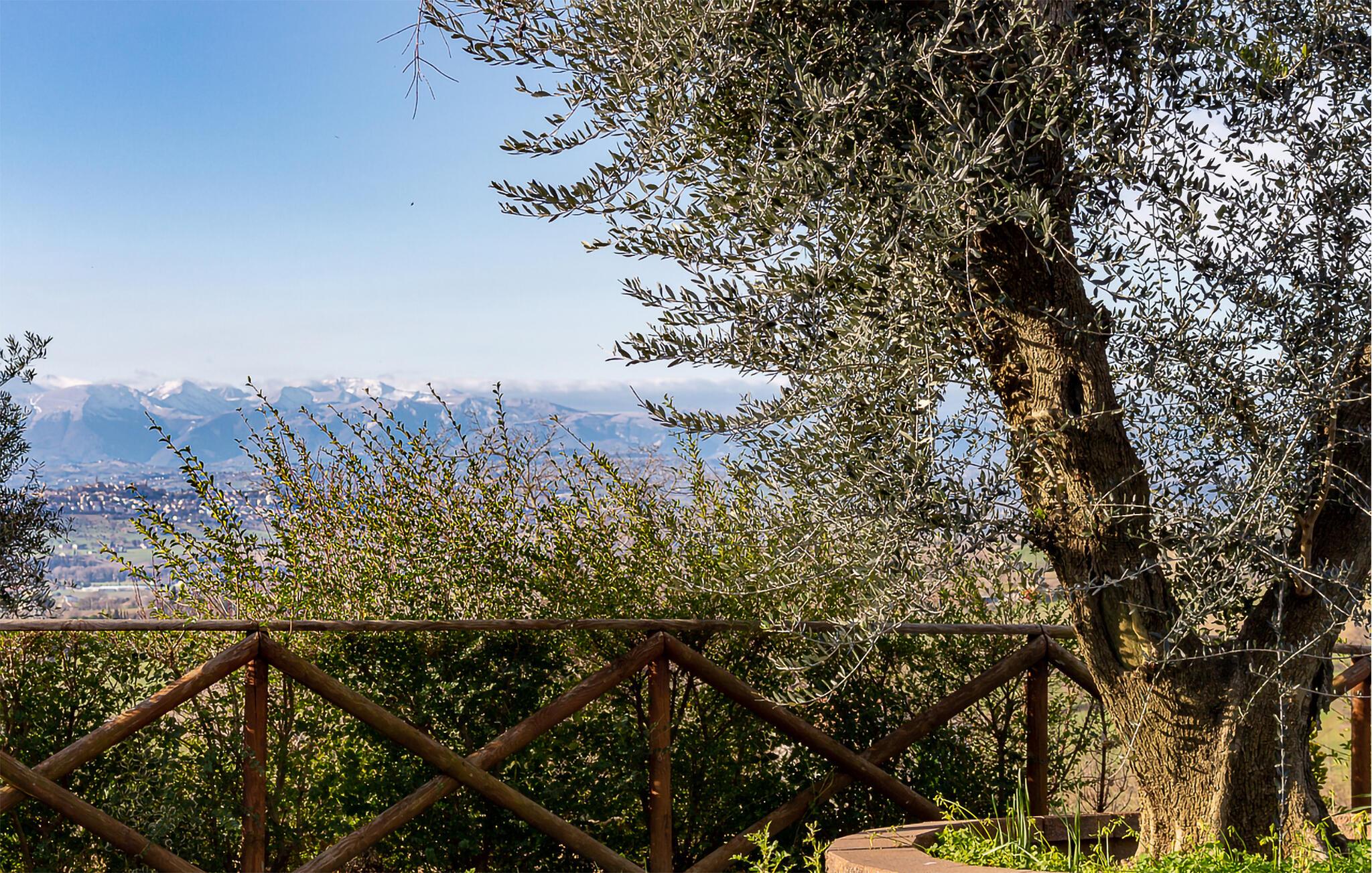 Fra verandaen og altanerne kan I nyde en betagende panoramaudsigt over regionens bløde bakker. Gamle oliventræer og velplejede haveområder indbyder til afslapning. Start jeres dag med en kop kaffe i det grønne, eller udforsk de idylliske omgivelser til fods. Husets hævede beliggenhed sikrer ren afslapning, mens nærheden til charmerende landsbyer og byer giver variation.