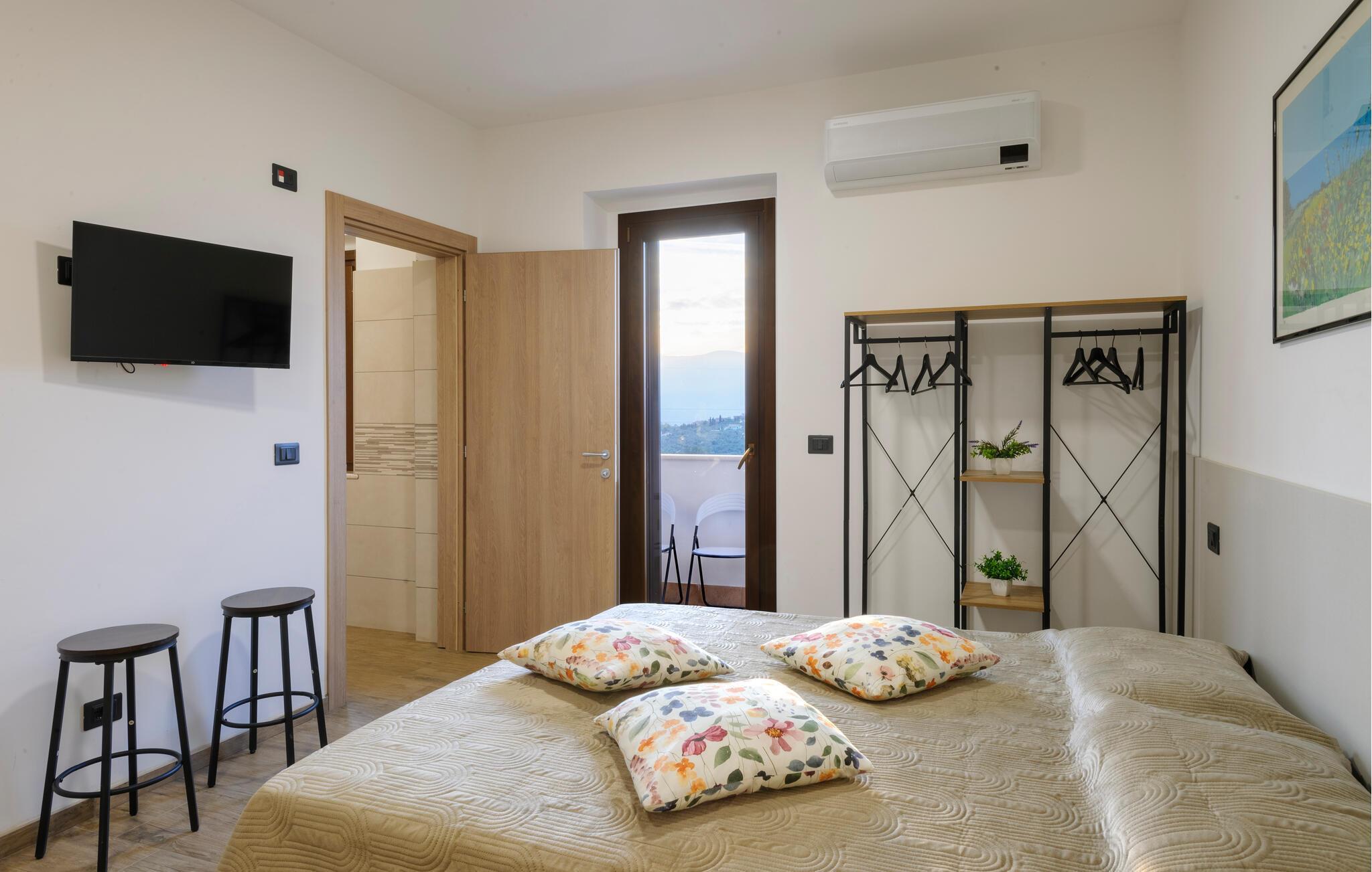 Velkommen til denne dejlige lejlighed, der ligger i en bygning med flere ferieboliger, smukt omgivet af oliventræerne, og med en skøn udsigt over landskabet. Hvis I gerne vil rejse som en større flok, kan I booke flere lejligheder i huset og nyde et ophold med det helt rette mix af sociale stunder og privatlivets fred. Lejligheden er flot indrettet med lyse farveskalaer, moderne komfort og et veludstyret køkken, hvor I kan tilberede en lækker morgenmad, som kan nydes på terrassen med en god kop kaffe og udsigt over landskabet i Pescaras bagland.