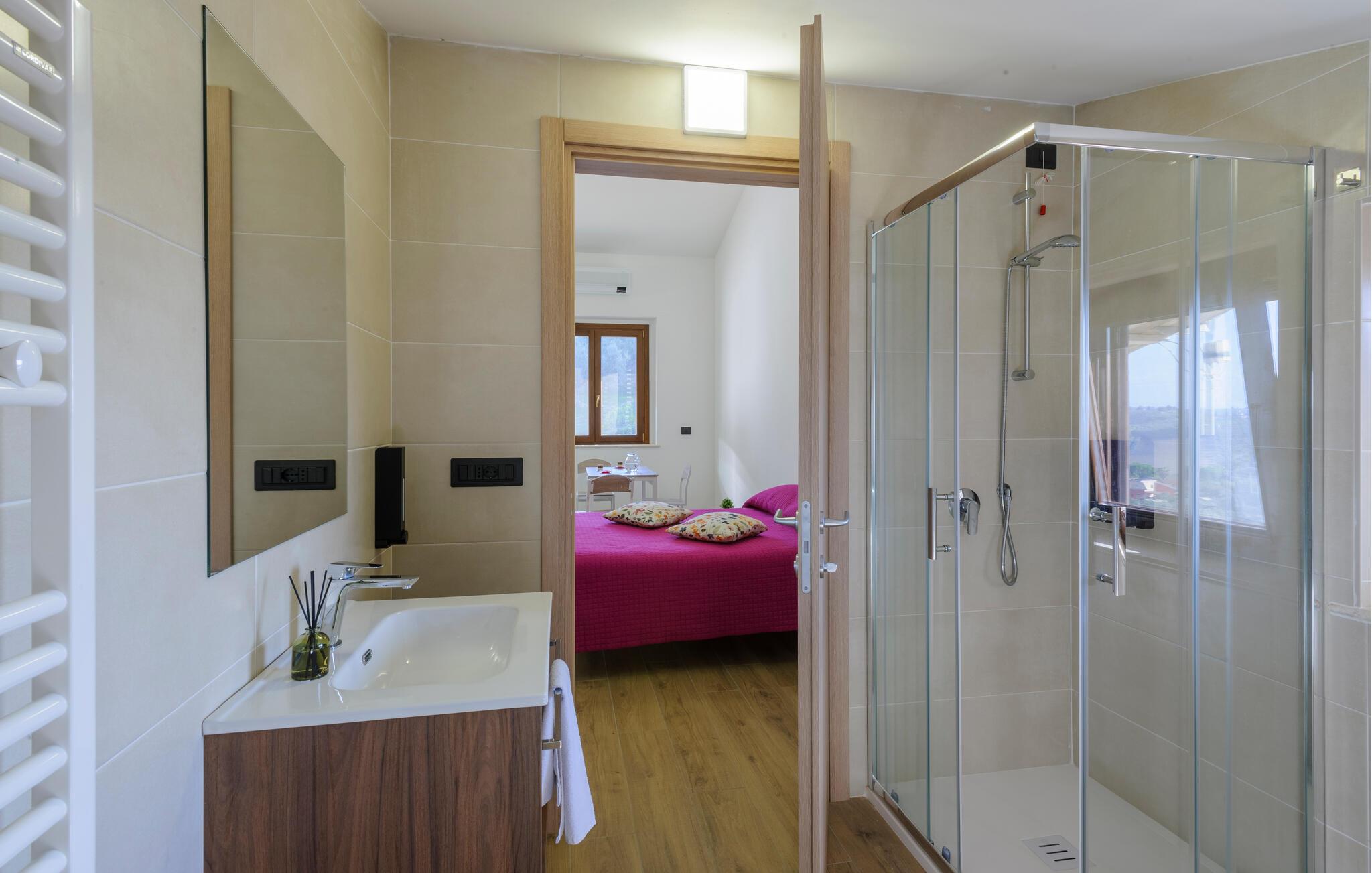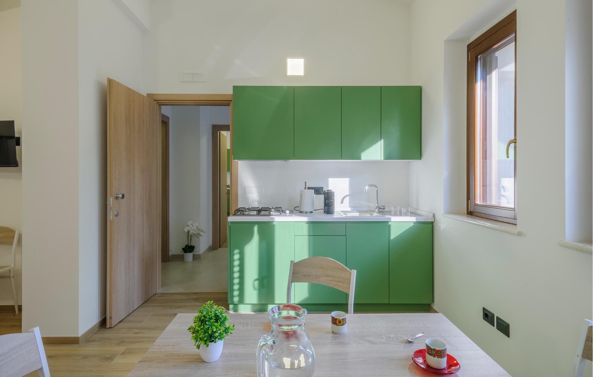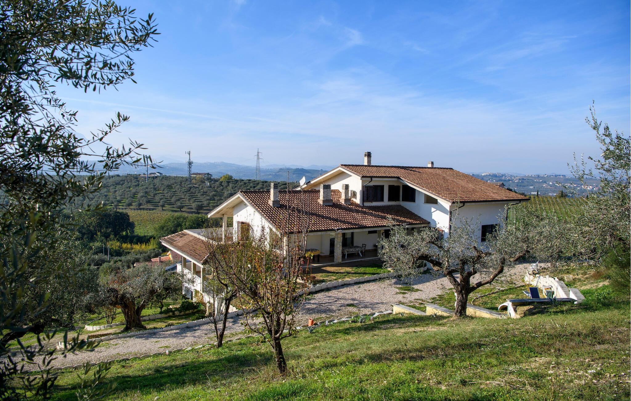 Velkommen til denne dejlige lejlighed, der ligger i en bygning med flere ferieboliger, smukt omgivet af oliventræerne, og med en skøn udsigt over landskabet. Hvis I gerne vil rejse som en større flok, kan I booke flere lejligheder i huset og nyde et ophold med det helt rette mix af sociale stunder og privatlivets fred. Lejligheden er flot indrettet med lyse farveskalaer, moderne komfort og et veludstyret køkken, hvor I kan tilberede en lækker morgenmad, som kan nydes på terrassen med en god kop kaffe og udsigt over landskabet i Pescaras bagland.